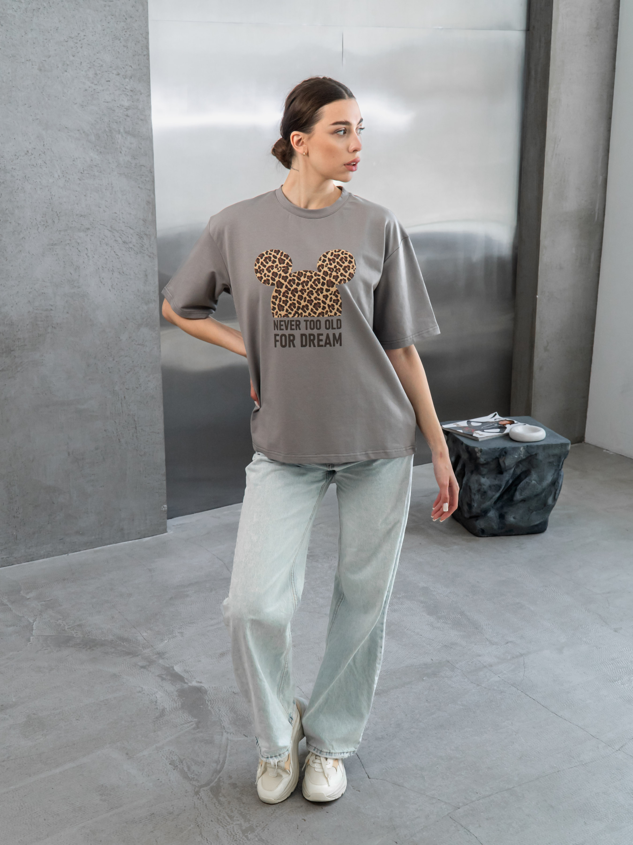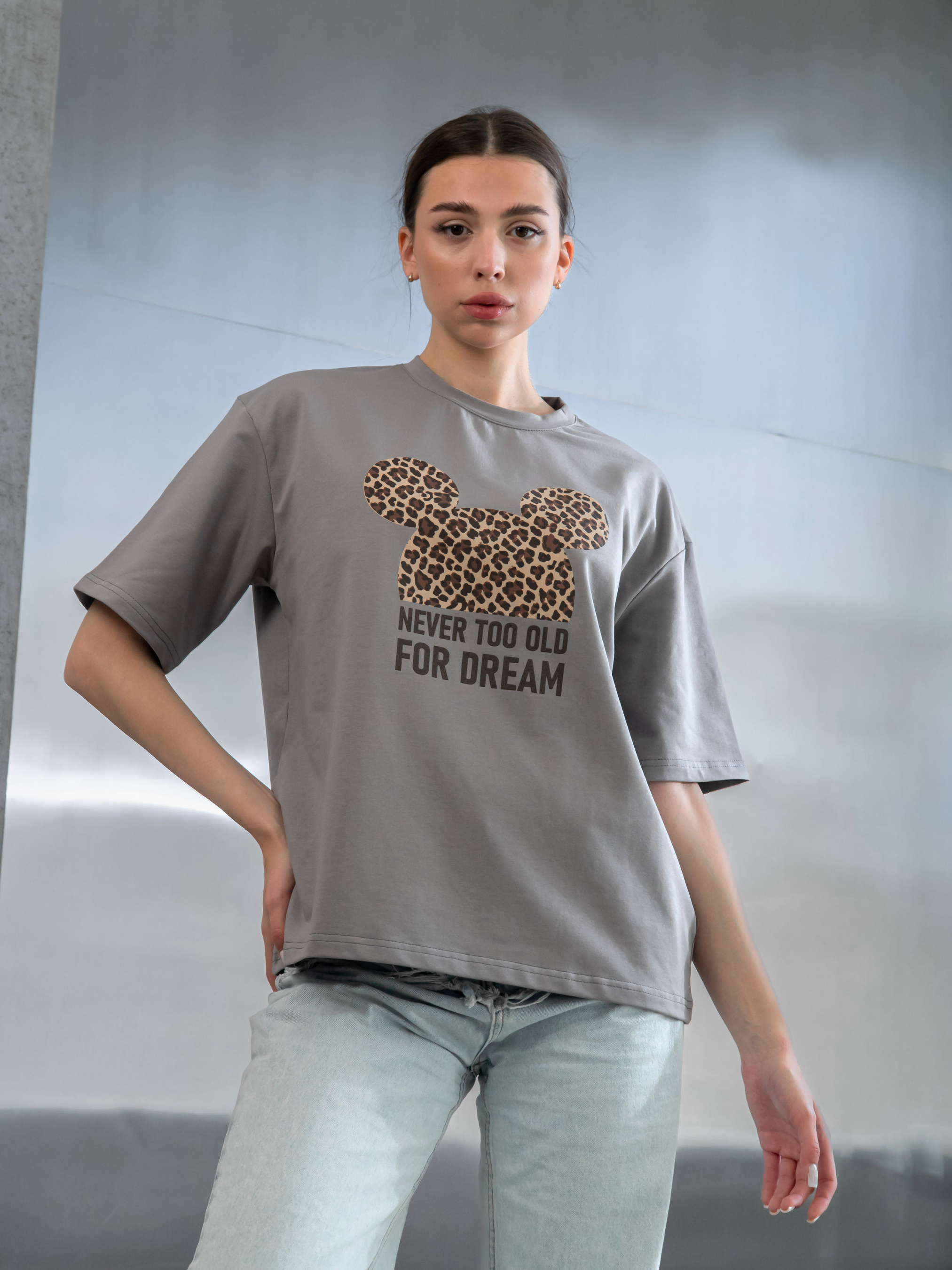 Стильна жіноча футболка оверсайз must-have в будь-якому гардеробі. Ця подовжена модель виконана з м'якої та дихальної бавовни, що робить її ідеальним вибором для комфортного носіння щодня. Футболка з принтом жіноча, легко поєднується з будь-якими елементами одягу - від джинсів до спідниць та шортів.