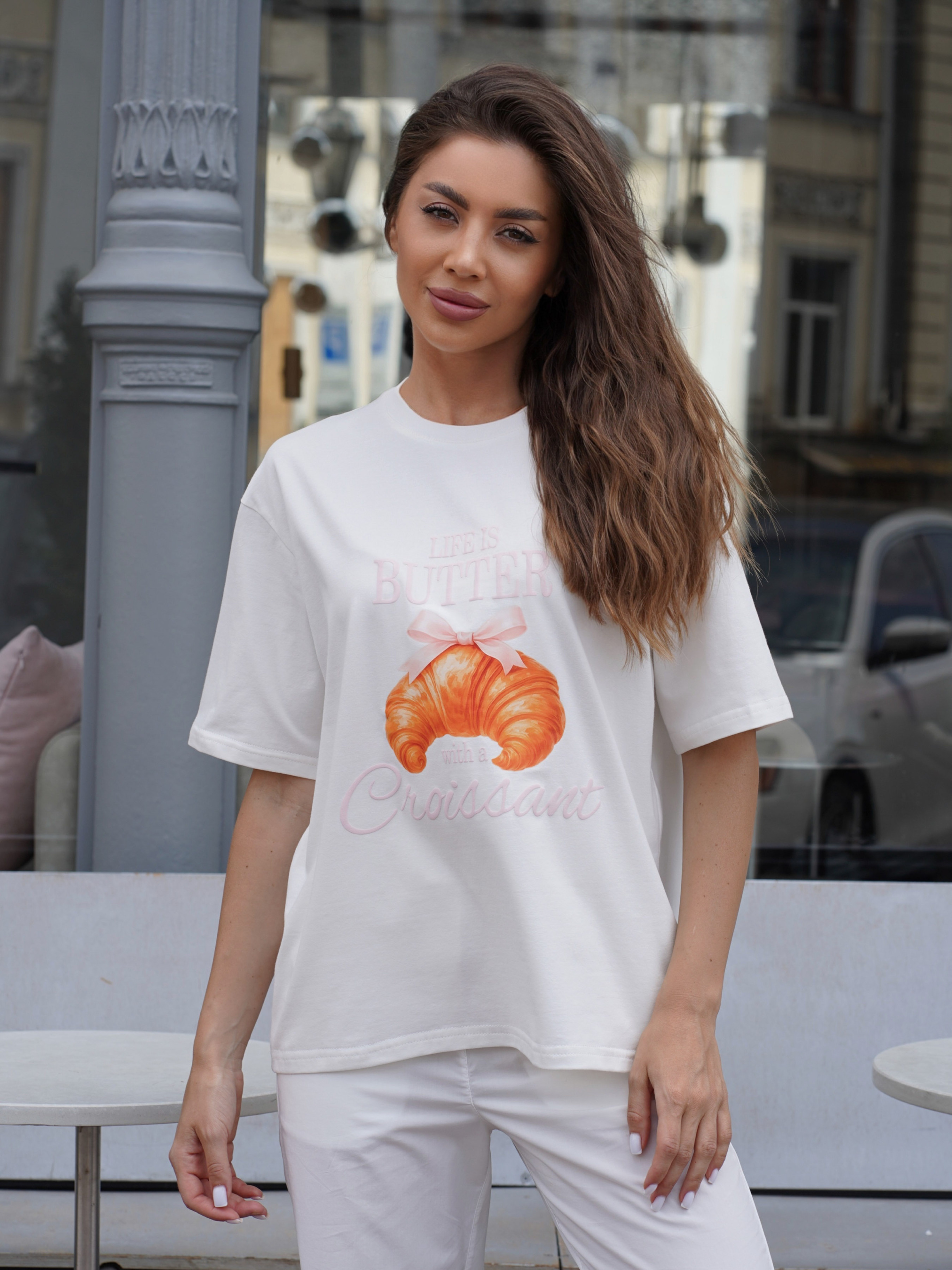 Стильна жіноча футболка оверсайз must-have в будь-якому гардеробі. Ця подовжена модель виконана з м'якої та дихаючої бавовни, що робить її ідеальним вибором для комфортного носіння щодня. Футболка з принтом жіноча, легко поєднується з будь-якими елементами одягу - від джинсів до спідниць та шортів.