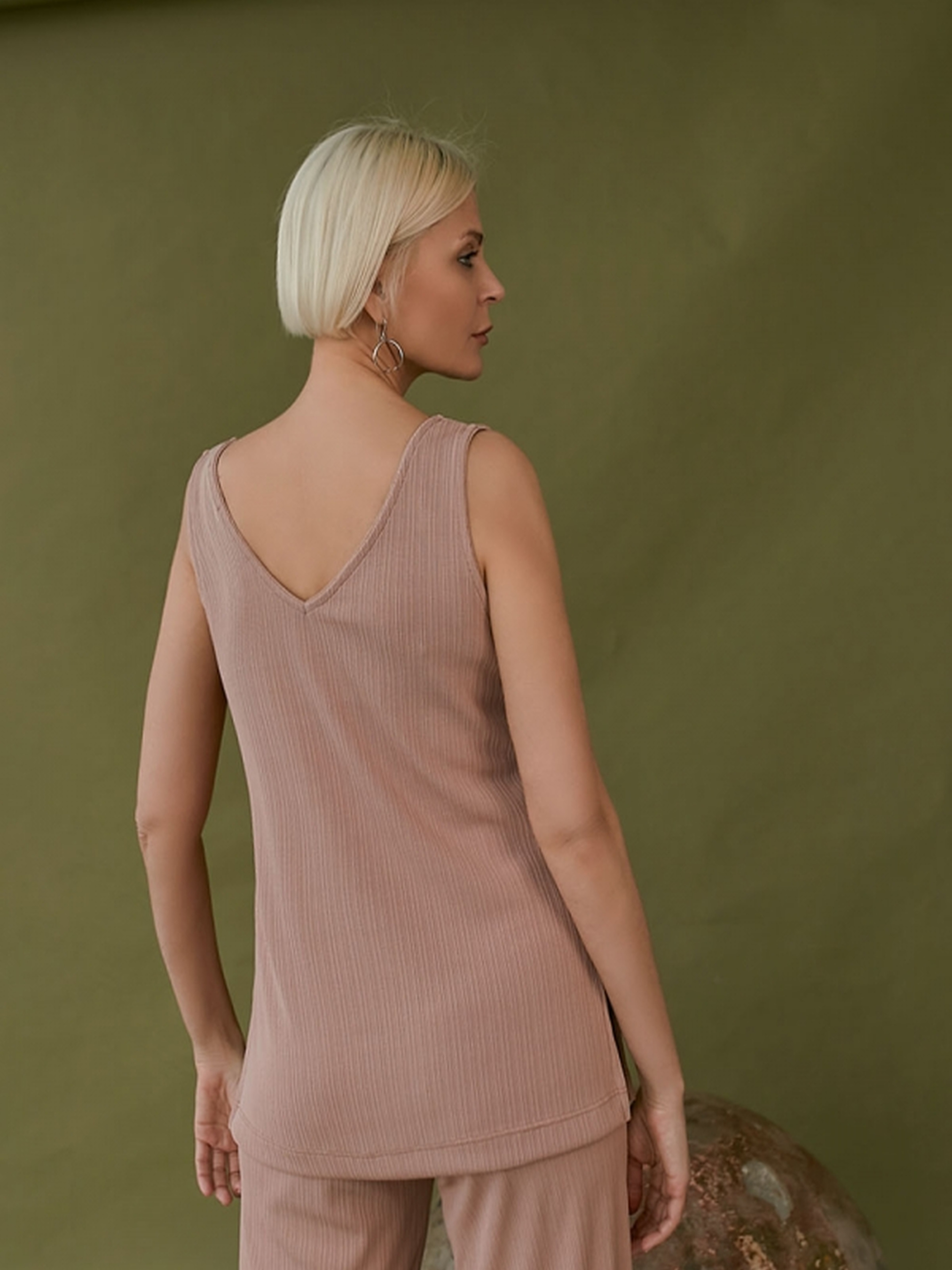 Жіночий подовжений топ з трикотажу в рубчик Стильний та комфортний трикотажний топ в рубчик — ідеальний вибір для створення базових образів. Завдяки подовженому крою та боковим розрізам модель виглядає сучасно та гармонійно сідає по фігурі. Характеристики:• Матеріал: м'який еластичний трикотаж у рубчик.• Фасон: подовжений, вільного крою, з боковими розрізами.• Універсальність: чудово комбінується з джинсами, штанами, лосинами, спідницями.• Довжина виробу: 65-67 см.• Ширина по грудях: 42-50 см. Ідеальний топ для стильних повсякденних та спортивно-елегантних луків. Рекомендуємо поєднувати з моделями TrikoBakh арт. 1781, 1789, 1790, 1791.