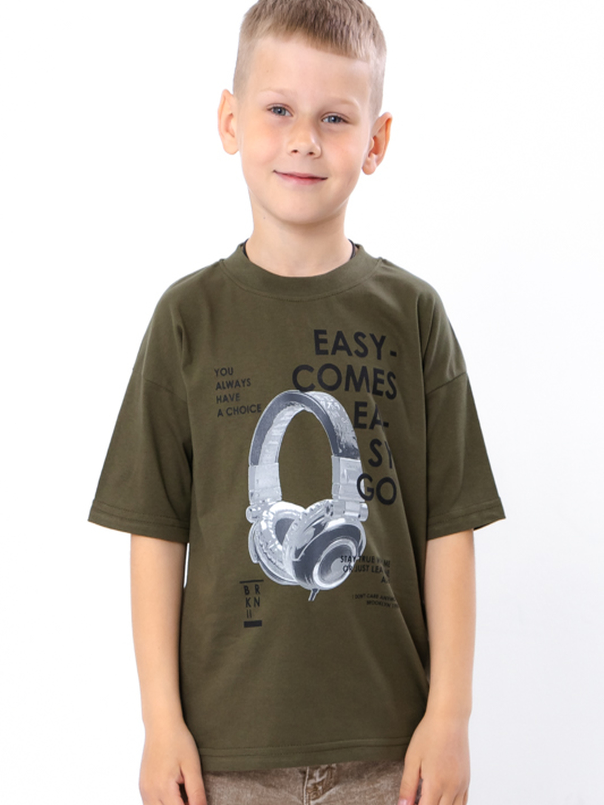 Полотно: кулір однотонний Склад полотна: 100% бавовна Зріст: 110-134 Ця футболка — чудовий вибір для активних хлопців, які люблять комфорт і стиль. Виготовлена з натурального куліру (100% бавовна), вона приємна до тіла, добре «дихає» і не втрачає форму після прання. Класичний крій з короткими рукавами та круглою горловиною забезпечує свободу рухів. Особливість моделі — крутий принт із навушниками та написами у стилі streetwear. Підійде для школи, прогулянок і відпочинку. Легко поєднується з джинсами, шортами та спортивним одягом.