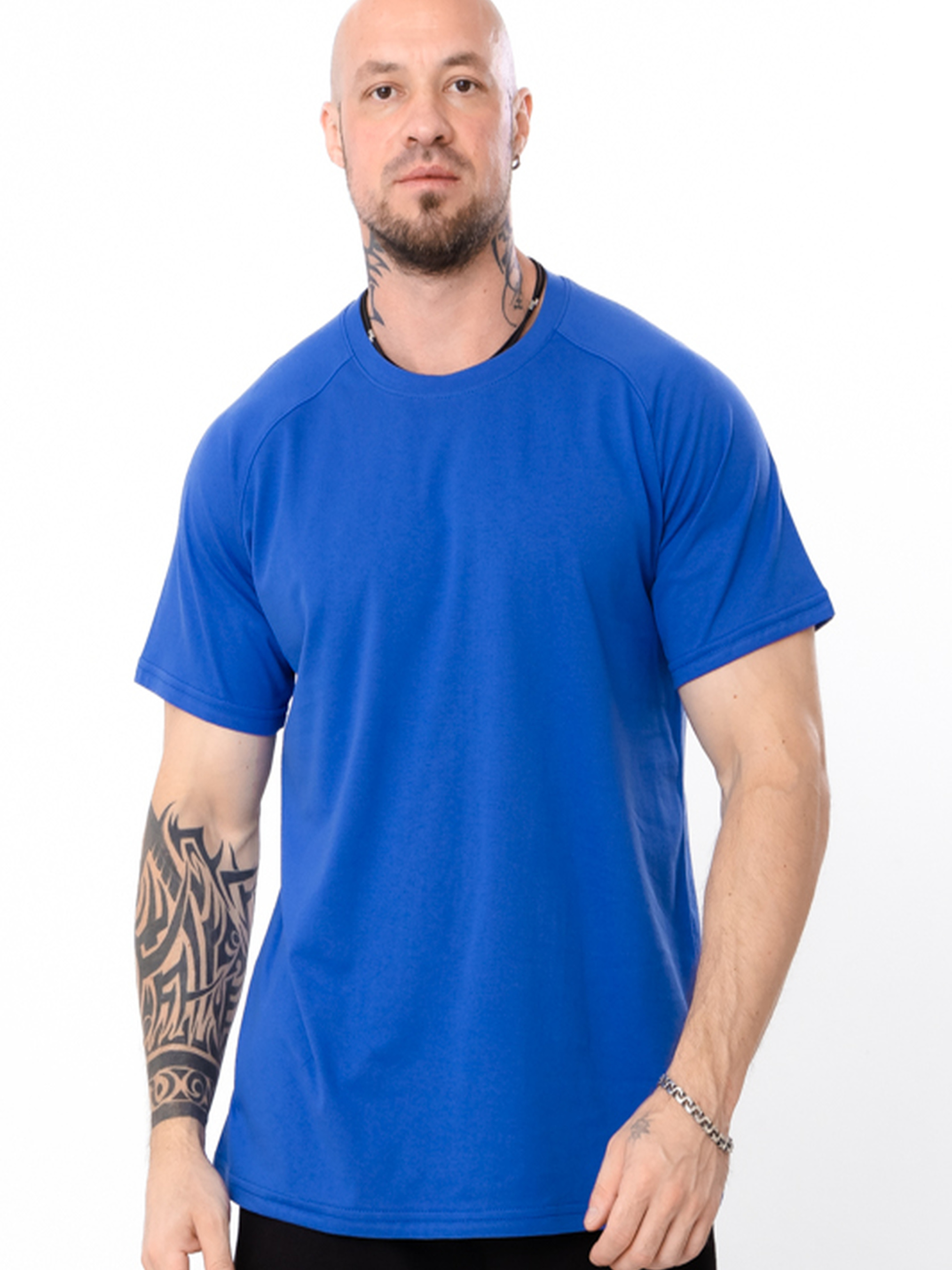 Футболка-реглан чоловіча великих розмірів однотонна, Електрик (насичений синій) Носи Своє (8011-001) модель 8011-001-elektrik