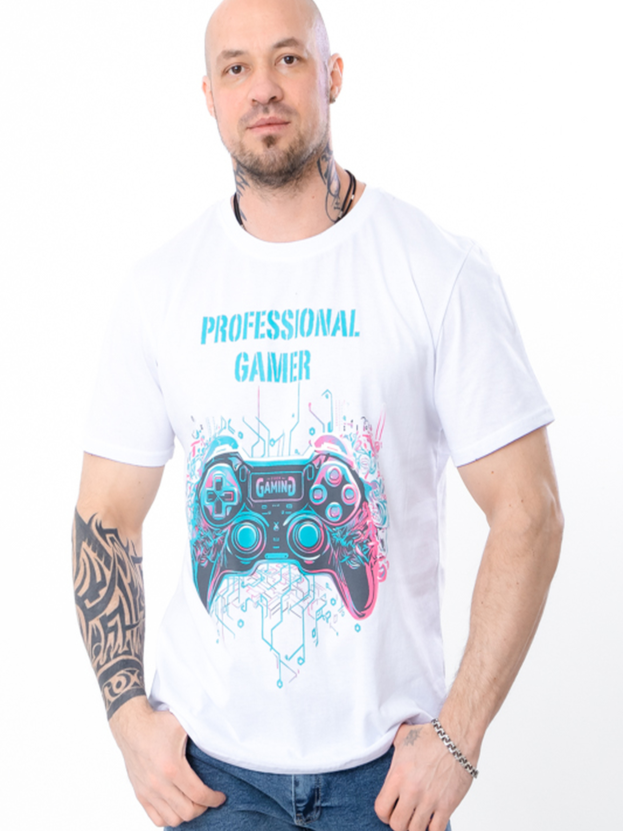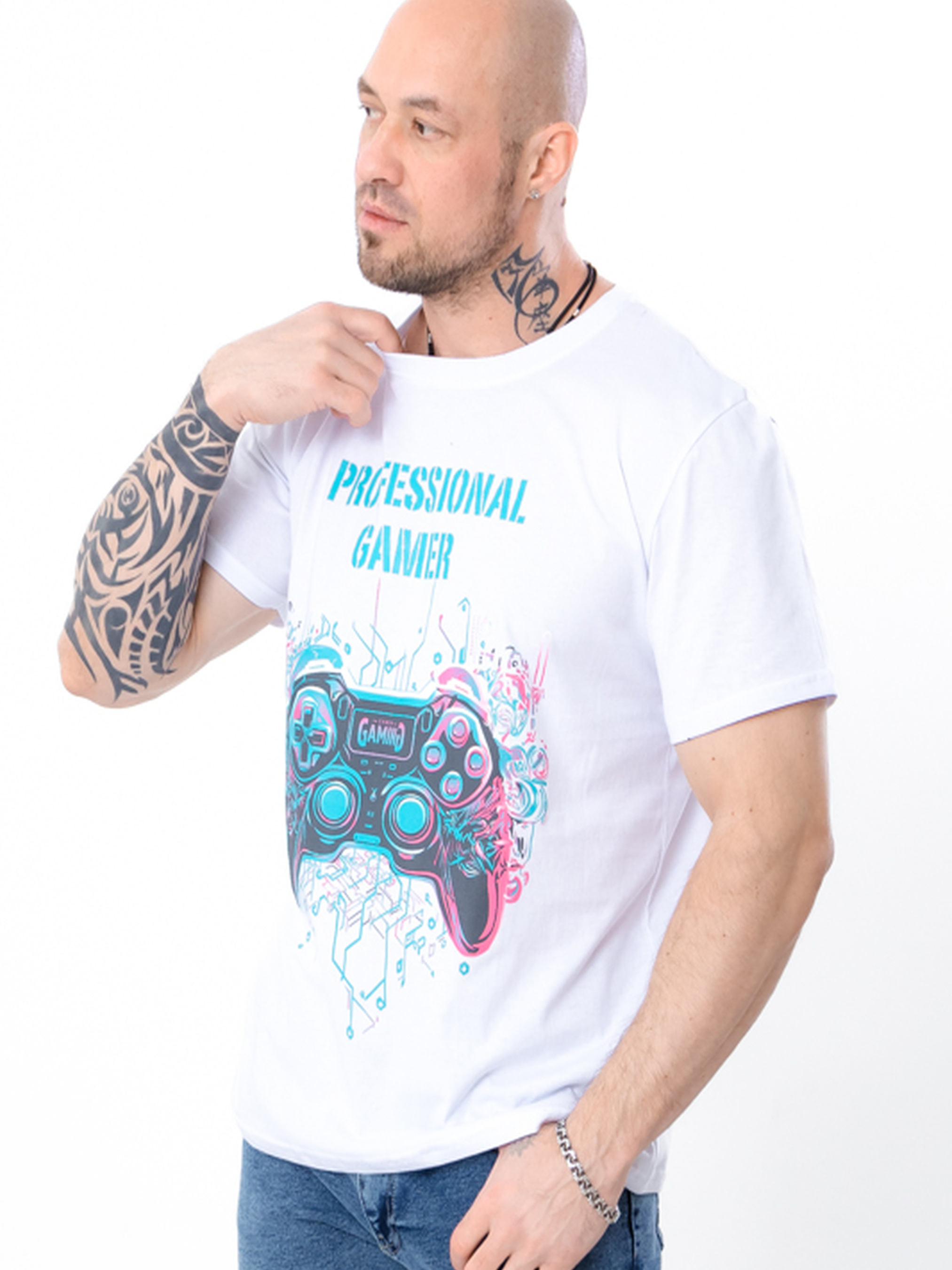 Полотно: кулір однотонний Склад полотна: 100% бавовна Розмір: 48-58 Футболка чоловіча з написом англійською Professional Gamer — стильний вибір для фанатів відеоігор. Модель зручного крою, виготовлена з приємної до тіла тканини, доступна в класичних кольорах: чорний і білий. Такий принт додає образу індивідуальності й підкреслює захоплення геймерською тематикою.