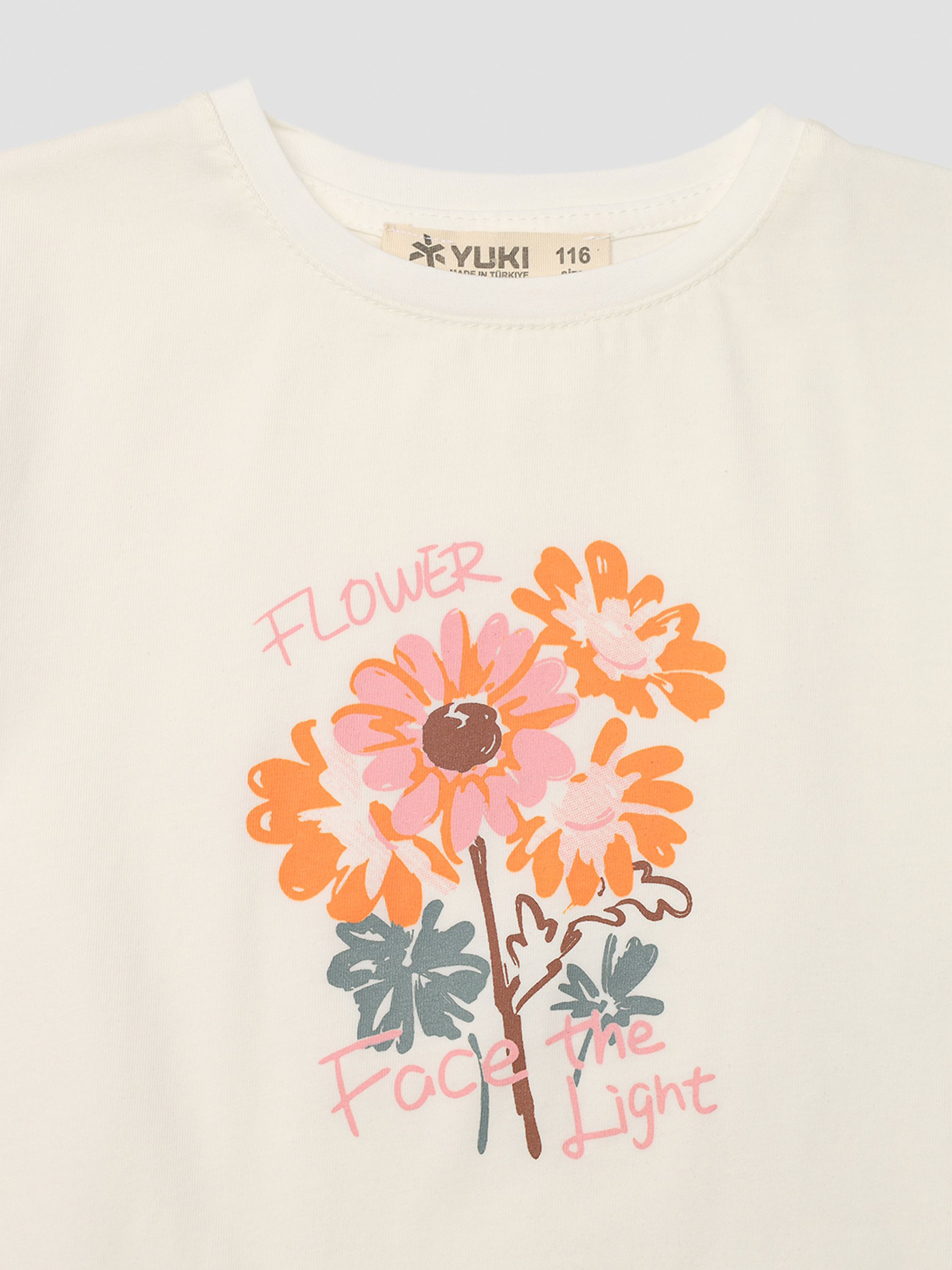 Футболка з коротким рукавом для дівчинки – ідеальний вибір на кожен день. Вона поєднує в собі комфорт і сучасний дизайн, що робить її чудовим доповненням до дитячого гардероба. Легка та приємна на дотик тканина дозволяє шкірі дихати, забезпечуючи комфорт навіть у спекотні дні. Завдяки зручному крою футболка не сковує рухів, що особливо важливо для активних дітей. Спокійний колір додає стильного акценту, дозволяючи створювати модні образи. Ідеально підходить для прогулянок, ігор та відпочинку, поєднуючись із джинсами, шортами чи спортивними штанами. Особливості виробу: Колір: молочний, з декоративним принтом спереду. Матеріал виготовлення: трикотаж. Склад: 90 % бавовна, 10 % лайкра. Крій: прямий. Довжина футболки: середня. Розмірний ряд: 116 - 134. Сезон: літо. Країна виробник: Туреччина.