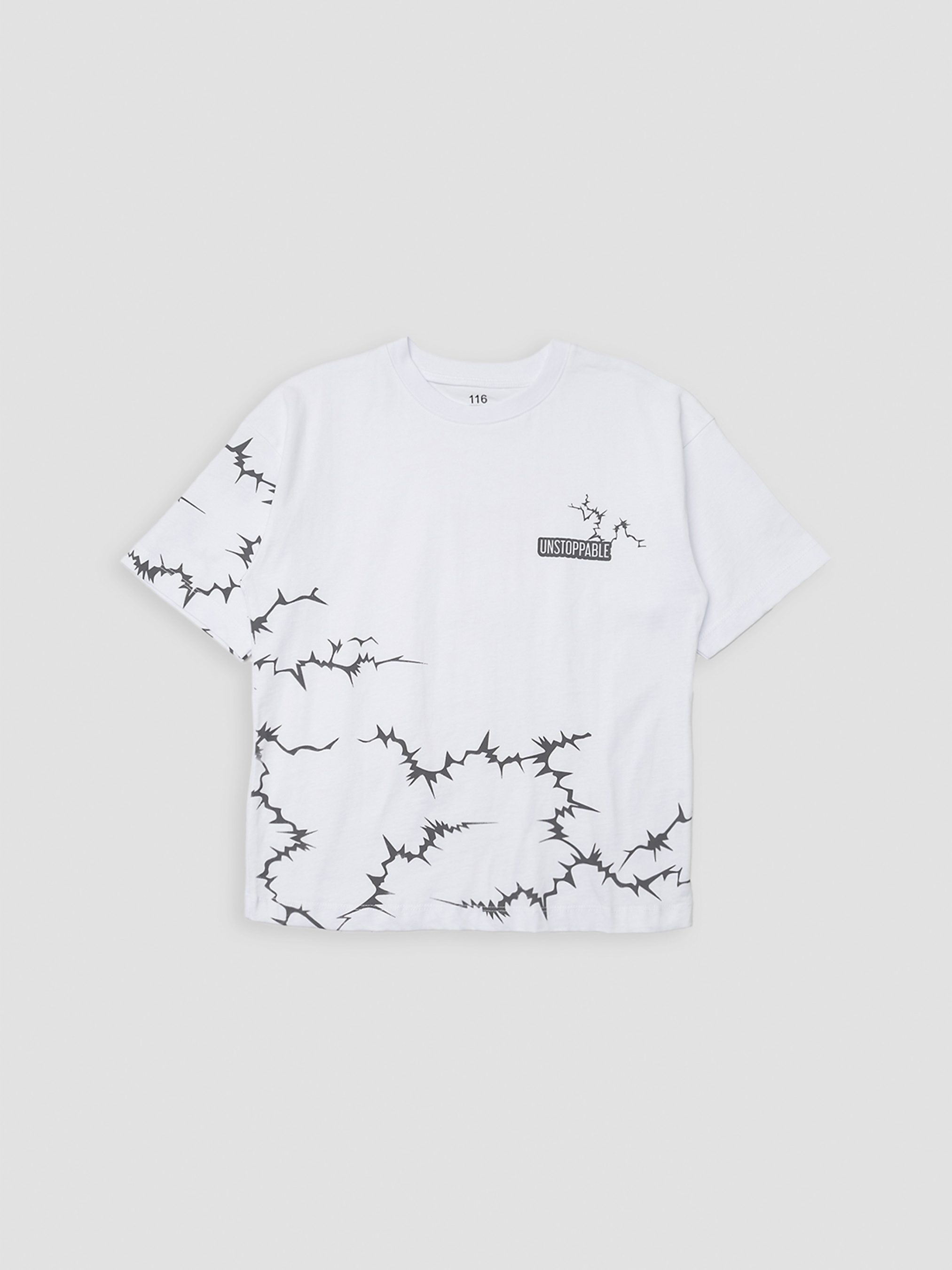 Футболка з коротким рукавом для хлопчика – це базовий елемент гардероба, який поєднує зручність, практичність і модний вигляд. Виготовлена з високоякісного матеріалу, вона забезпечує м’якість, повітропроникність і комфорт навіть у найспекотнішу погоду. Матеріал не подразнює шкіру та чудово тримає форму після багаторазового прання. Завдяки універсальному дизайну, футболка легко поєднується зі спортивними штанами, джинсами, шортами або класичними штанами, дозволяючи створювати стильні повсякденні образи. Ця модель підкреслює індивідуальність маленької модниці. Такі футболки підійдуть як для прогулянок, так і для школи чи святкових подій. Особливості виробу: Колір футболки: білий, з декоративним принтом. Матеріал виготовлення: трикотаж. Склад: 100 % бавовна. Футболка має короткий рукав. Крій: оверсайз. Довжина: середня. Розмірний ряд: 116 - 152. Сезон: літо. Країна виробник: Туреччина.