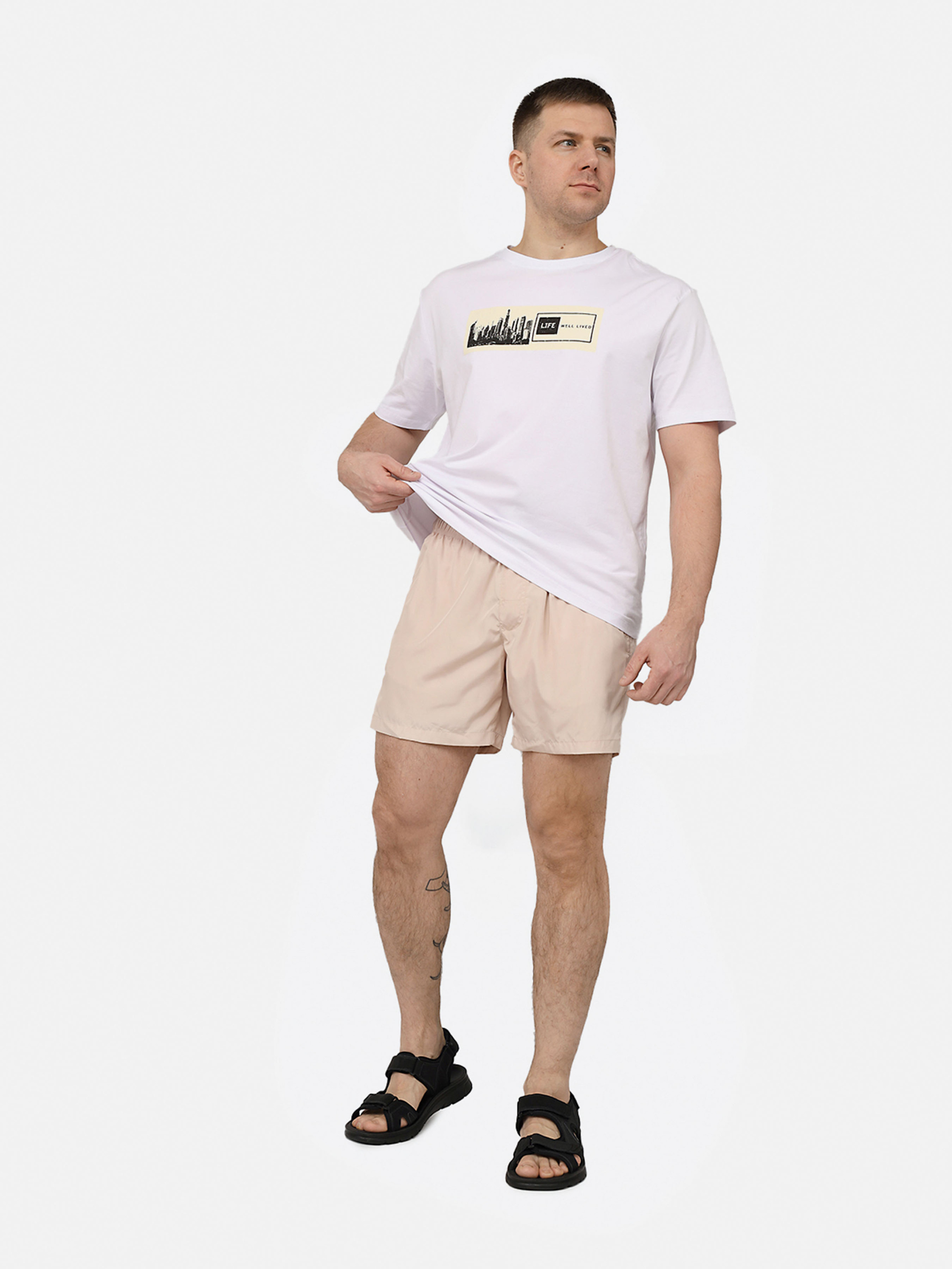 Футболка з коротким рукавом чоловіча – це універсальний елемент гардеробу, який ідеально підходить для повсякденного носіння. Її простий, але стильний дизайн робить її незамінною для створення комфортних і невимушених образів. Виготовлена з м’якої, приємної до тіла тканини, вона забезпечує зручність протягом усього дня, будь то прогулянка містом, зустріч із друзями чи відпочинок вдома. Класичний крій підкреслює мужність силуету, а короткі рукави додають легкості та свободи рухів. Ця футболка легко поєднується з джинсами, шортами чи спортивними штанами, дозволяючи створювати різноманітні образи на будь-який смак. Вона стане базовою річчю для тих, хто цінує практичність і стиль у повсякденному житті. Особливості виробу: Колір: білий. Матеріал виготовлення: трикотаж. Склад: 95 % бавовна, 5 % еластан. Крій: прямий. Сезон: літо. Параметри моделі: Зріст: 180 сантиметрів. Розмір на моделі: 50. Країна виробник: Туреччина.