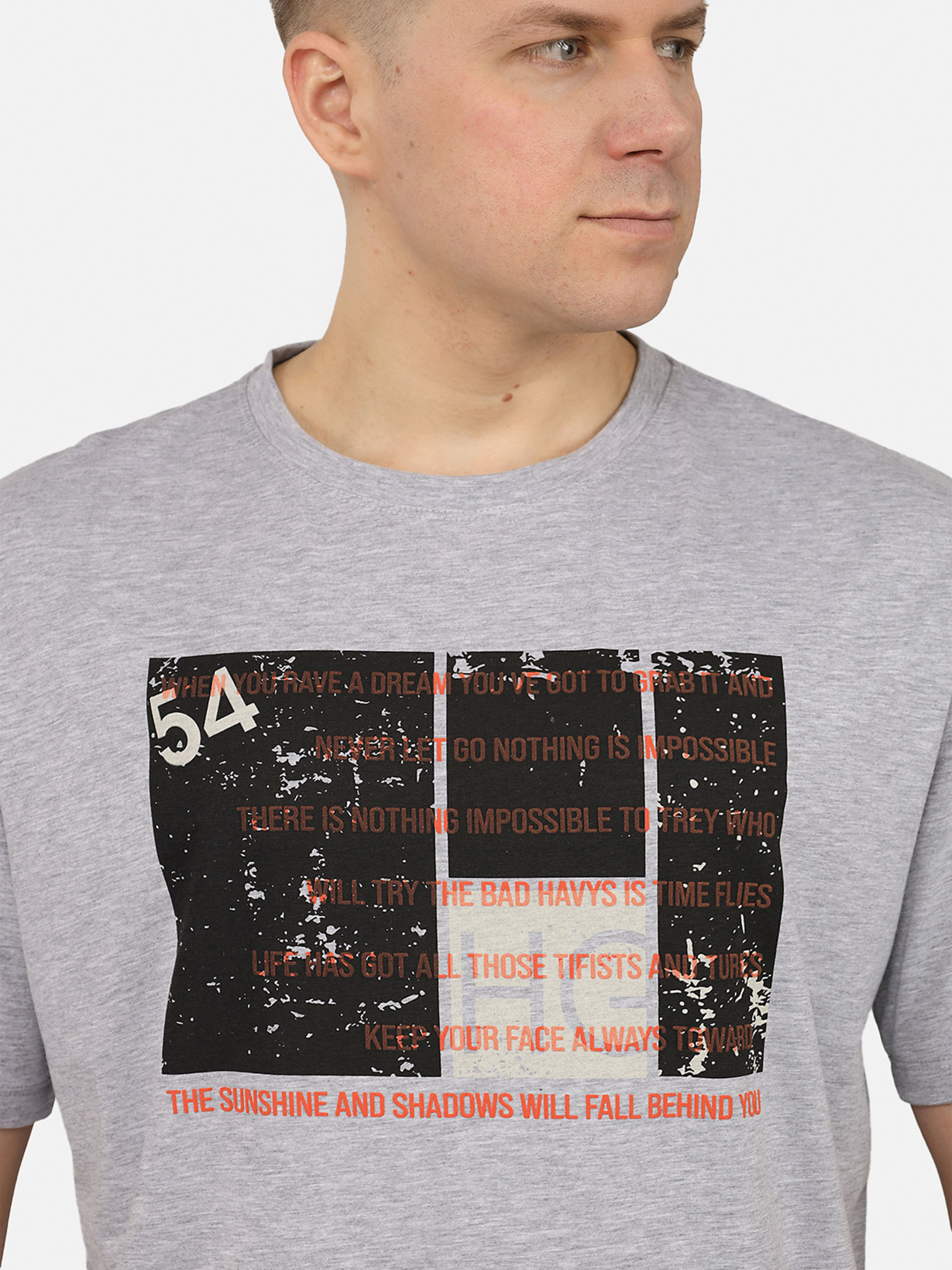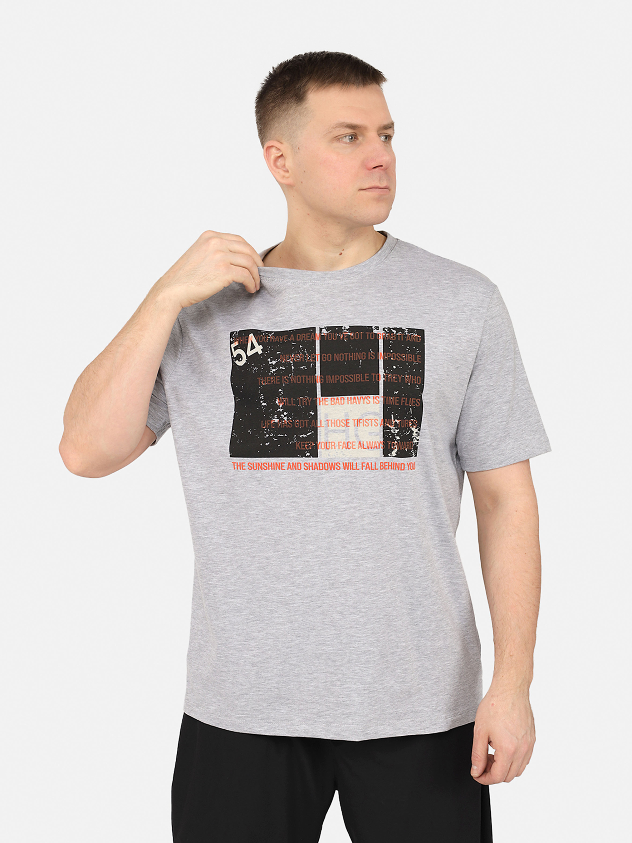 Футболка з коротким рукавом чоловіча – це базовий елемент гардероба, який поєднує комфорт і стиль. Завдяки універсальному крою вона ідеально сидить на фігурі та забезпечує свободу рухів. Футболку легко комбінувати з джинсами, шортами або спортивними штанами, створюючи як повсякденні, так і спортивні образи. Вона підходить для прогулянок, тренувань або зустрічей з друзями, додаючи легкості й невимушеності в стиль. Практичний і зручний варіант для будь-якого сезону – носіть окремо в теплу погоду або під сорочку, светр чи куртку в прохолодні дні. Футболка з коротким рукавом – ідеальний вибір для тих, хто цінує простоту та комфорт. Особливості виробу: Колір: сірий, з декоративним принтом спереду. Матеріал виготовлення: трикотаж. Склад: 95 % бавовна, 5 % еластан. Крій: прямий. Сезон: літо. Параметри моделі: Зріст: 180 сантиметрів. Розмір на моделі: 50. Країна виробник: Туреччина.