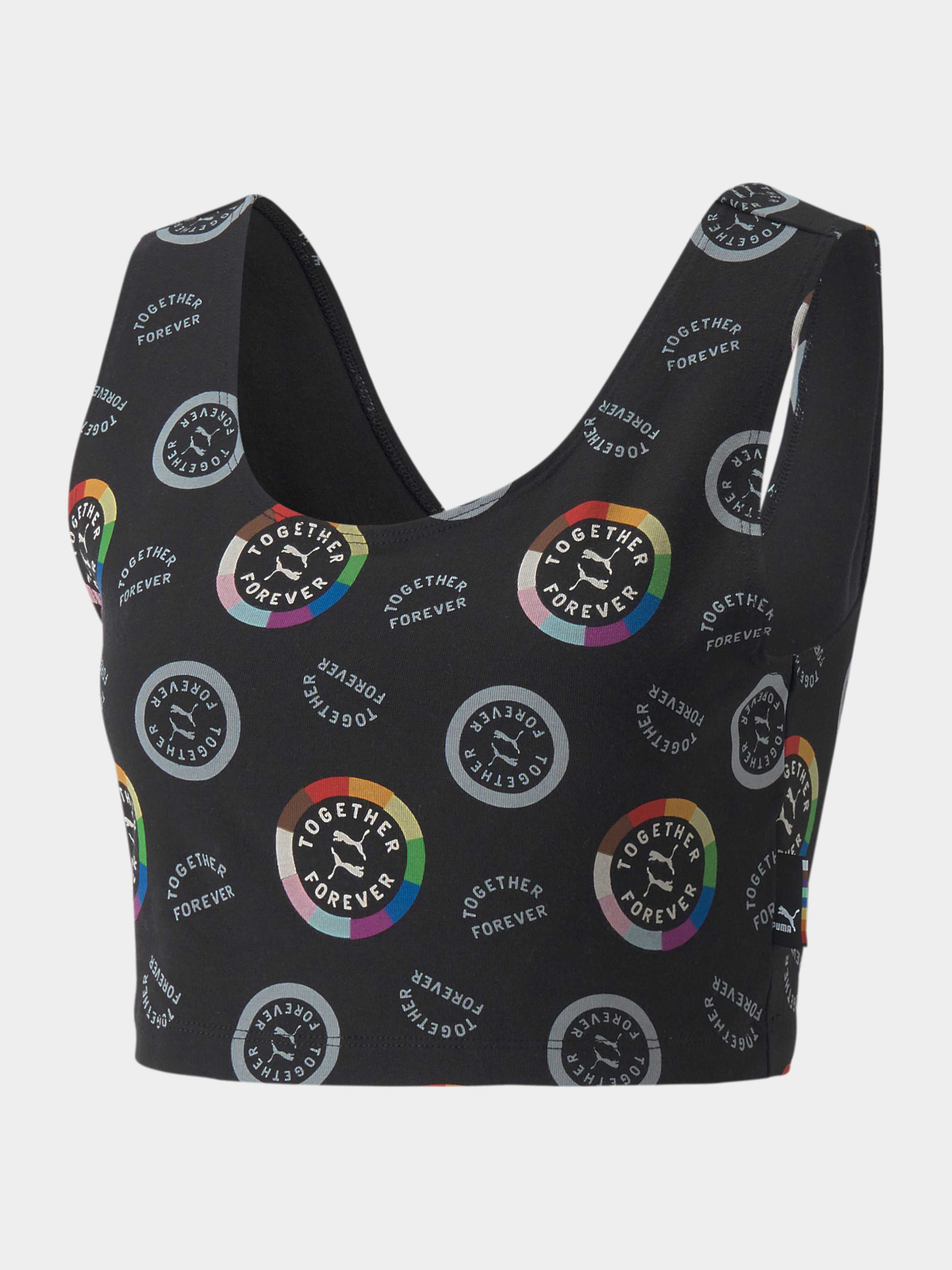Нова колекція Pride – це більше, ніж просто одяг та взуття. Вона уособлює зв'язок з тими, хто нас любить, хто нас підтримує, хто знаходиться завжди на нашому боці і дозволяє нам почуватися як вдома незалежно від того, в якій точці світу ми знаходимося. Виділяйтеся з натовпу завдяки цьому унікальному топу. Це — зухвалий виклик, сміливий укорочений крій з повторюваним по всій поверхні принтом із зображенням веселки та надихаючим написом «TOGETHER FOREVER». Деталі: Колекція: Весна-Літо 2022 Характеристики Склад: 93% бавовна, , 7% еластсан Містить перероблений матеріал: виготовлено із переробленого волокна. Одне з рішень PUMA покликане скоротити шкідливі впливи на навколишнє середовище. Щільна посадка Круглий виріз Кнопки внизу для зручного застібання Попередження AOP: Вироби з принтами, що повторюються на всій поверхні, можуть не повністю відповідати зображенням Країна виробник: Китай