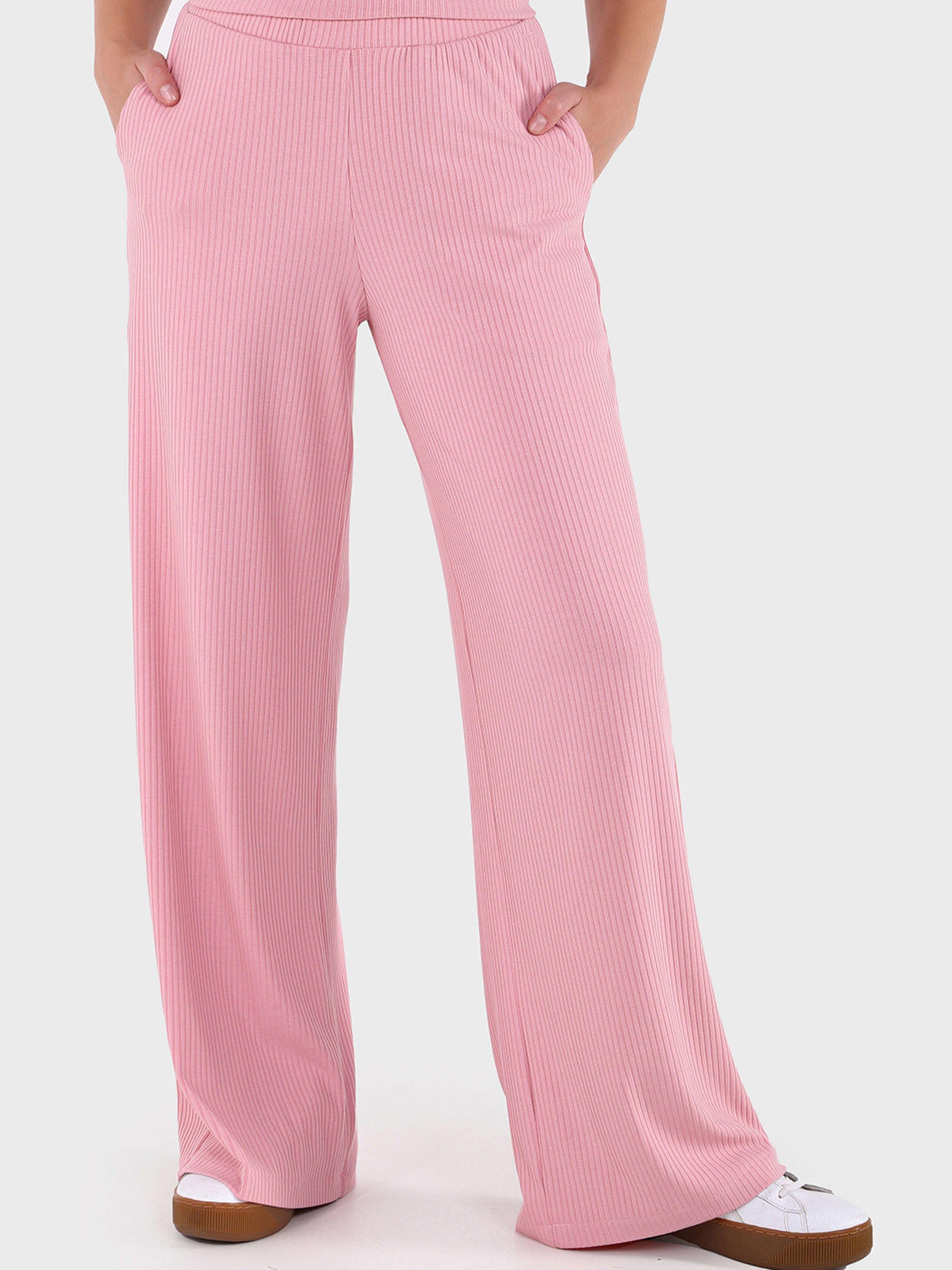 Матеріал: турецький рубчик. Параметри штанів палаццо в розкладеному вигляді: 42-44 (S-M): ширина талії – 31 см, ширина стегон – 51 см, довжина зовнішнього шва – 105 см, довжина за внутрішнім швом – 81 см. 46-48 (L-XL): ширина талії – 34 см, ширина стегон – 54 см, довжина зовнішнього шва – 105 см, довжина за внутрішнім швом – 81 см. 50-52 (2XL-3XL): ширина талії – 37 см, ширина стегон – 57 см, довжина зовнішнього шва – 106 см, довжина за внутрішнім швом – 80 см. 54-56 (4XL-5XL): ширина талії – 42 см, ширина стегон – 63 см, довжина зовнішнього шва – 107 см, довжина за внутрішнім швом – 80 см. Параметри футболки в розкладеному вигляді: 42-44 (S-M): обхват грудей - 44 см, довжина виробу спереду – ndash; 58 см, довжина виробу позаду – 63 см, довжина рукава – 25 см, ширина рукава - 34 см. 46-48 (L-XL): обхват грудей - 48 см, довжина виробу спереду – 59 см, довжина виробу ззаду – 65 см, довжина рукава – 26 см, ширина рукава - 36 см. 50-52 (2XL-3XL): обхват грудей - 51 см, довжина виробу спереду – 62 см, довжина виробу ззаду – 68 см, довжина рукава – 28 см, ширина рукава - 39 см. 54-56 (4XL-5XL): обхват грудей - 54 см, довжина виробу спереду – 65 см, довжина виробу ззаду – 69 см, довжина рукава – 30 см, ширина рукава – 40 см. Параметри фотомоделі: зростання – 168 см, ОГ – 84 см, ВІД – 63см, ПРО – 92 см. На фото показано розмір: 42-44 (S-M). Догляд за виробом: прасувати при 90С, делікатне прання 30С з мінімальною механічною обробкою, не відбілювати, в електричній сушарці не сушити.