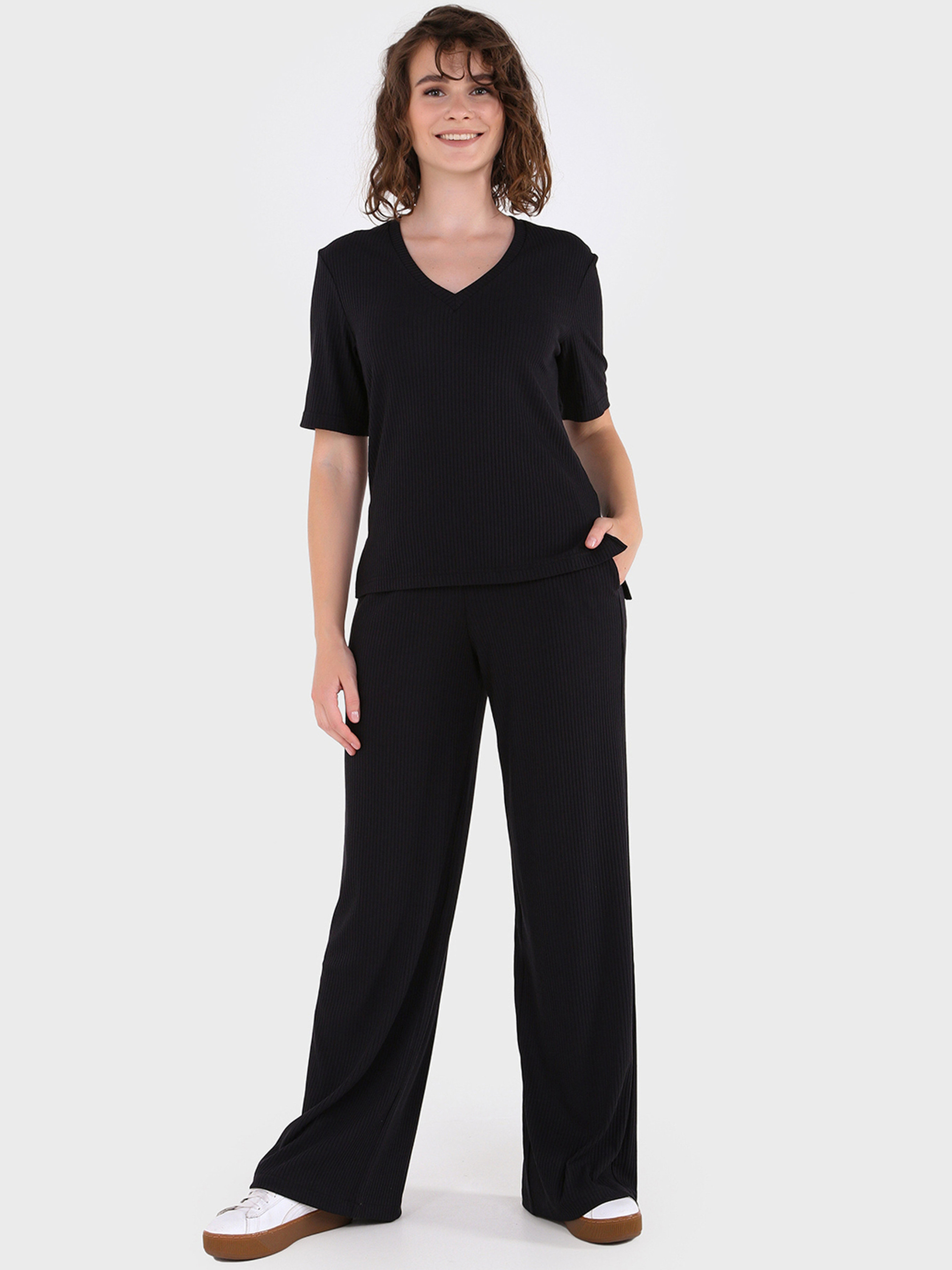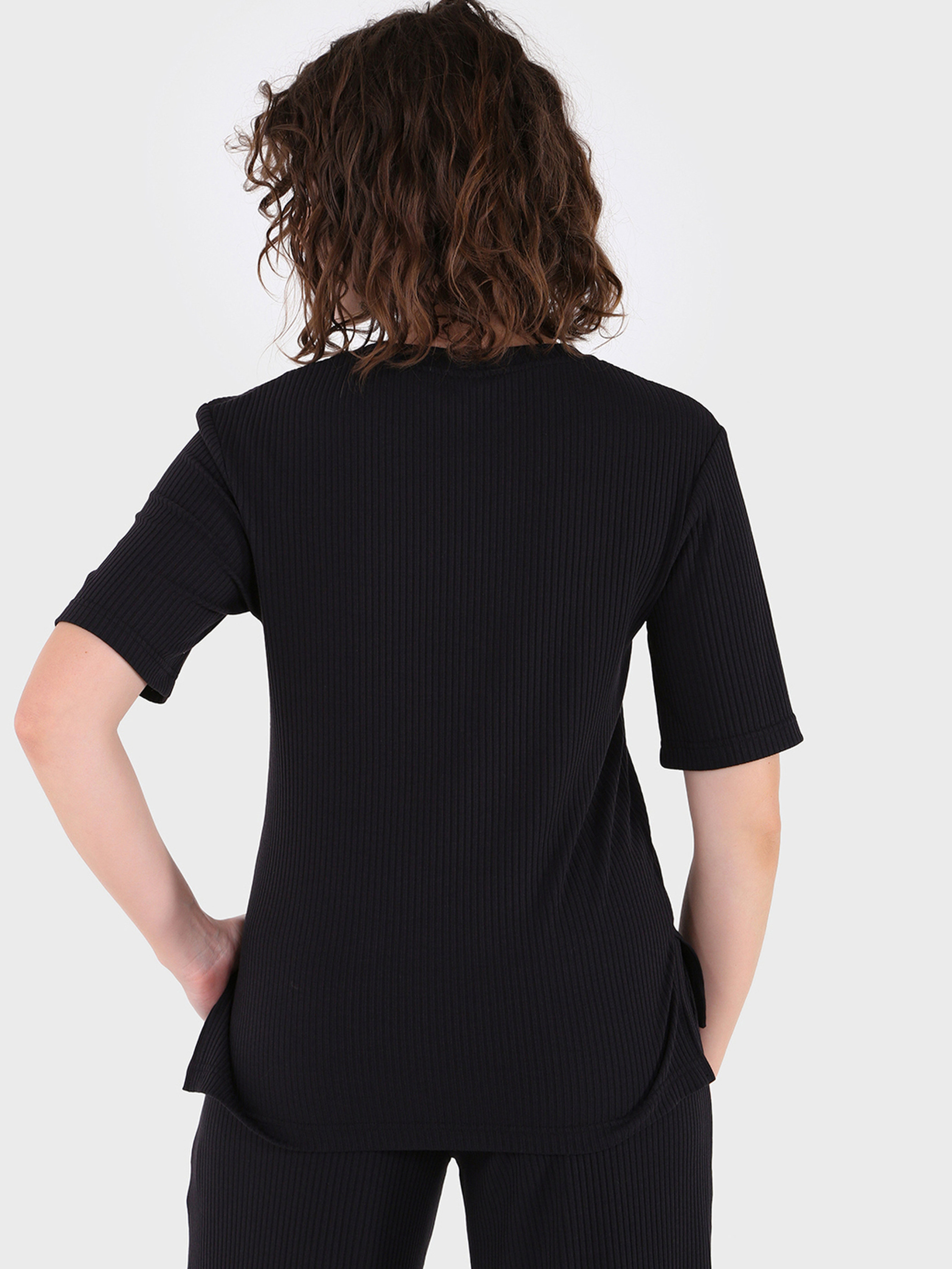 Матеріал: турецький рубчик. Параметри штанів палаццо в розкладеному вигляді: 42-44 (S-M): ширина талії – 31 см, ширина стегон – 51 см, довжина зовнішнього шва – 105 см, довжина за внутрішнім швом – 81 см. 46-48 (L-XL): ширина талії – 34 см, ширина стегон – 54 см, довжина зовнішнього шва – 105 см, довжина за внутрішнім швом – 81 см. 50-52 (2XL-3XL): ширина талії – 37 см, ширина стегон – 57 см, довжина зовнішнього шва – 106 см, довжина за внутрішнім швом – 80 см. 54-56 (4XL-5XL): ширина талії – 42 см, ширина стегон – 63 см, довжина зовнішнього шва – 107 см, довжина за внутрішнім швом – 80 см. Параметри футболки в розкладеному вигляді: 42-44 (S-M): обхват грудей - 44 см, довжина виробу спереду – ndash; 58 см, довжина виробу позаду – 63 см, довжина рукава – 25 см, ширина рукава - 34 см. 46-48 (L-XL): обхват грудей - 48 см, довжина виробу спереду – 59 см, довжина виробу ззаду – 65 см, довжина рукава – 26 см, ширина рукава - 36 см. 50-52 (2XL-3XL): обхват грудей - 51 см, довжина виробу спереду – 62 см, довжина виробу ззаду – 68 см, довжина рукава – 28 см, ширина рукава - 39 см. 54-56 (4XL-5XL): обхват грудей - 54 см, довжина виробу спереду – 65 см, довжина виробу ззаду – 69 см, довжина рукава – 30 см, ширина рукава – 40 см. Параметри фотомоделі: зростання – 168 см, ОГ – 84 см, ВІД – 63см, ПРО – 92 см. На фото показано розмір: 42-44 (S-M). Догляд за виробом: прасувати при 90С, делікатне прання 30С з мінімальною механічною обробкою, не відбілювати, в електричній сушарці не сушити.