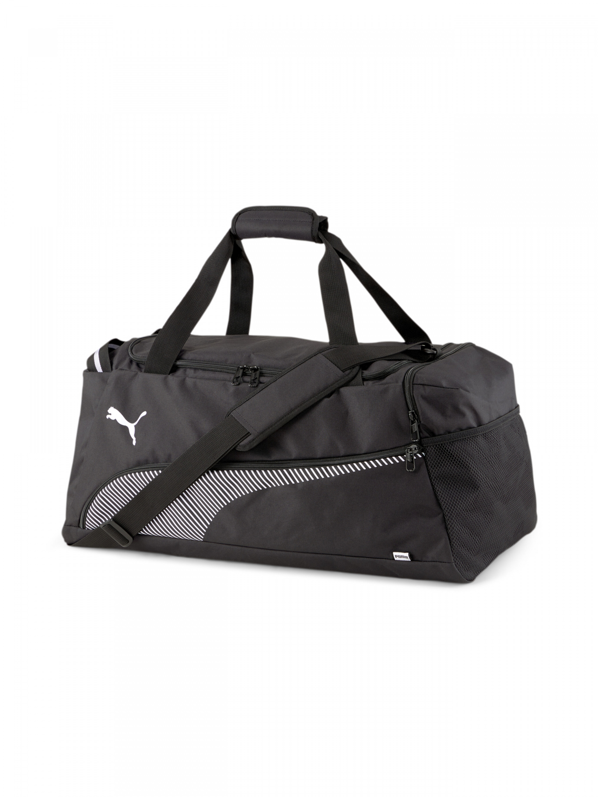 Сумка Fundamentals Sports Bag M – ідеальний варіант для зберігання Вашої екіпіровки. Є кілька відділень на застібці-блискавці та зручний плечовий ремінець. Фірмові елементи роблять цей аксесуар ефектним. Деталі Колекція: Осінь-зима 2020 Характеристики Розміри: 60 х 29 х 27 см (47 л) Основне відділення на двосторонній застібці-блискавці Всередині - кишеня на застібці-блискавці Фронтальна і бічна кишені – на застібці-блискавці Бічна сітчаста кишеня Брендована підкладка з поліестеру М'яка основа Ручки для перенесення (м'який конектор на «липучці») Двоколірна ручка для перенесення – збоку Плечовий ремінець із регулюванням довжини і м'якою накладкою На фронтальній панелі - велика фірмова смужка PUMA Formstrip і логотип PUMA Cat