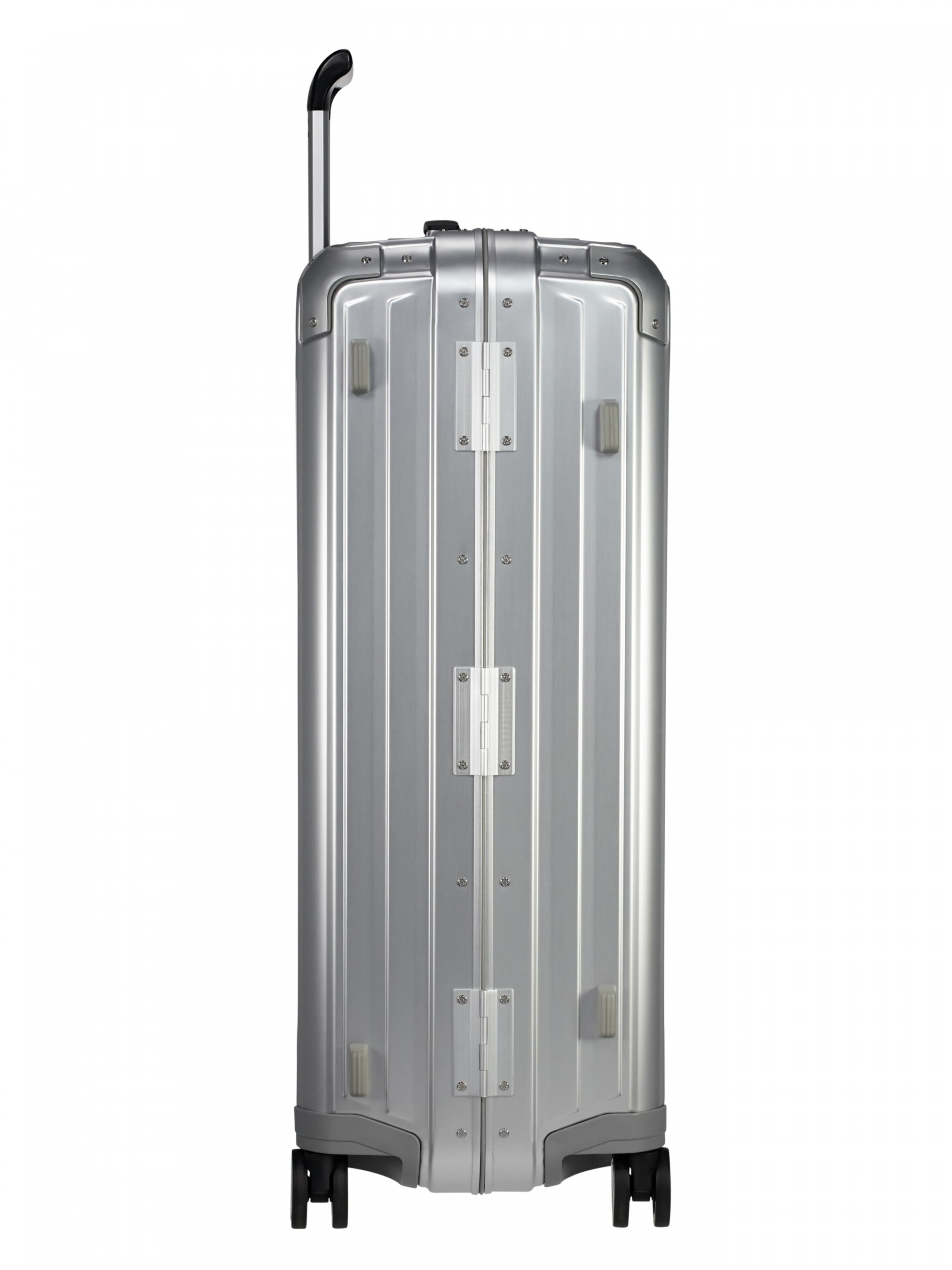 ВАЛІЗА LITE-BOX ALU ALUMINIUM 76х51х28 Особливості: валіза преміумкласу виготовлена з анодованого алюмінію з посиленими кутами; застібається на защіпки та має прогумований стик по периметру для надійного захисту речей від вологи; вбудований ярлик для персоналізації та брендоване гравіювання додає вишуканості моделі. Екстер’єр: інтегрований кодовий замок із системою митного огляду TSA; висувна адресна бирка для ідентифікації власника; прогумовані ручки для перенесення у вертикальному і горизонтальному положеннях; подвійна телескопічна ручка з кнопкою регулюється у двох положеннях; безшумні подвійні колеса з поліуретану обертаються на 360 градусів. Інтер'єр: два містких відділення зі знімними перегородками; в кожному відділенні є довга кишеня для дрібниць; компресійні ремені регулюється по довжині та фіксують перегородки; перегородка має жорсткий каркас по периметру і кишеню для сорочок. Зверніть увагу, що алюмінієвий багаж, як правило, важчий, ніж інші валізи з твердим корпусом. Вага валізи становить 6,6 кг.