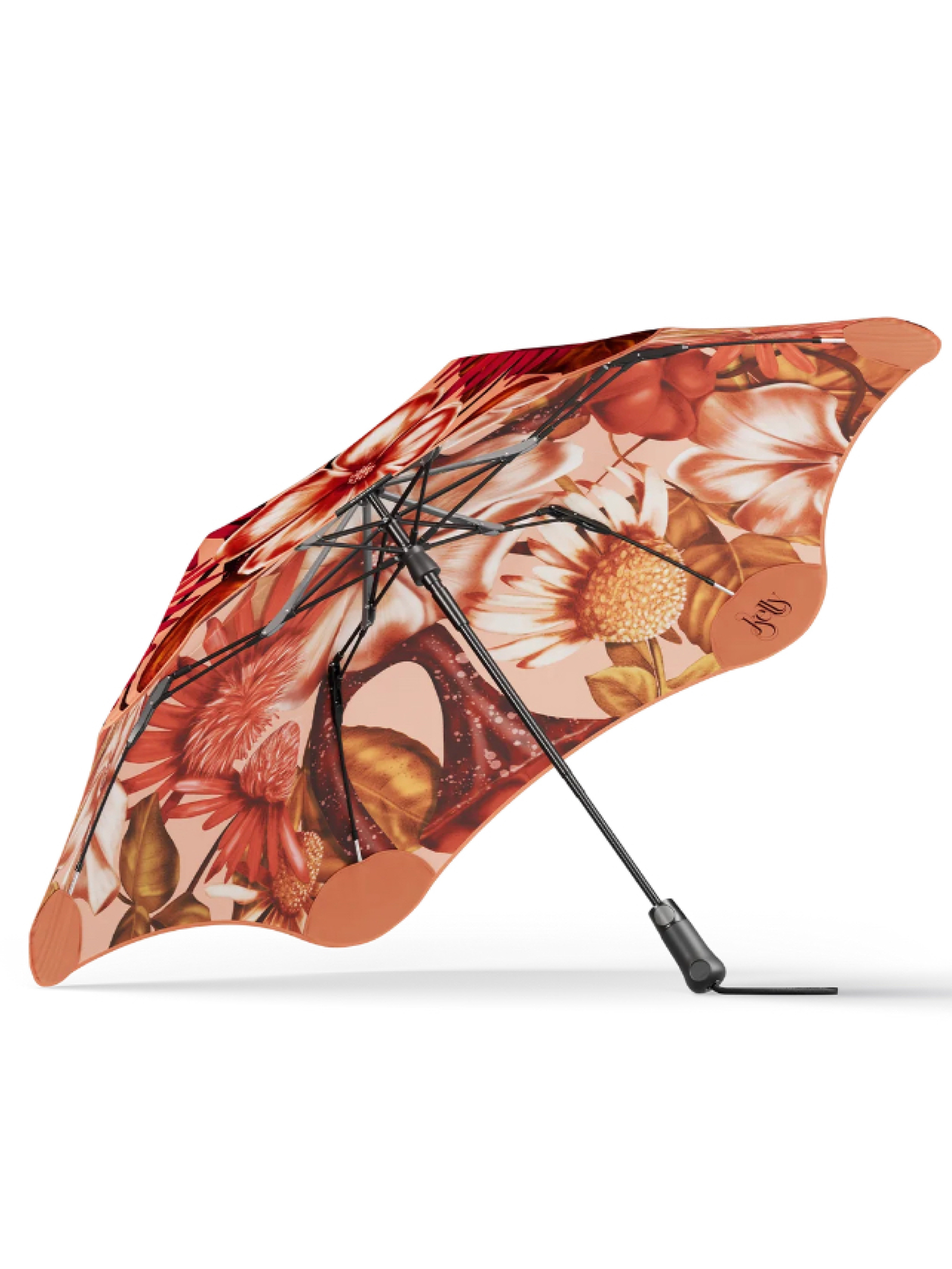 BLUNT Metro Kelly Thompson - нова парасолька з лімітованої серії, створена ілюстраторкою краси та ботаніки Келлі Томпсон. Натхненний фермерськими ринками Мельбурна, цей дизайн, намальований вручну, ретельно деталізує прекрасні польові квіти та химерні гриби в культовому ілюстративному стилі Келлі. Цей надзвичайно лімітований дизайн представлений на моделі Metro в абрикосовому відтінку. Парасоля має ідеальні розміри, щоб забезпечити охоплення, не займаючи занадто багато місця на вулиці. Ця модель парасолі має купол, який легко відкривається натисканням кнопки, а назад згортається вручну, щоб обережно вмістити парасолю в чохол для перенесення. Також купол обертається на 360°, щоб уникнути пошкодження центрального механізму під час зіткнення. Конструкція купола парасолі, як і всі моделі BLUNT, зроблена зі скловолокна, має безпечні наконечники та правильну аеродинамічну форму, що буде захищати Вас під час сильного вітру. Компактна за розміром, всього 100 см в діаметрі купола та 37 см в складеному вигляді. Парасоля BLUNT Kelly Thompson поставляється з відповідним чохлом та екологічним подарунковим тубусом.