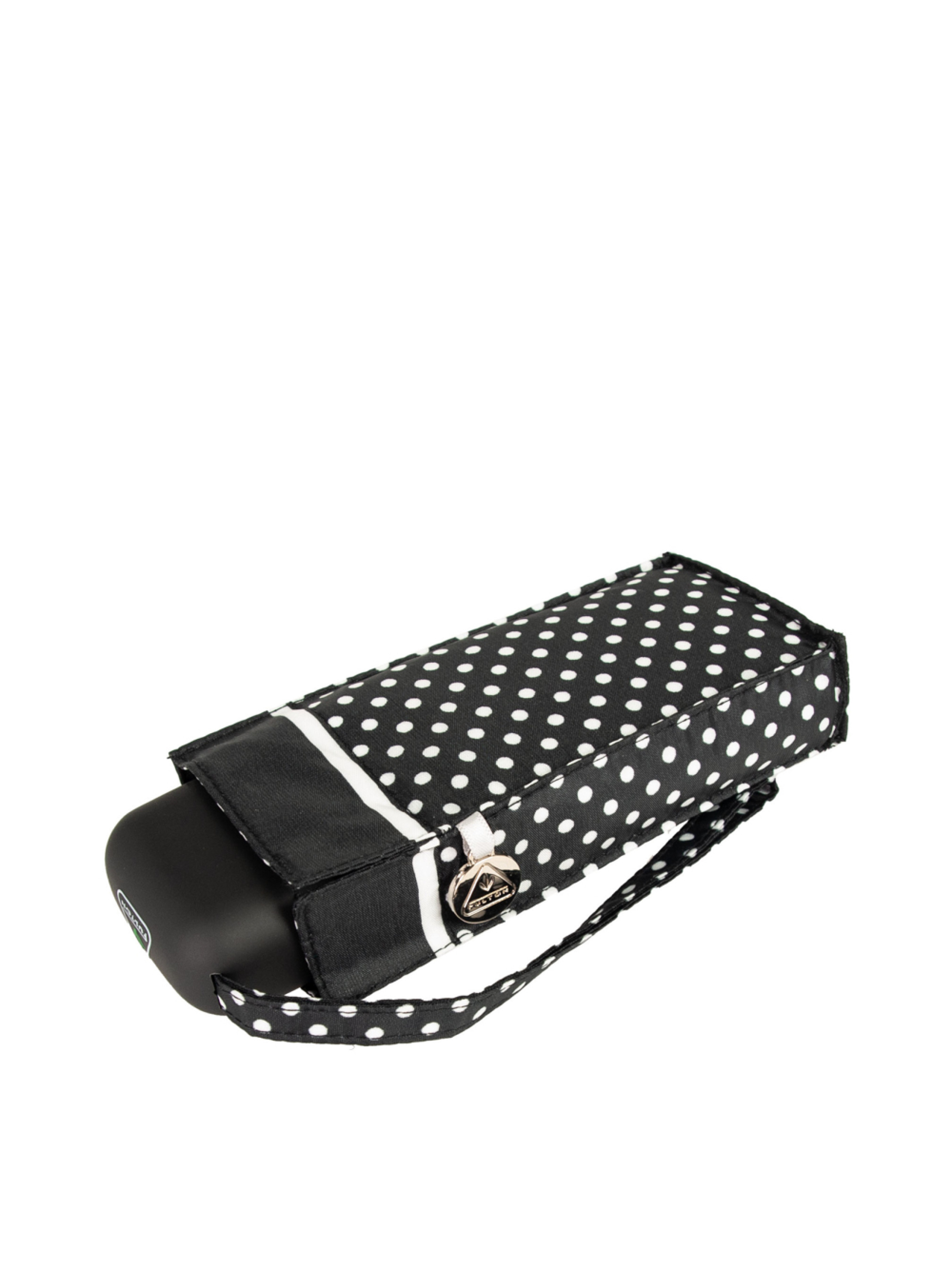 Парасоля Fulton Tiny-2 Tiny Classics Black Set of 3 L501 – стильний та вишуканий аксесуар для леді. Дрібний білий горошок на чорному куполі парасольки в обрамленні вузької білої і широкої чорної смужки по колу виглядають просто приголомшливо елегантно. Попри невеликий розмір купола — 85 см — парасолька забезпечує надійний захист від дощу. Завдяки легкій вазі та компактним розмірам вона легко поміщається навіть у невелику сумочку й завжди буде під рукою, коли дощ застане зненацька. Парасолька у складеному вигляді набуває прямокутної форми та довжини всього лише 15 см, завдяки чому вона уміститься навіть у маленьку жіночу сумочку або кишеню верхнього одягу. Алюмінієва конструкція та фібергласові спиці роблять її гнучкою і дуже легкою – така парасолька за вагою не перевищує чашки чаю – всього 160 грам. Механічна парасолька: розкривати і закривати купол парасольку, а також складати слід вручну. Система 'Антивітер' не дасть зламатися Вашій парасольці, навіть якщо її вітер вивернув навиворіт. Невеликі пружинки або гнучкі елементи в спицях запобігають поломці каркаса. При поривах вітру такі спиці тільки гнуться, але не ламаються. Якщо купол вивернувся назовні, важливо не смикати за спиці у спробах повернути їх у початкове становище. Достатньо скласти парасольку звичайним способом.
