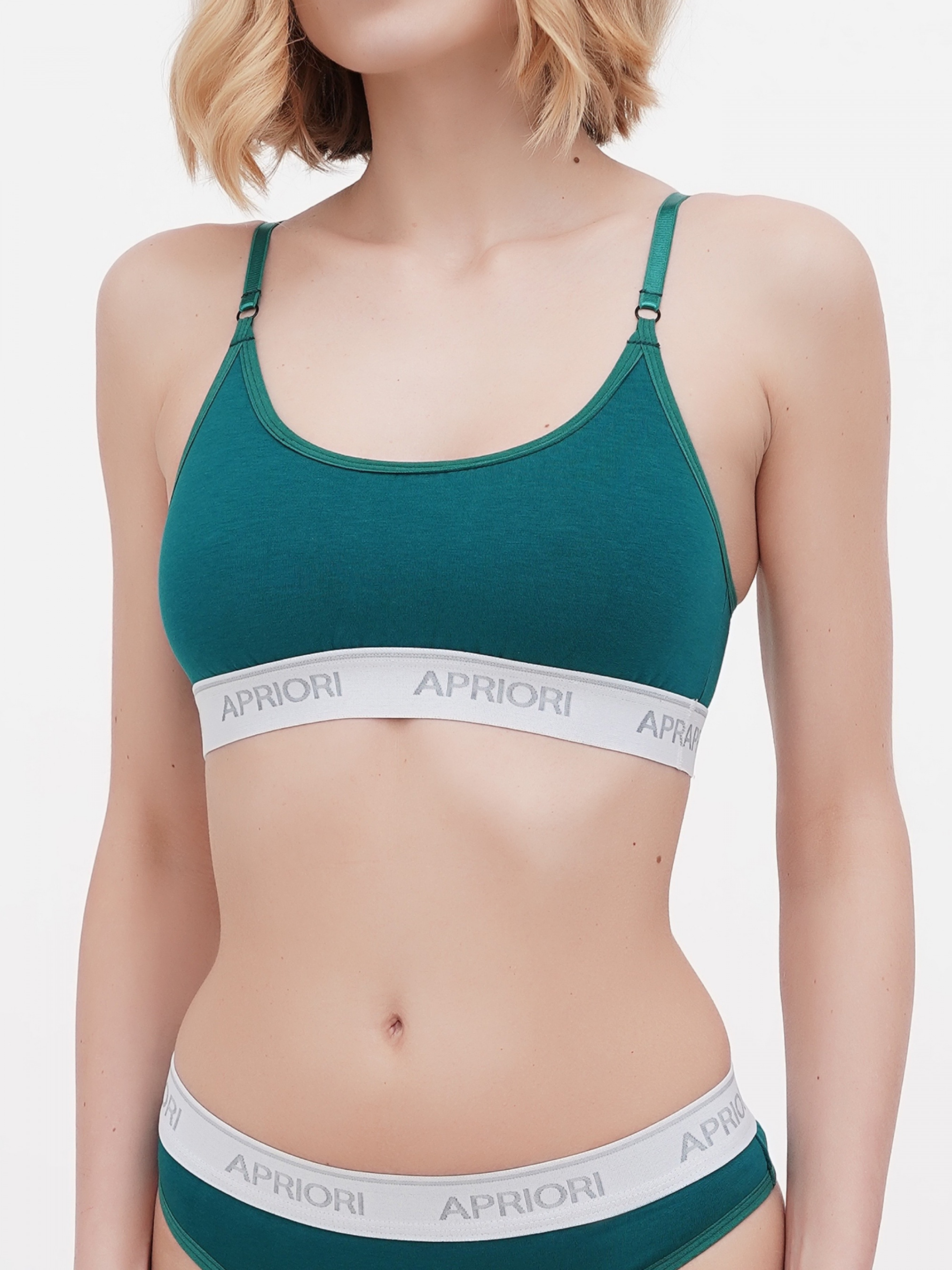 Бралет - бюст у вигляді топу на тонких, регульованих бретельках, створений спеціально для тих, хто хоче бути в тренді сучасного життя, хто цінує свободу та комфорт. Подарує відчуття легкості і свободи рухів! Передня частина виготовлена з подвійної тканини, має підтримуючий ефект, завдяки широкій еластичній резинці, яка розміщується під грудьми і при цьому відмінно фіксує бюст. Тонкі бретелі з регуляторами, для комфортної посадки. Ідеальний для щоденного використання та активного способу життя. Можна використовувати як самостійну річ у гардеробі в поєднанні з джинсами або спідницею із завищеною талією. Склад: 95% бавовна 5% еластан М'яка чашка Регульовані бретелі М'яка еластична брендована гумка Apriori Машинне прання