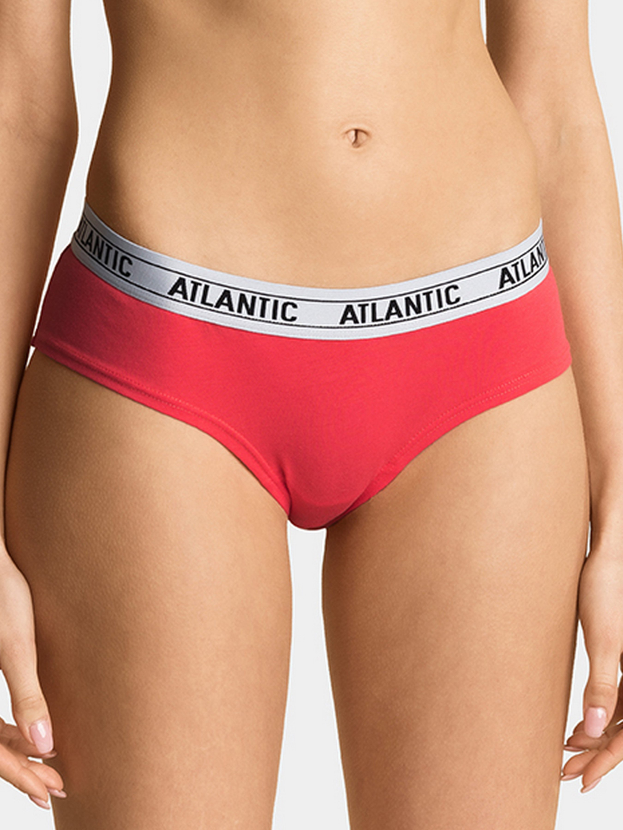 Набір жіночих трусів Atlantic. У наборі однотонні труси моделі Хіпстер наступних кольорів: кораловий, жовтий, блакитний. Модель виконана у спортивному стилі. Для неї характерна занижена талія із широкою зовнішньою гумкою з написом ATLANTIC та середня ширина бічної частини. Нижня білизна виготовлена з м'якої та приємної на дотик бавовни у поєднанні з еластаном. За рахунок матеріалу та форми труси ідеально прилягають до тіла та забезпечують максимальний комфорт у використанні. Основні характеристики: ідеально на кожен день чудово сідають по фігурі м'який і приємний на дотик матеріал забезпечення максимального комфорту із зручною широкою зовнішньою гумкою