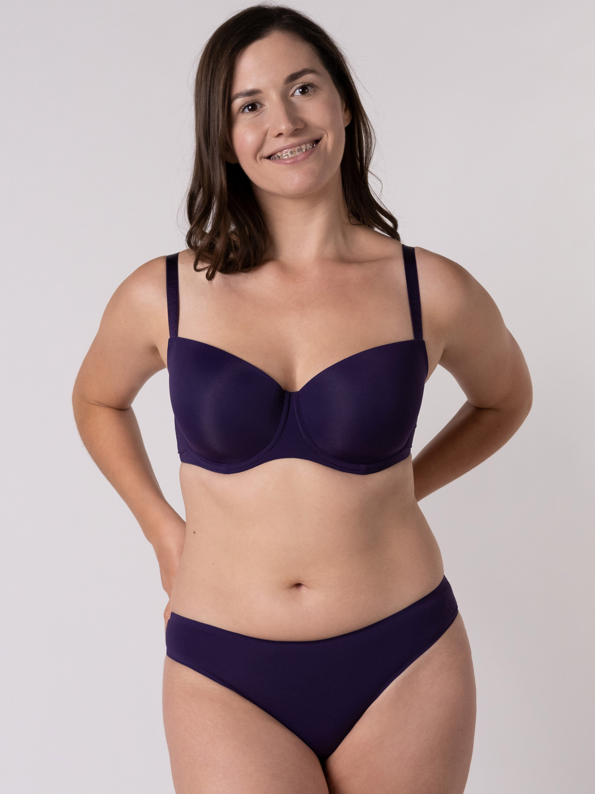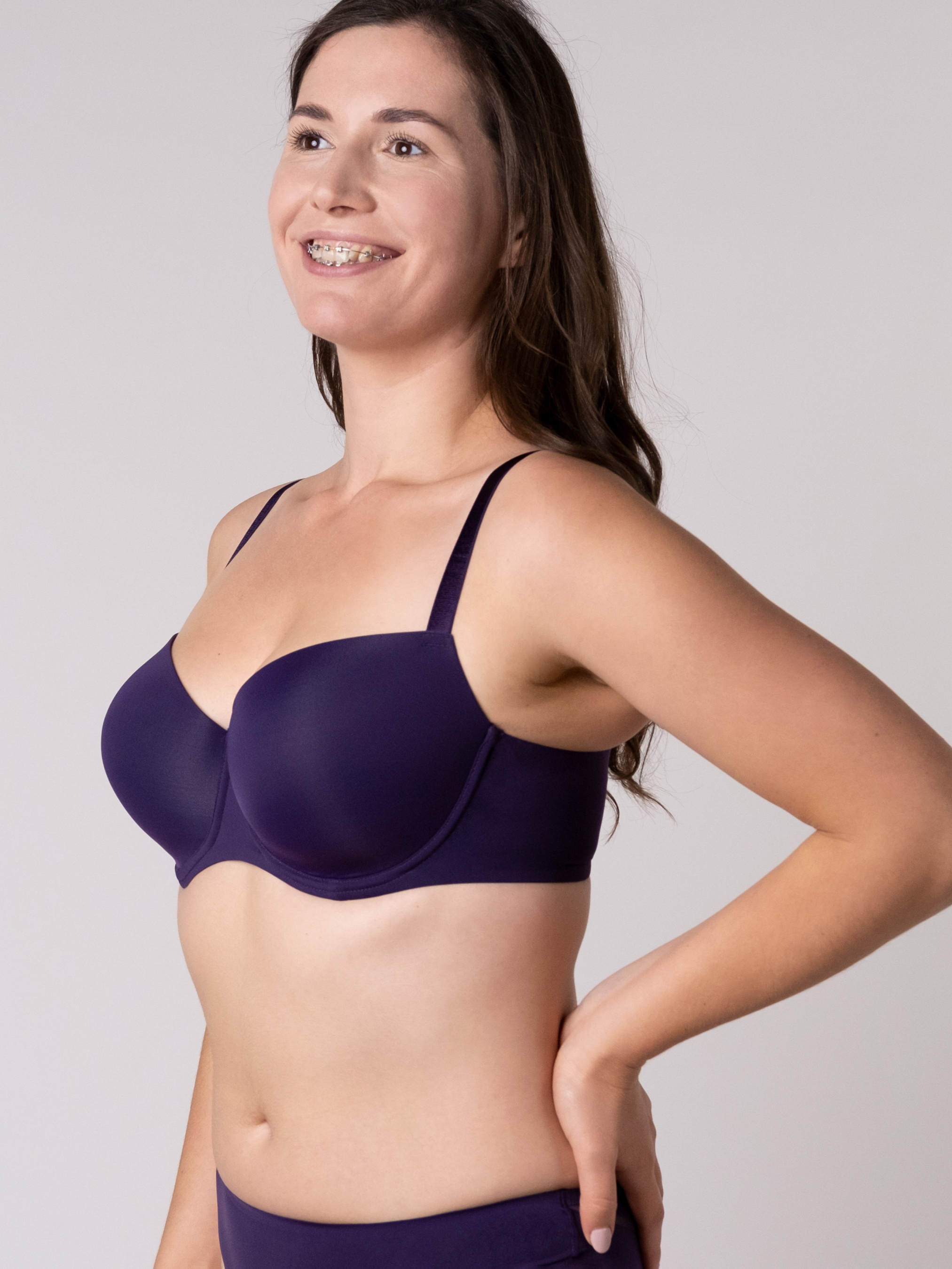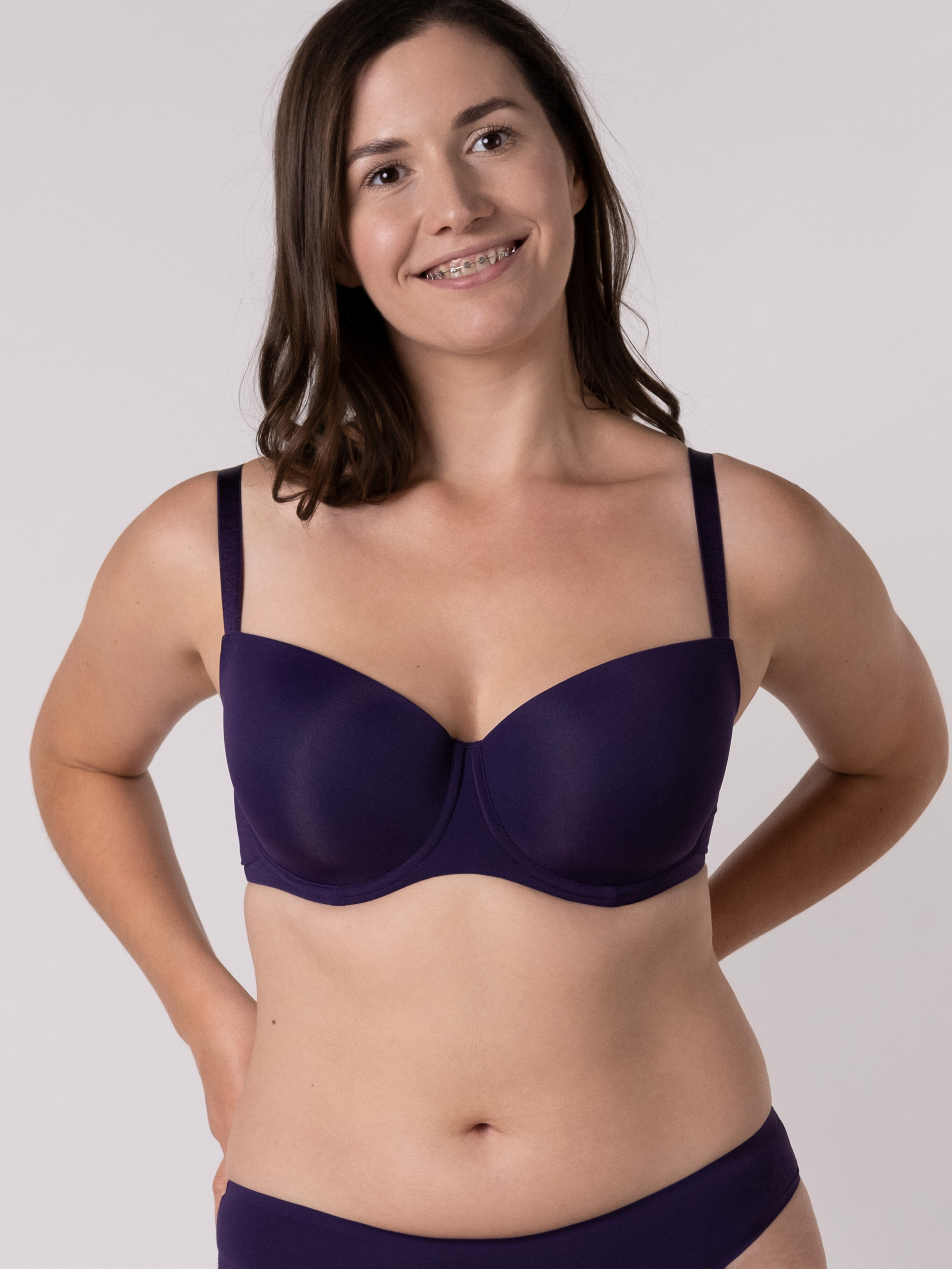 Бра з глибокою формованою чашкою; Мікрофібра на лицьовій частині дозволить бра бути непомітним під одягом, а м'яка бавовна зсередини чашки надасть комфорту під час щоденного носіння; Безшовний пояс бра виконаний з мікрофібри, в його краях прихована еластична тасьма, а всі з'єднуючі шви оброблені клейовим методом, що дозволяє шкірі дихати, а бра — не залишати сліди на тілі; Маєчний тип кріплення бретелей правильно розподілить навантаження та забезпечить комфортну підтримку грудей; Бретелі регулюються згідно росту та особливостей грудей, є можливість застібнути 3-ма способами: Х-подібно, через шию та звичайним способом; Металева фурнітура в тон кольору.