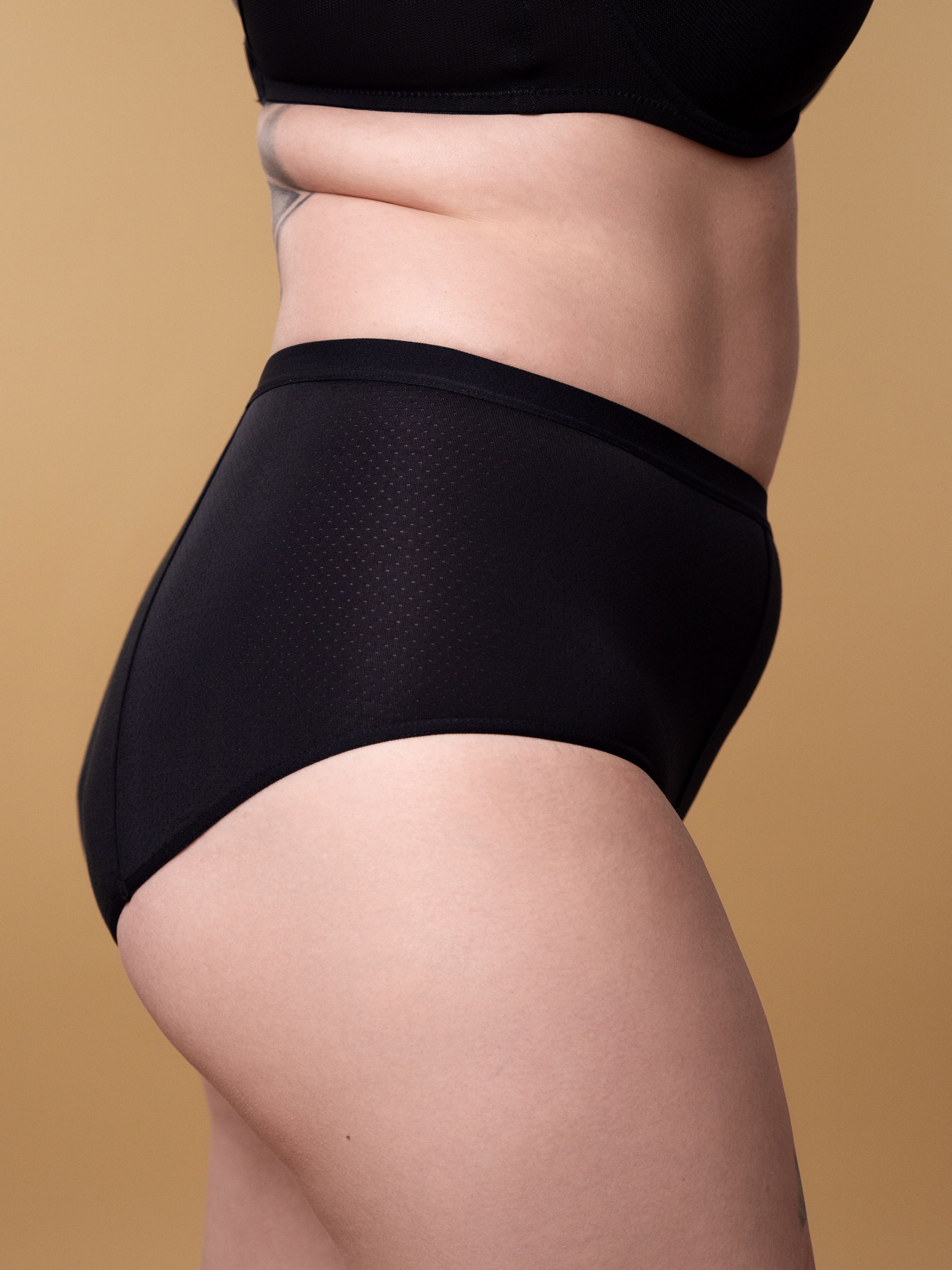 Трусики мають відхилення від розмірної сітки, обирай на 1 розмір менші. Поглинання: ● ● ● - Труси сліпи з високою посадкою – додатковий рівень захисту під час менструації; - Трусики декоровані боковими вставками з перфорованої мікрофібри для зручної посадки та адаптації трусів під різні фігури; - Центральна вставка виконана з подвійного бавовняного полотна для більш щільної фіксації та кращого прилягання до тіла; - Всі краї трусиків оброблені вузькою еластичною резинкою, яка забезпечує кращу фіксацію білизни; - Пояс трусиків виконаний із широкої еластичної резинки, що не перетискає живіт, забезпечуючи комфорт під час менструації; - Ластовиця трусиків тришарова, має ребристу поверхню та може вбирати до 20 мл рідини. Cклад: - Полотно: 93% бавовна, 7% еластан; - Мікрофібра: 76% поліамід, 24% еластан; - Ластовиця: 91% бавовна, 9% еластан.
