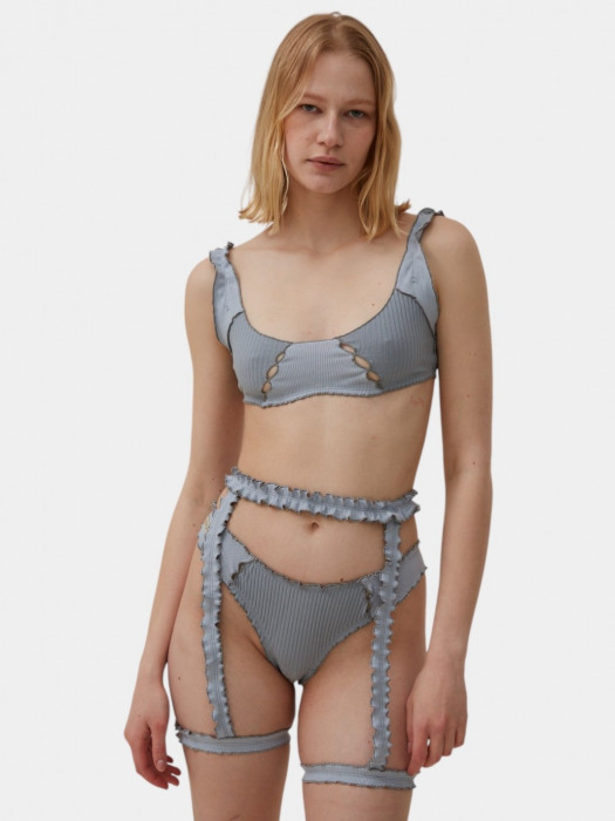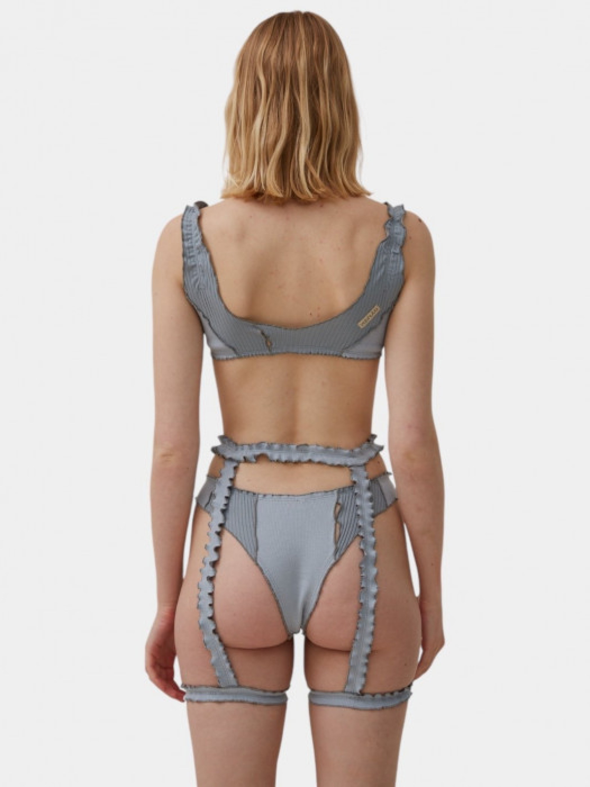 Танга, виконані в драпованому стилі з декоративними стяжками та хвилями. Два види рубчика та деталі ручної роботи підкреслюють його оригінальність. Виготовлено з екологічно чистої м’якої бавовни, сертифіковане за стандартом ISO. Рекомендується лише ручне прання при температурі до 30°.