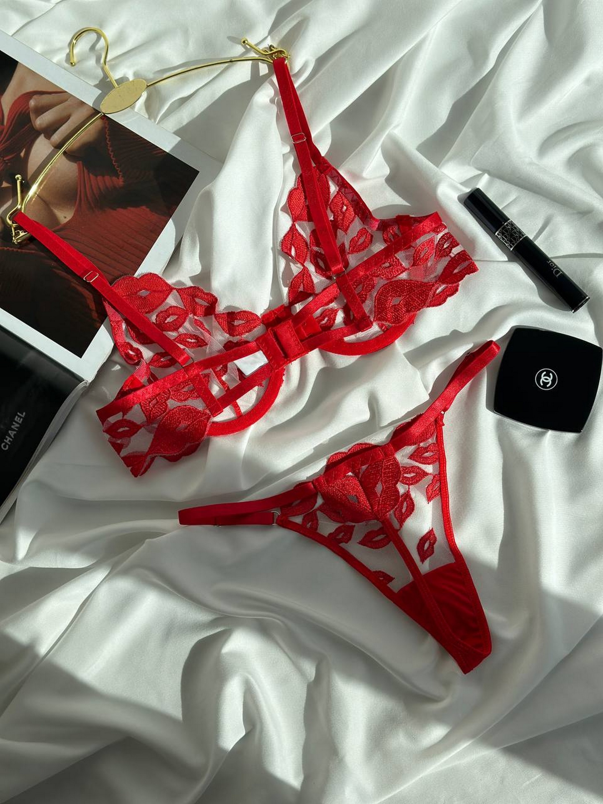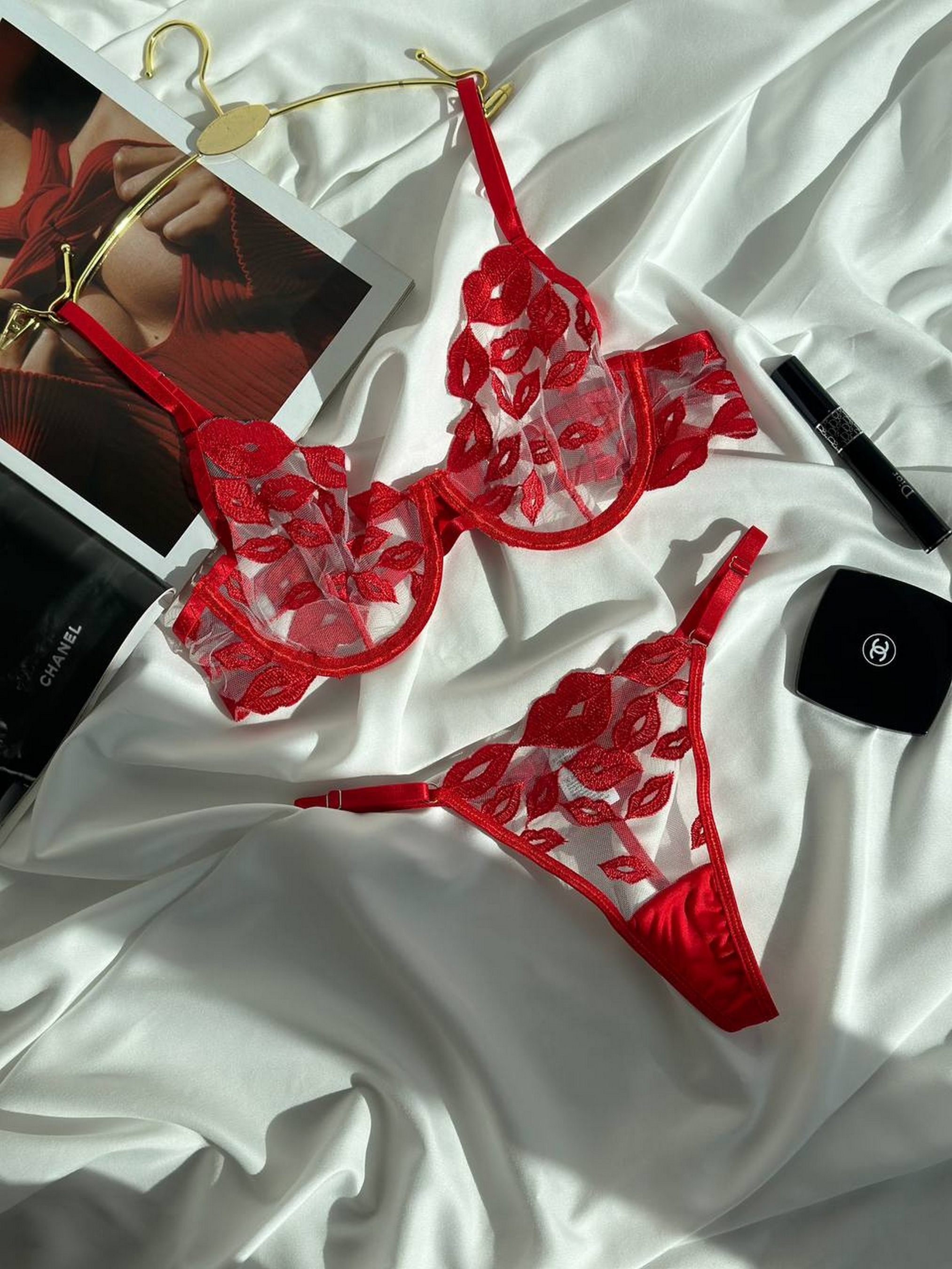 Комплект білизни жіночий (бюстгальтер, трусики) Nova Vega. Спокусливий червоний комплект з вишитими поцілунками. Бюст на кісточках. Якість матеріалу ТОП, тканина італійська сітка з вишивкою. Розмірна сітка: S: груди 84-89, стегна 86-94 М: груди 89-92, стегна 93-98 L: груди 93-97, стегна 97-106 XL: груди 97-102, стегна 106-112 Товар не підлягає поверненню або обміну.