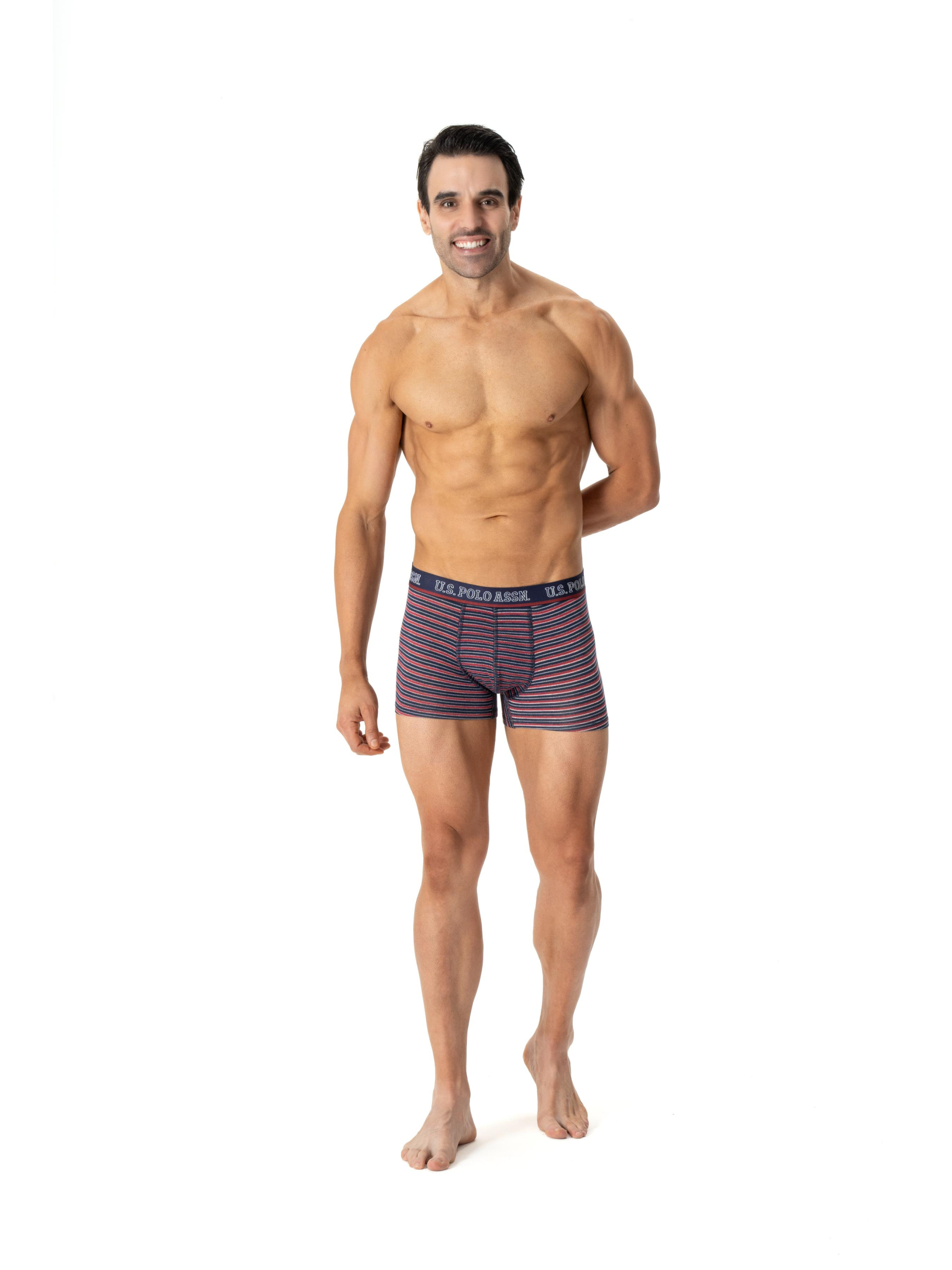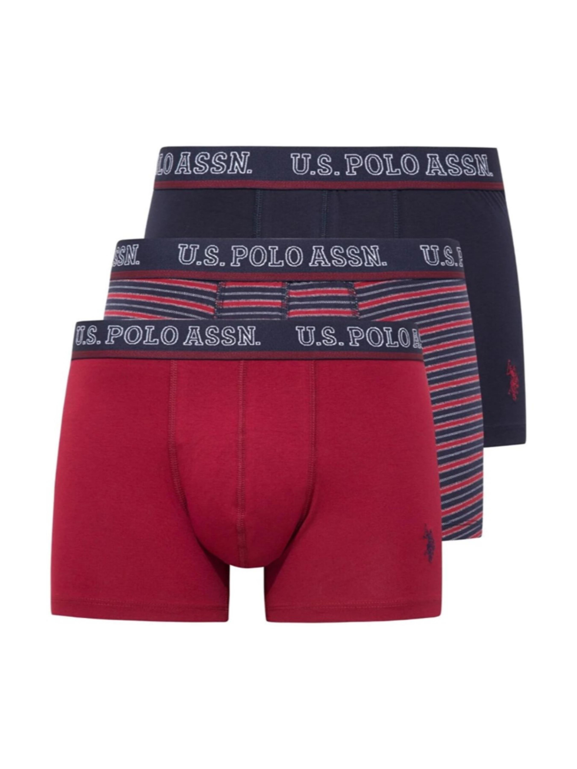 Набір (3 шт) чоловічих трусів-боксерів US.POLO.ASSN. з плоскими швами. Витриманої анатомічної форми. Колір : Темно-синій, бордовий, принтований. Мають широку брендовану резинку. Модель виготовлено з високоякісних матеріалів, з підвищеною еластичністю, без бокових швів, що забезпечує комфорт під час повсякденного носіння.