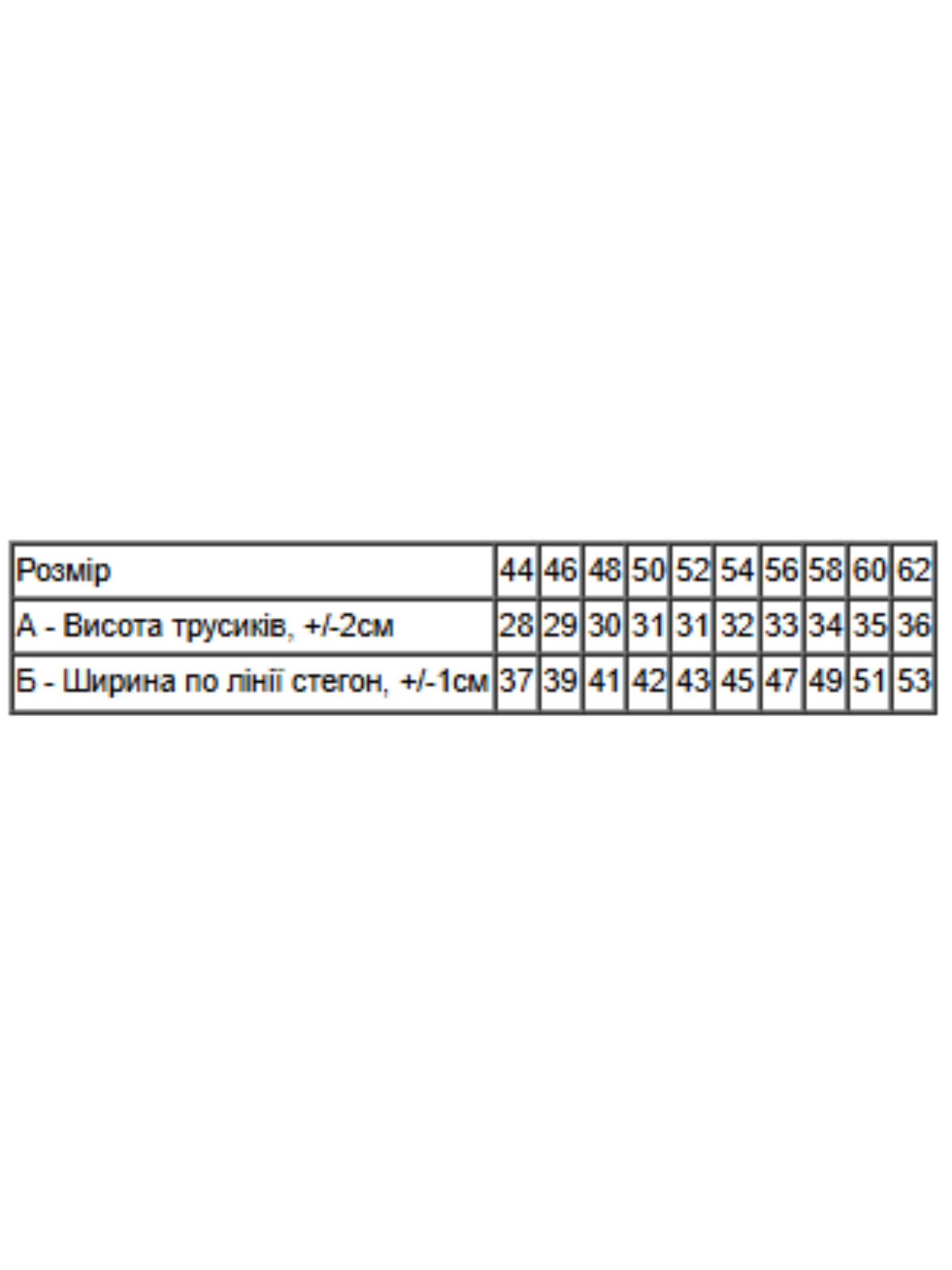 Полотно: кулір однотонний Склад полотна: 100% бавовна Розмір: 44-62 Жіночі труси – ідеальний вибір для комфорту та елегантності щодня. Виготовлені з м’якого та дихаючого матеріалу, ці труси забезпечують тривалий комфорт і підтримку. Ергономічний дизайн і еластичний пояс гарантують відмінну посадку без відчуття дискомфорту. Труси підходять для будь-якого випадку, від повсякденного носіння до спеціальних подій. Доступні в різних розмірах, вони легко поєднуються з будь-яким гардеробом, даруючи вам відчуття впевненості та стилю протягом усього дня.