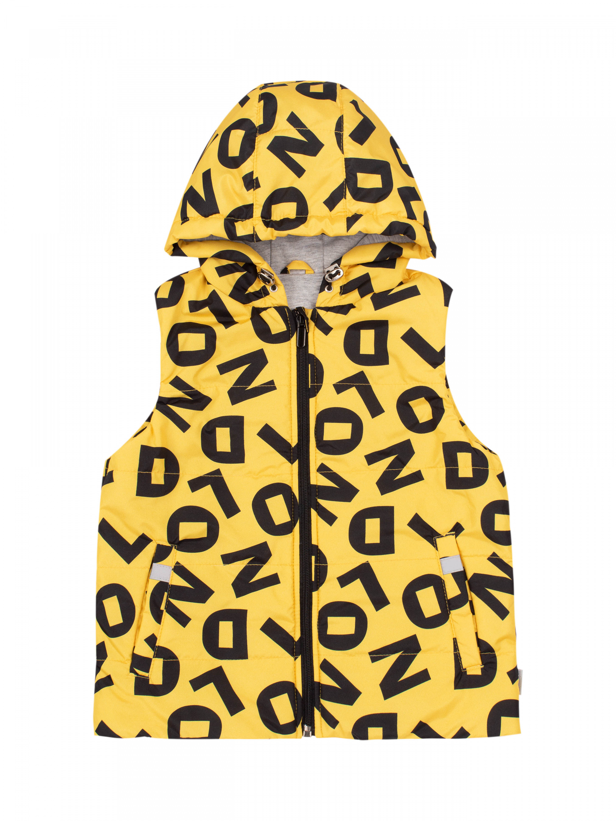 Жилет для хлопчика демісезонний, верх з водовідштовхувальної плащівки, підкладка бавовняна. Вся модель зшита на утеплювачі «Comforlight». Застібається на блискавку, має елемент із захистом підборіддя, вшивні кишені. Капюшон з регулюючим еластичним шнурком на фіксаторах. Прямий крій виробу середньої довжини, на пришивній контрастній підкладці.