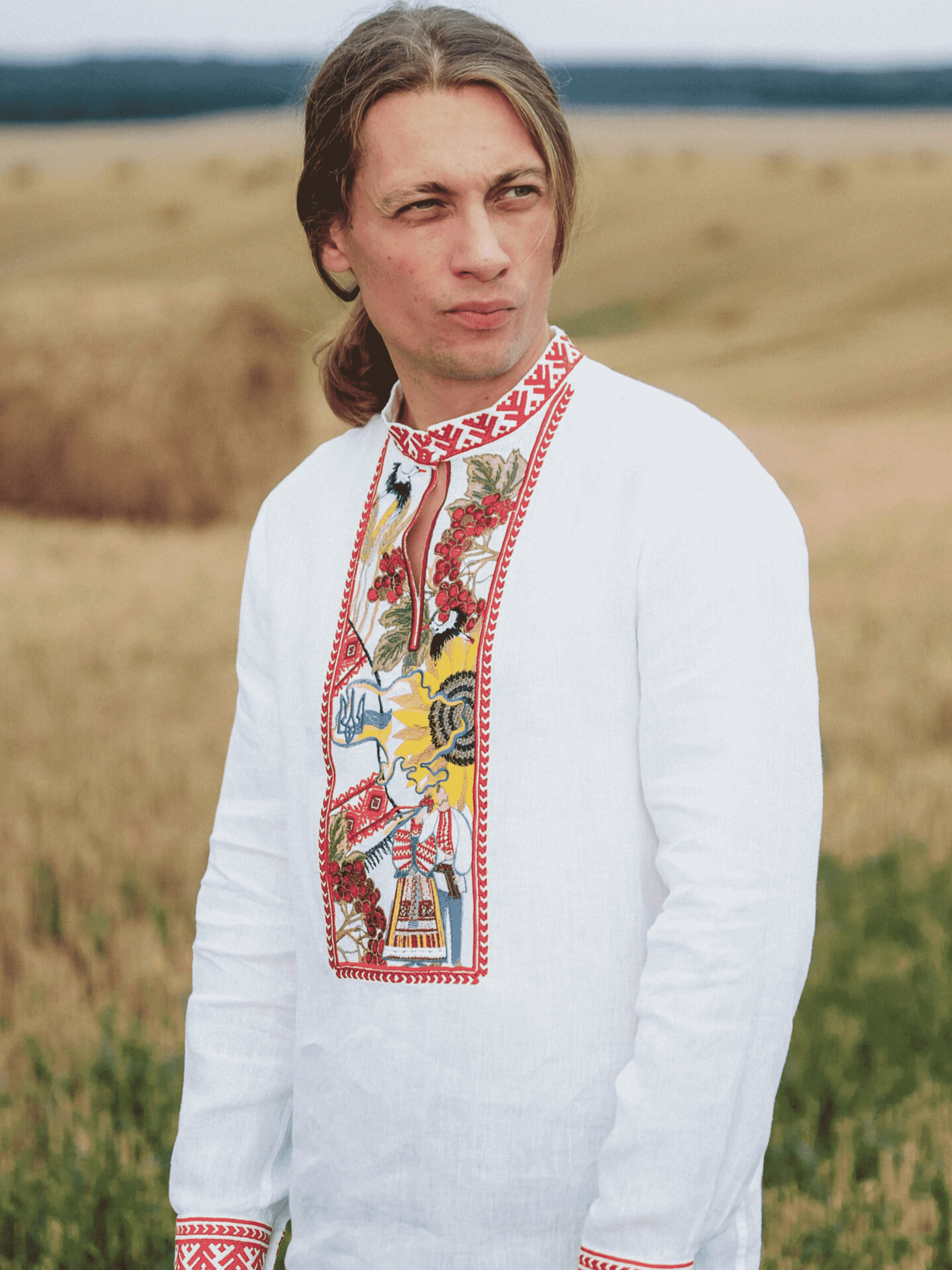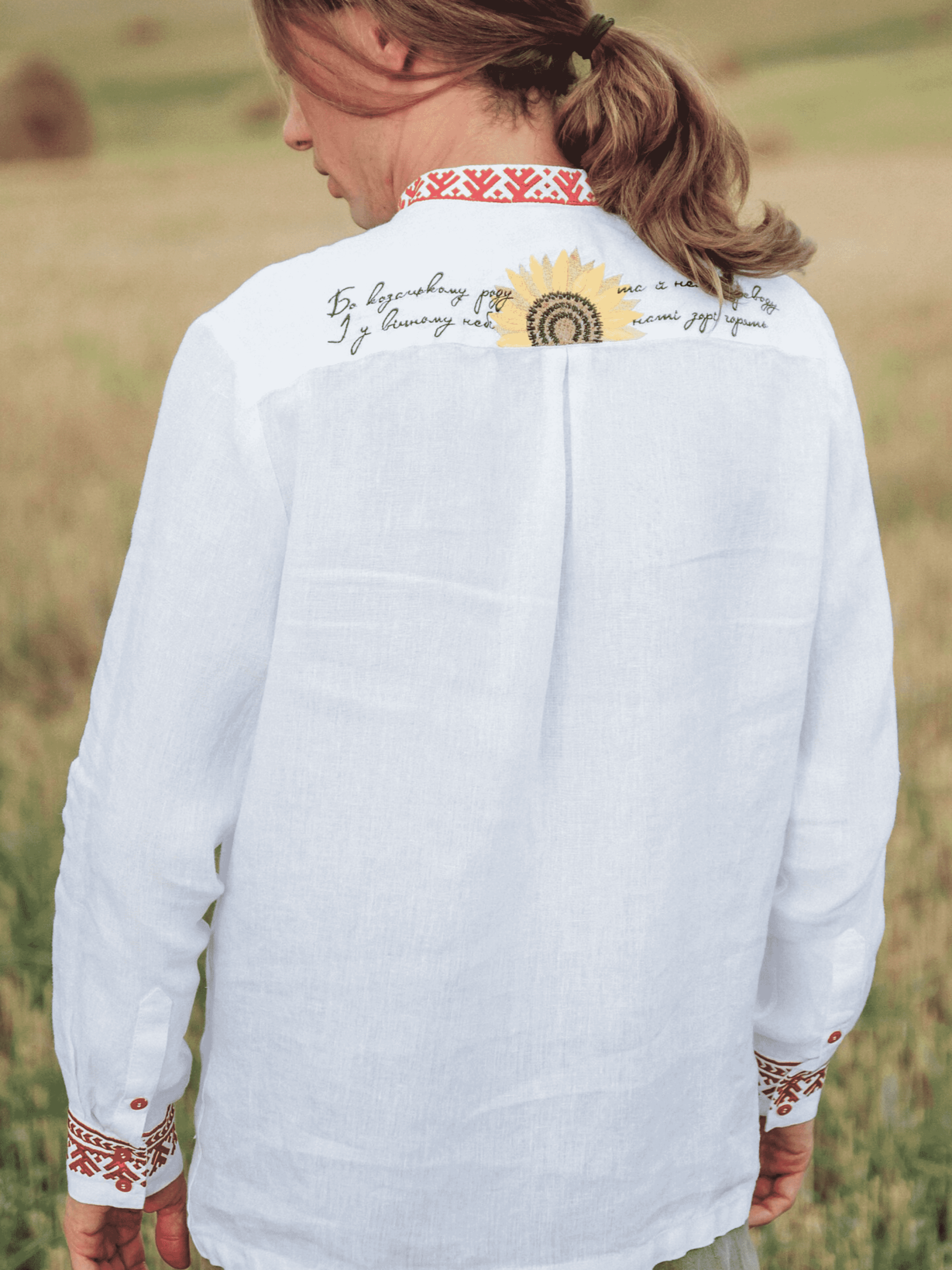 Склад: 55%Льон 45%БавовнаВишита чоловіча сорочка з нової колекції «Я – Україна» – це те, що вам давно було потрібно. Вона огорне ваше тіло та душу цінними спогадами, подарує відчуття значущості та внутрішнього спокою. Сорочка виконана в бленді льону та бавовни, прямим фасоном, виріз горловини круглий, оброблений коміром-стійкою, рукав довгий, прямий, манжети мають застібку у вигляді гудзиків. Вишивка розмішена на пілочці, спинці, манжетах, комірі, вона несе глибокий символізм – віддзеркалення внутрішнього світу українців, бажання зберегти в пам’яті теплі спогади про щось особливе, близьке серцю, щось, що непідвладне часу. Кожен українець зможе віднайти себе в цих змістовних візерунках – у любові до рідних, чи в єднанні з неосяжною природою улюблених місць або ж в силі народних традицій. «Бо козацькому роду та й нема переводу, і у вічному небі наші зорі горять» – ці вишиті слова гартують характер, надихають та мотивують. Стилізуйте вишиванку зі зручним для вас одягом, вона завжди буде актуальною.