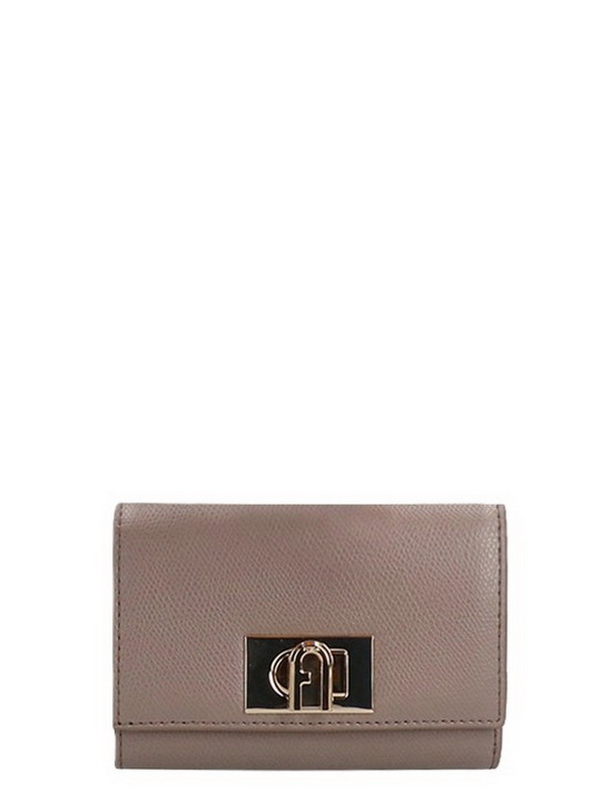Гаманець Furla 1927 M Compact Wallet. Закривається на замок Turn Lock. Однотонна підкладка з віскози. Відділення для банкнот і чеків, відділення для монет на застібці. Полірована металева фурнітура золотистого кольору Розмір: 13 x 9 x 2 см.