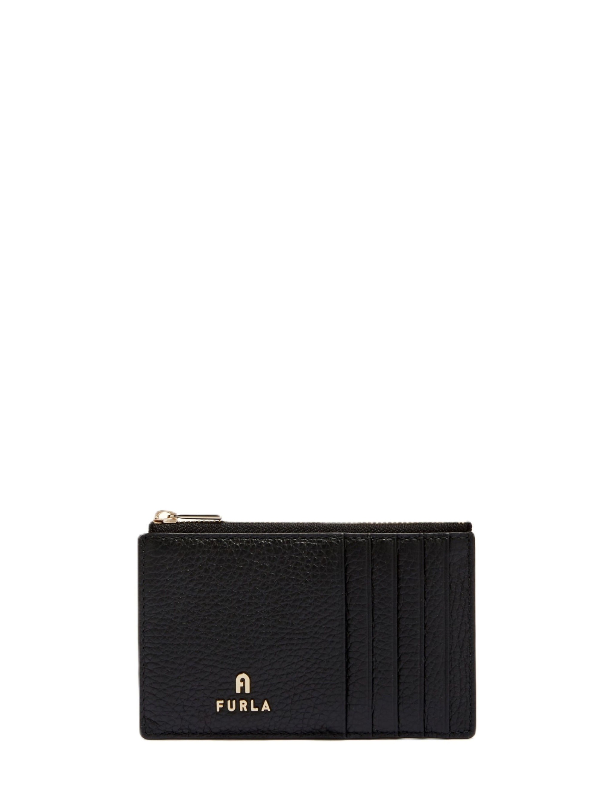 Елегантний кардхолдер Furla Camelia з текстурованої шкіри має компактний, тонкий силует, який зручно поміщається в будь-яку сумку. П'ять слотів для кредитних карток спереду та ззаду. Центральна кишеня на замку. Розміри 13х8
