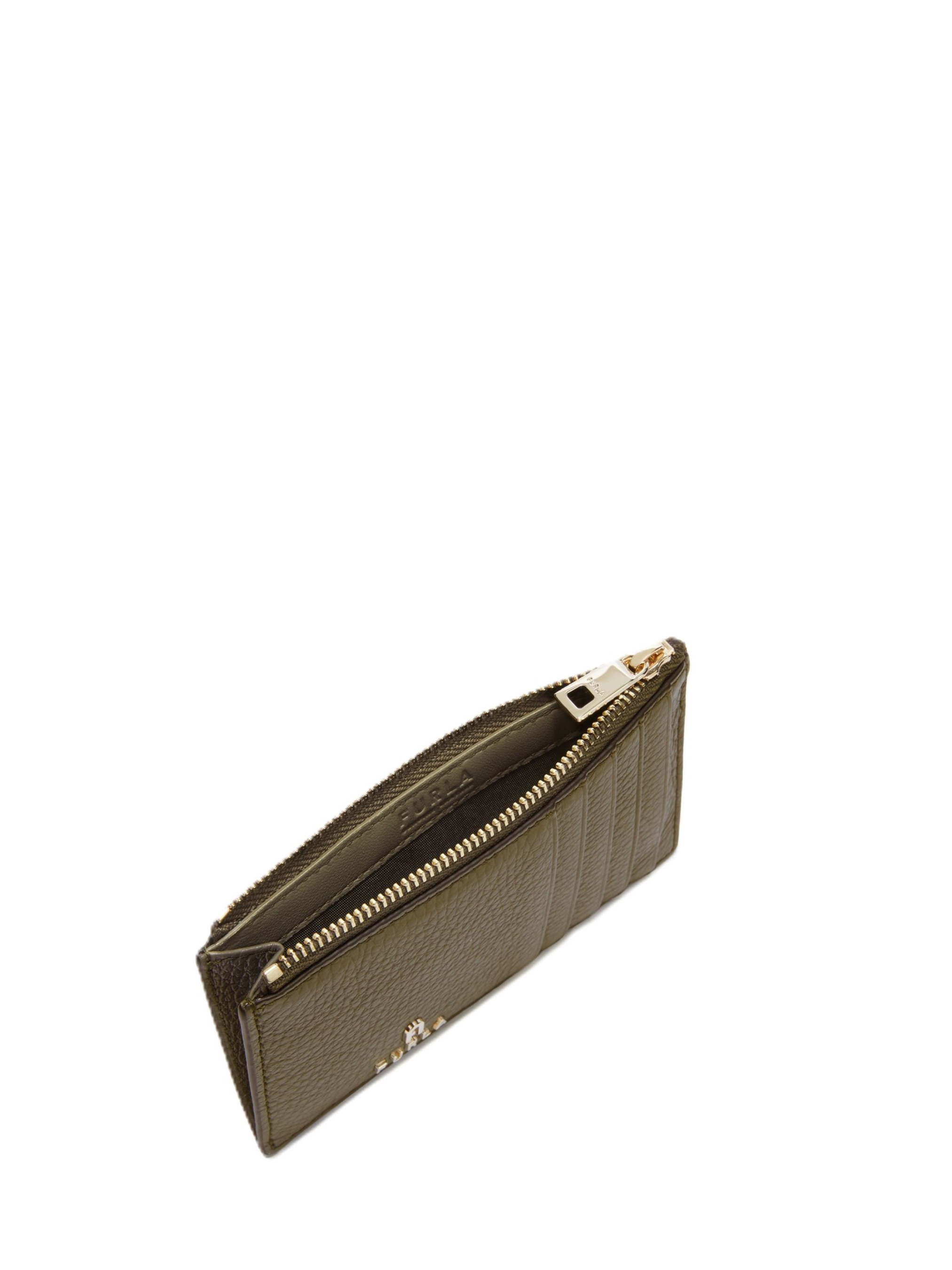Елегантний кардхолдер Furla Camelia з текстурованої шкіри має компактний, стрункий силует, який зручно поміщається в будь-яку сумку.П’ять слотів для кредитних карток спереду та ззаду