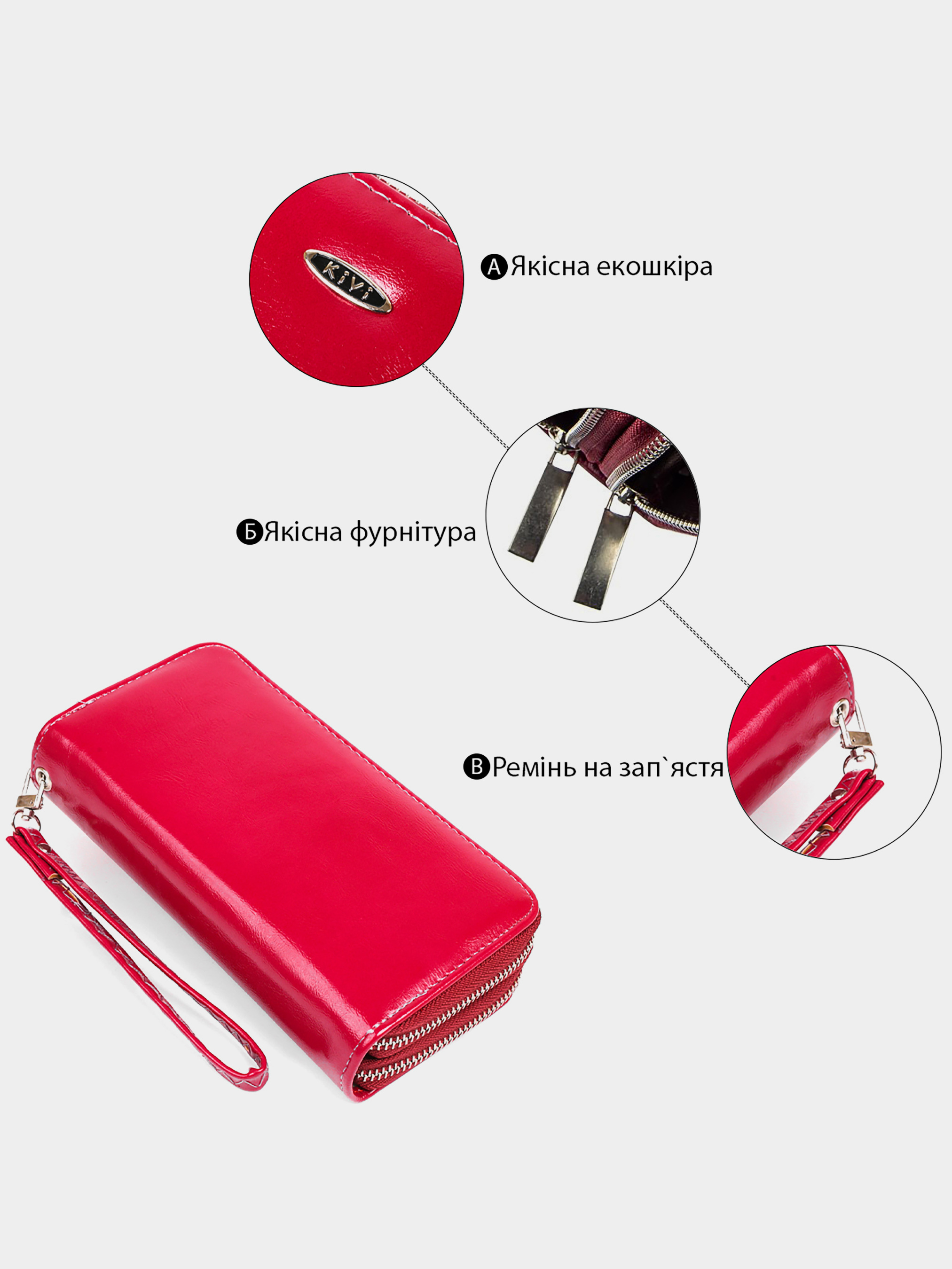 Kivi — бренд, що спеціалізується на виробництві жіночих гаманців та аксесуарів із високоякісної екошкіри. Асортимент продукції включає різноманітні моделі гаманців, зокрема з гладкої та зернистої екошкіри, а також лакові варіанти. Вироби Kivi відзначаються стильним дизайном, функціональністю та доступною ціною.