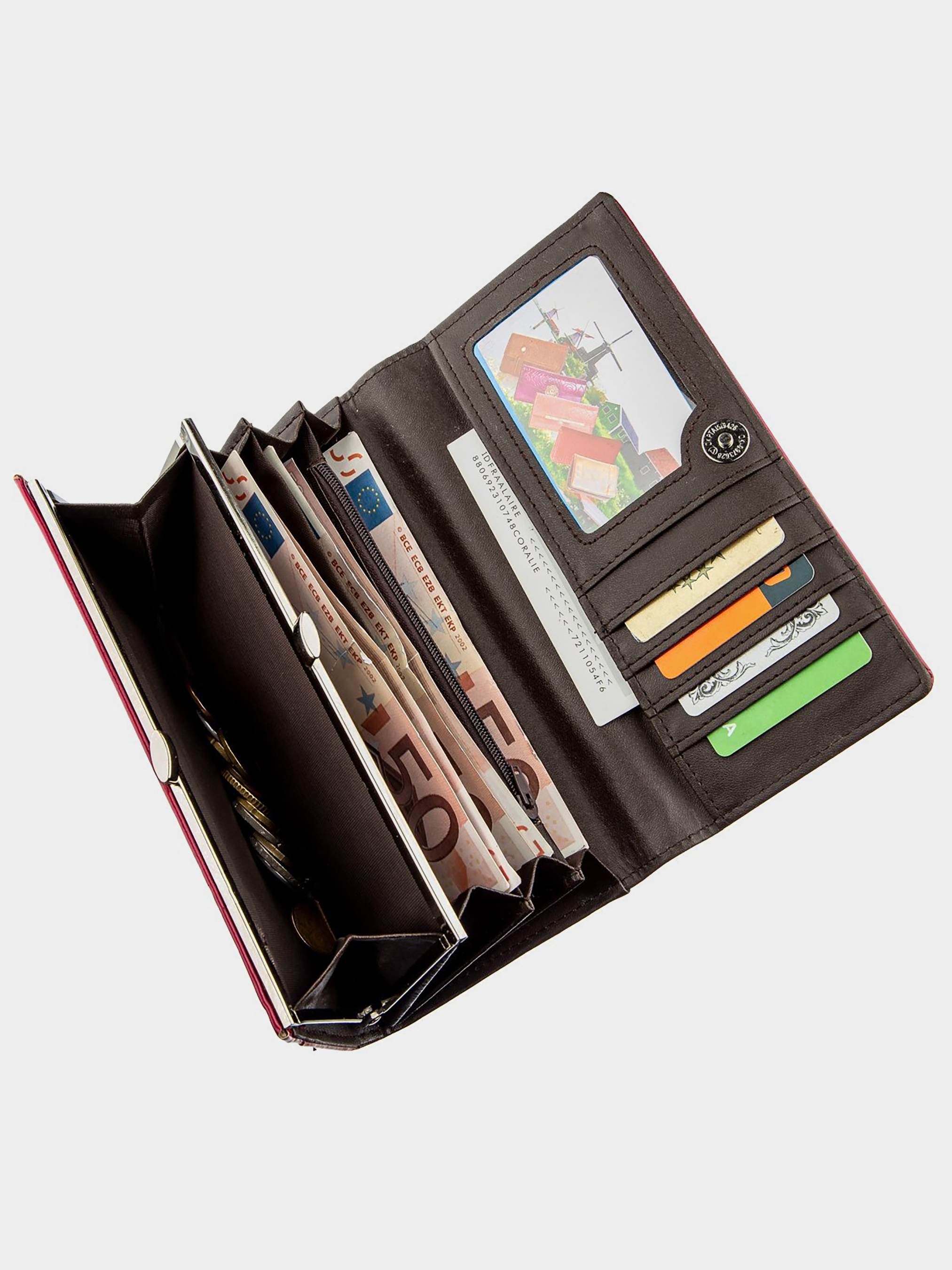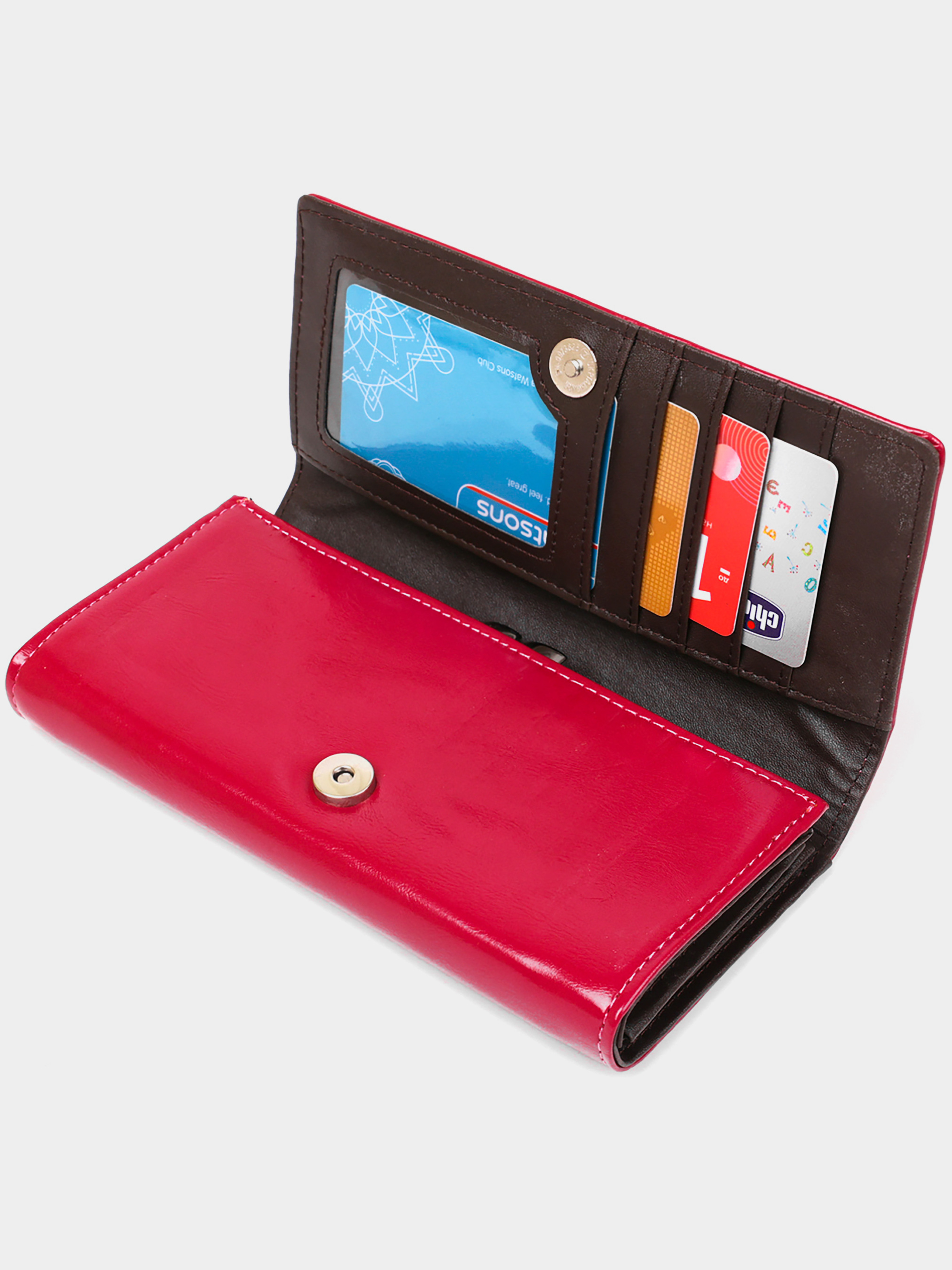 Матеріал: екошкіра; Колір: малиновий; Розміри (ШхВхГ): 9х18,5х3; Країна виробництва: Китай. Особливості: -3 відділення для купюр; -відділення на блискавці; -монетниця на механічній застібці; -5 слотів для кредиток (один з них під прозорою плівкою для фото). Даний малиновий гаманець з екошкіри має 3 зручних відділення для купюр, автономний блок для карток і монетниці з механічним фіксатором. Аксесуар закривається на клапан з кнопкою магнітною. З таким гаманцем вам стає зручніше зберігати в порядку купюри, картки і монети. Його дизайн і колір прекрасно підкреслять ваш смак. Аксесуар легко поміститься в жіночу сумочку. Гаманець стане прекрасним подарунком для близької людини.