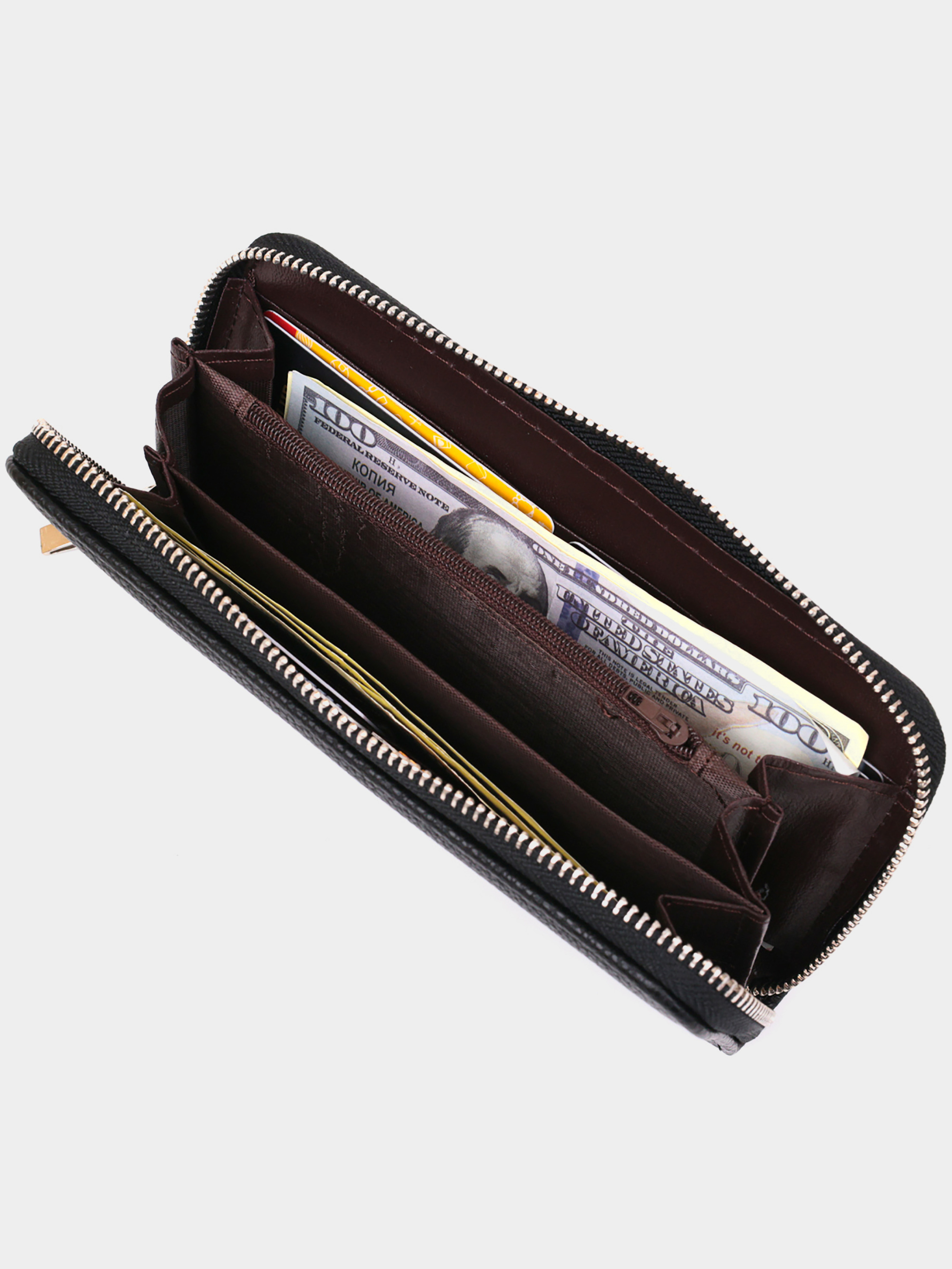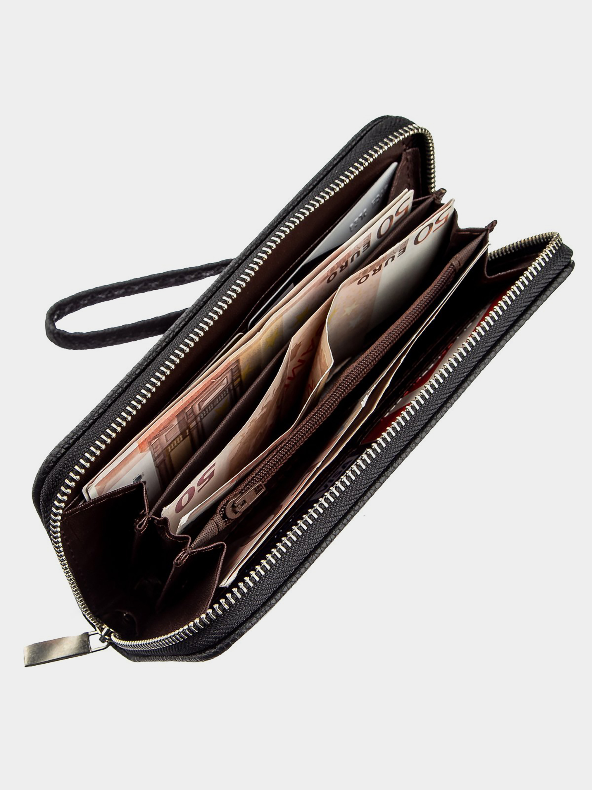 Матеріал: екошкіра; Колір: чорний; Розміри (ШхВхГ): 9х19х2,5; Країна виробництва: Китай. Особливості -3 відділення для купюр; -відділення на блискавці; -2 відкриті кишені під стінками; -8 слотів для кредиток. Гаманець на одне відділення з якісної екошкіри. Аксесуар має дрібне тиснення. Усередині гаманця є ремінець-петелька на зап'ястя. Особливістю є те, що ви можете носити гаманець як в сумочці, так і на зап'ясті. Гаманець горизонтального типу зовсім не вибагливий у догляді і досить довго носиться. Якщо ви шукаєте недорогий, але при цьому гідний гаманець, радимо придивитися до цієї моделі. Вона стане прекрасним подарунком для близької людини. Аксесуар упакований в прозорий пакет.
