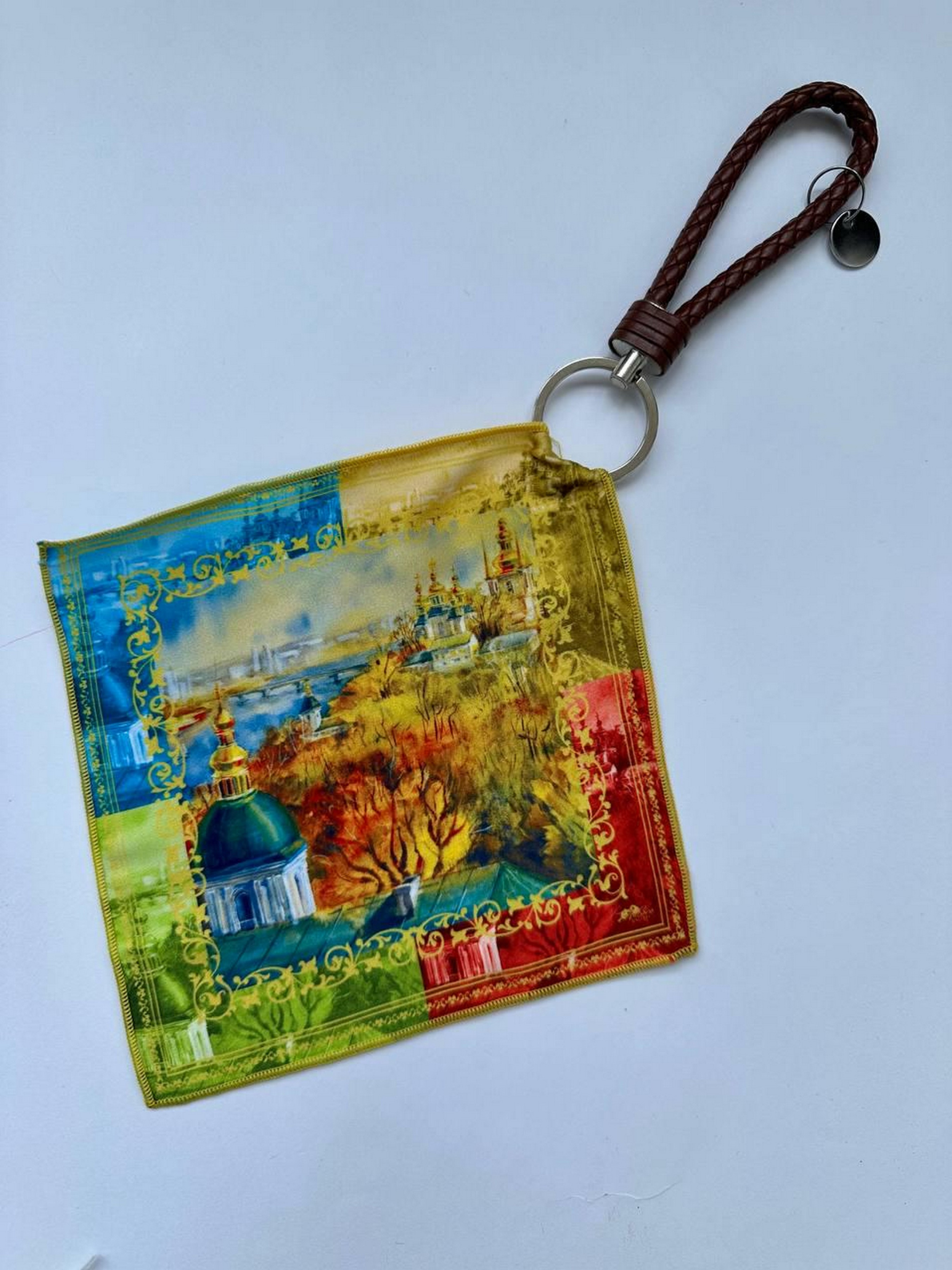 Дизайнерський брелок із хусткою, яскравий унікальний дизайн українського бренда Малюнок не вимивається й не стирається, тканина та матеріали високої якості Можна використати як прикраса для сумки, рюкзака, прикраса на пояс і елемент одягу
