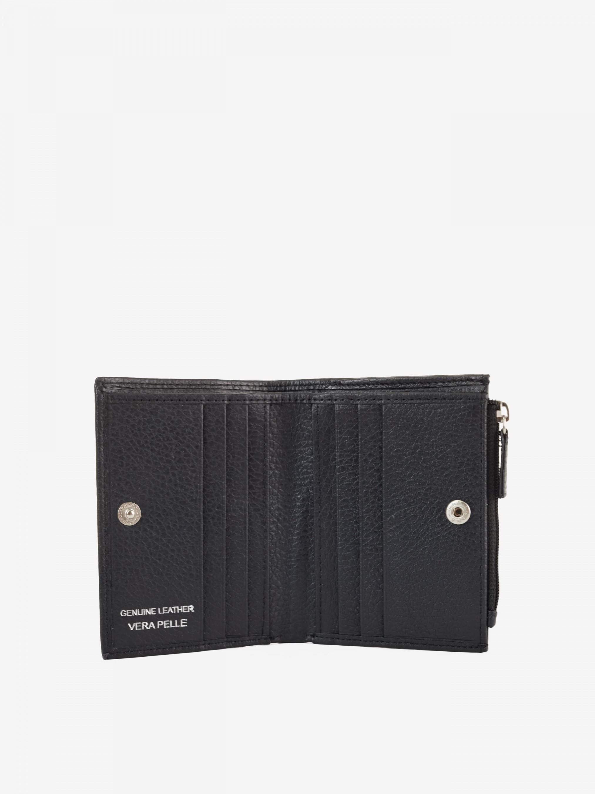 Деталі: - 100% натуральна шкіра флотар - Усередині 2 відділення для готівки, 8 відділень для карток та монетниця на блискавці - Розміри: (Ш x В x Г): 11.5 x 9 x 2 см - Застібка: кнопка, блискавка - Фурнітура сріблястого кольору - Підкладка бавовна