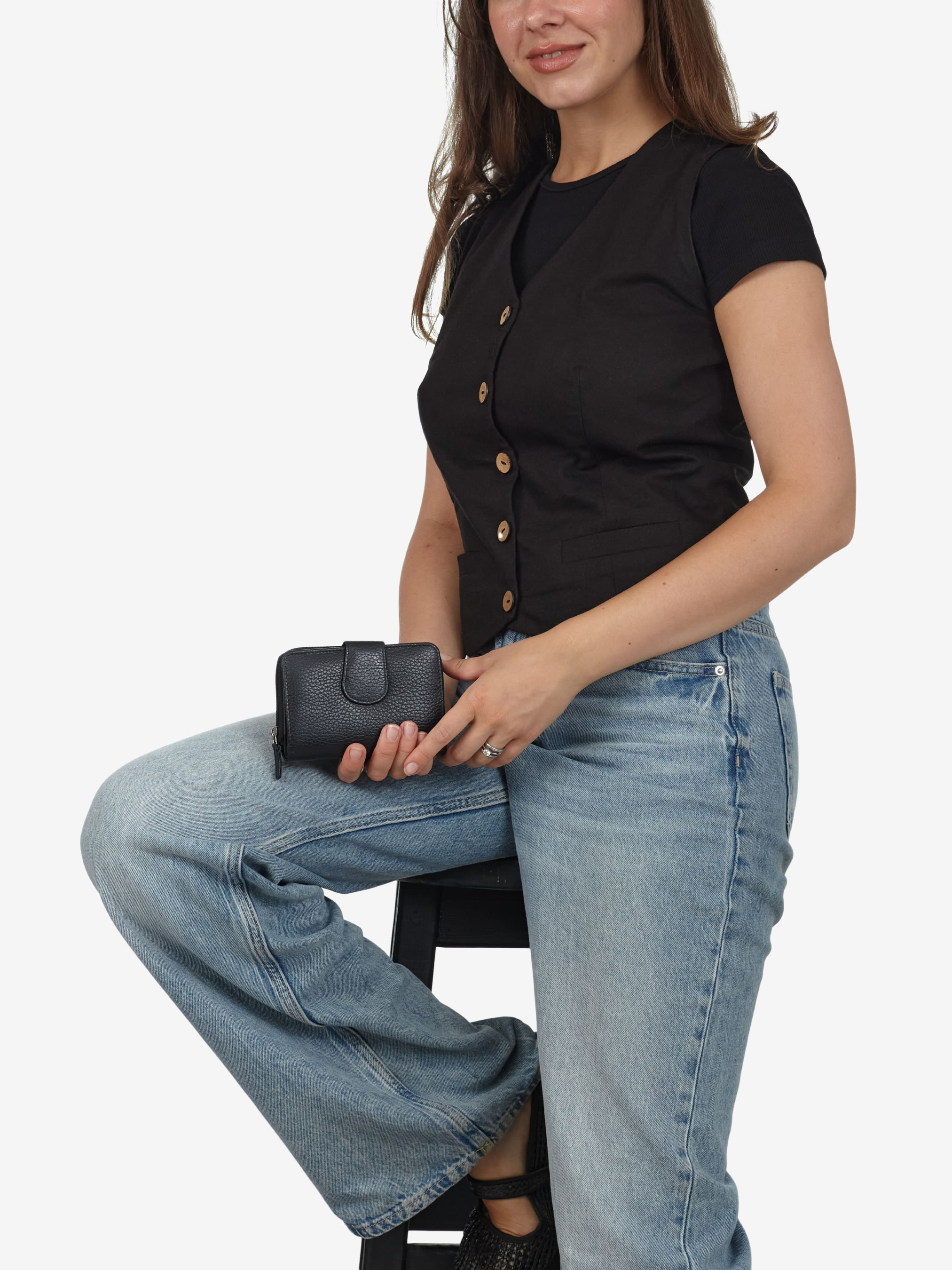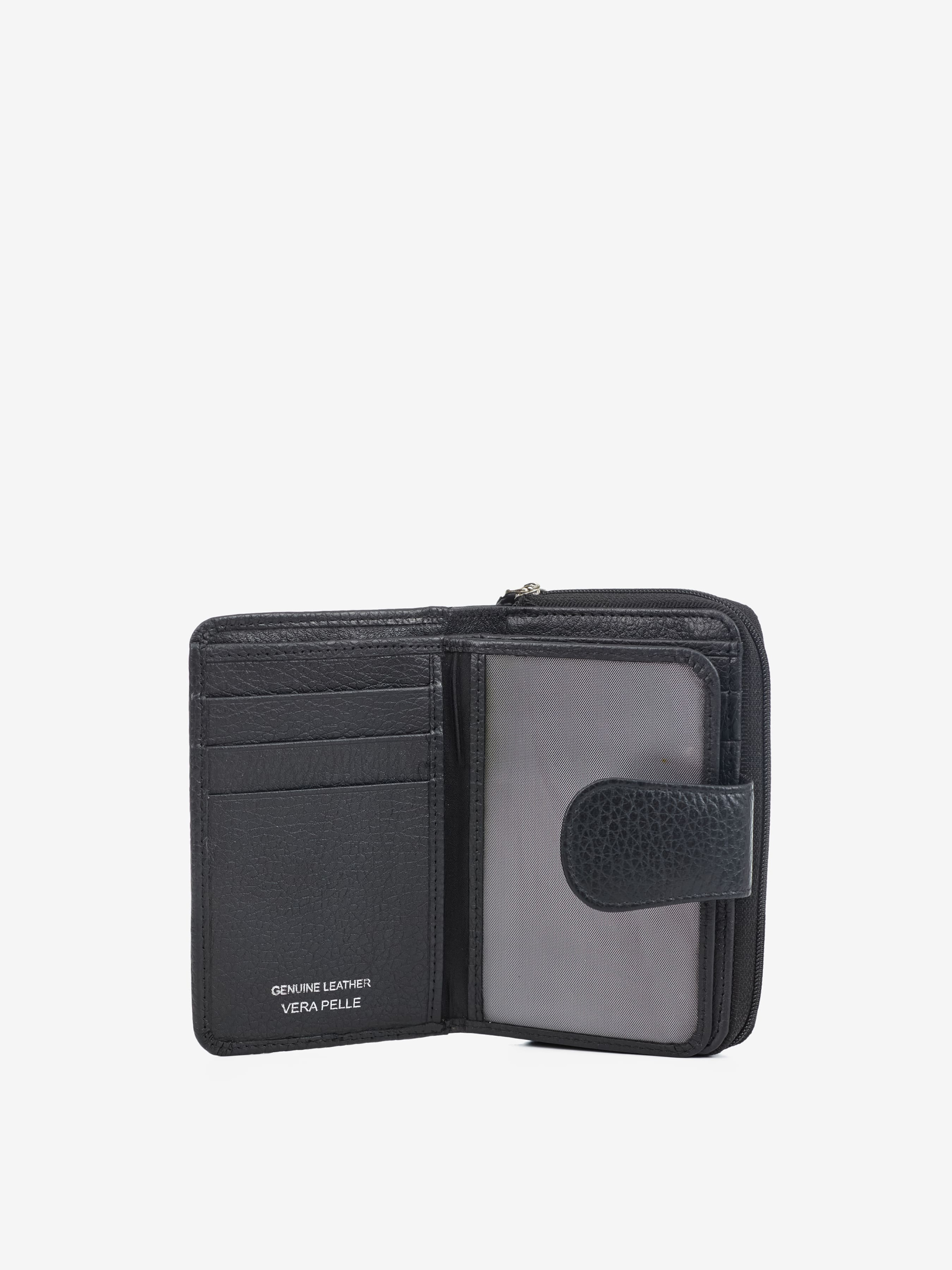 Деталі: - 100% натуральна шкіра флотар - Усередині 1 відділення для готівки, 12 відділень для карток - Позаду монетниця з двома відділеннями на блискавці - Розміри: (Ш x В x Г): 9 x 13 x 3 см - Застібка: клапан на кнопці, блискавка -Фурнітура сріблястого кольору - Підкладка бавовна