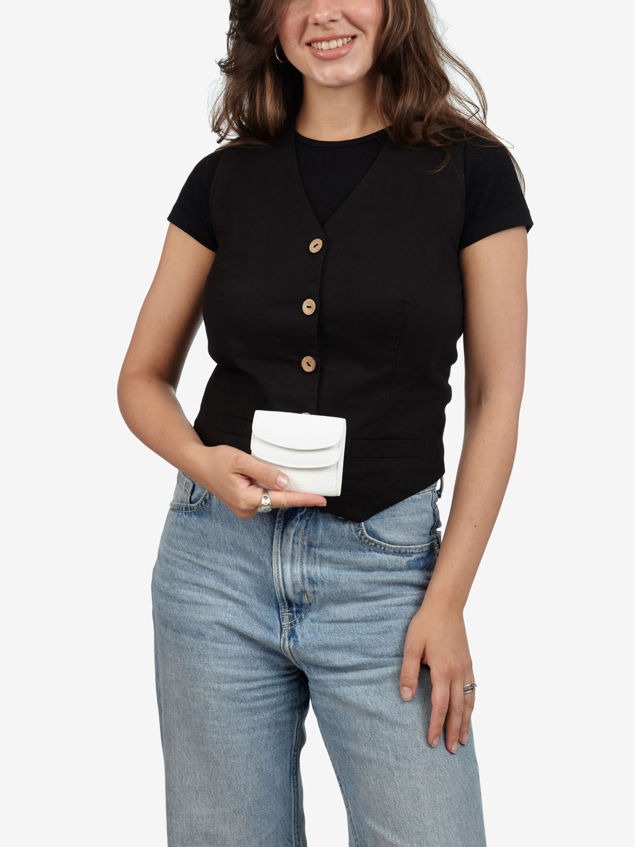 Деталі: - 100% натуральна шкіра флотар - Усередині 2 відділення для готівки, 2 відділення для карток, монетниця на кнопці - Розміри: (Ш x В x Г): 9 x 7 x 2 см - Застібка: клапан на кнопці -Фурнітура сріблястого кольору - Підкладка бавовна