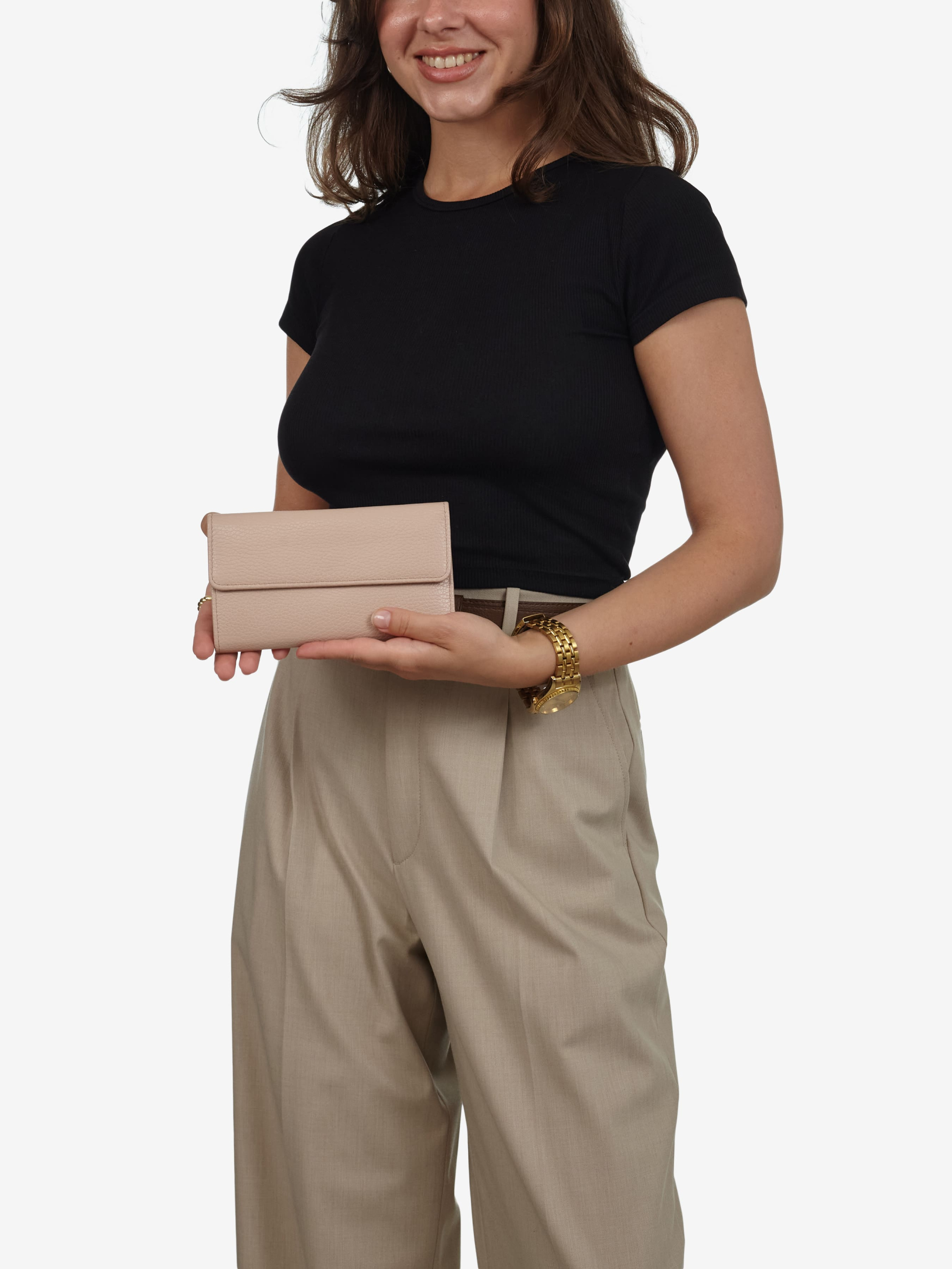 Деталі: - 100% натуральна шкіра флотар - Усередині 2 відділення для готівки на блискавці, 14 відділень для карток та 6 кишеньок без застібки - Розміри: (Ш x В x Г): 17 x 9 x 4 см - Застібка: кнопка -Фурнітура сріблястого кольору - Підкладка бавовна