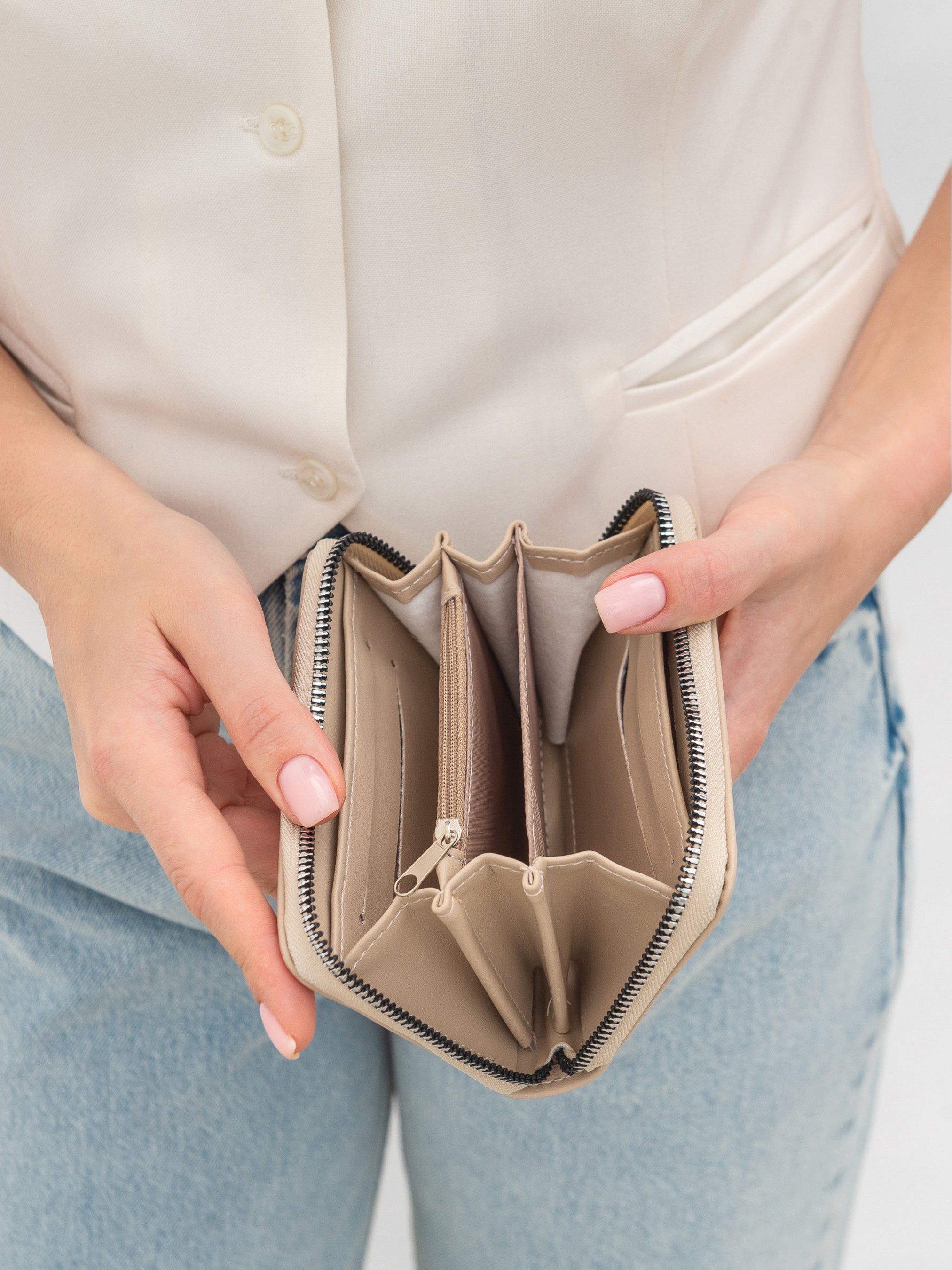 Гаманець на блискавці "Вайле" ROMASHKA Мініатюрний, але дуже місткий гаманець. Зручна модель на блискавці, в якій два відділення і відсіки для карток і монет. Виконаний зі штучної шкіри. Закривається на блискавку. Стильний варіант, який поміститься в будь-яку сумку. Заміри:- Довжина: 14,5 см, Ширина: 9, 5см.