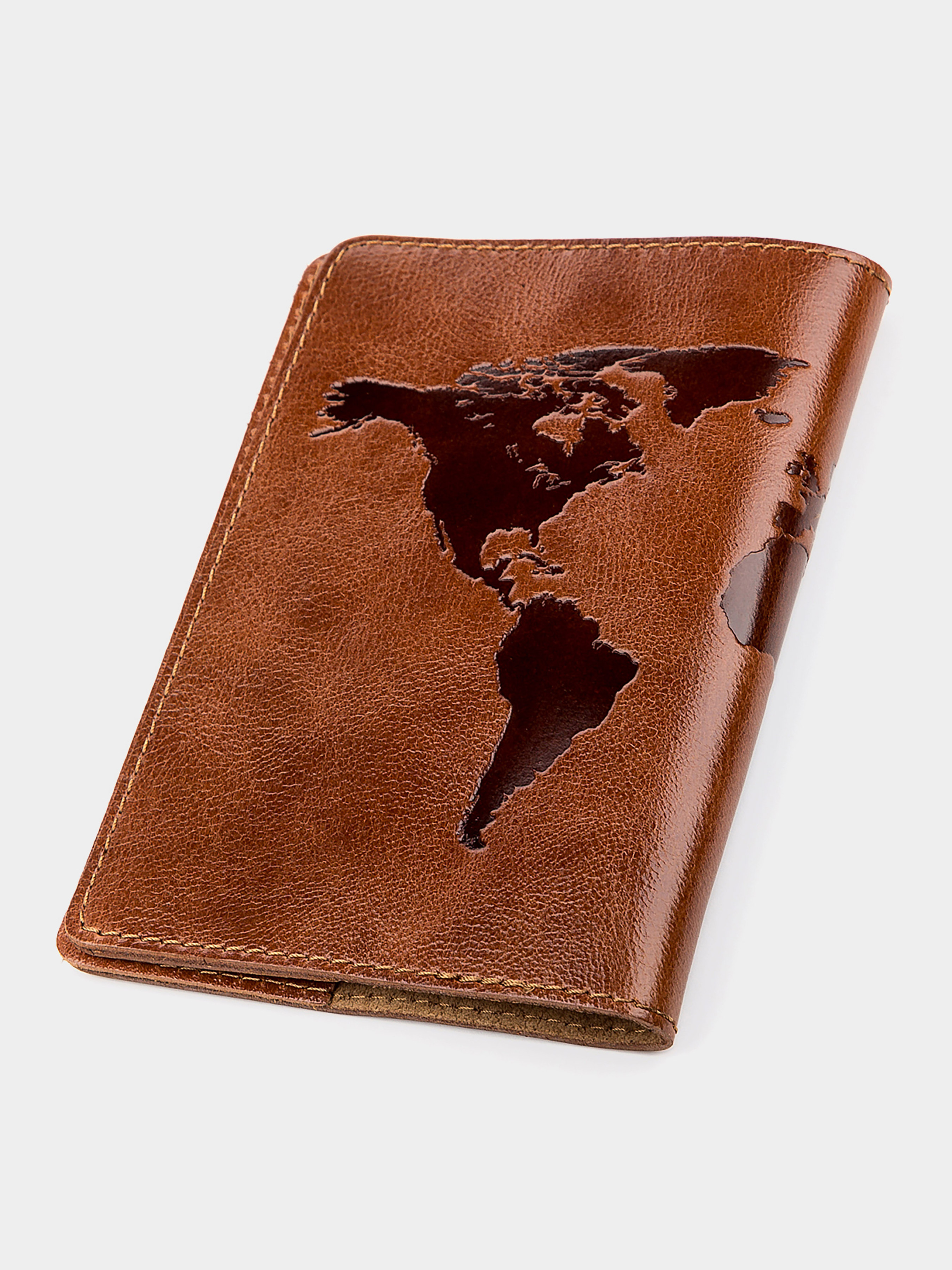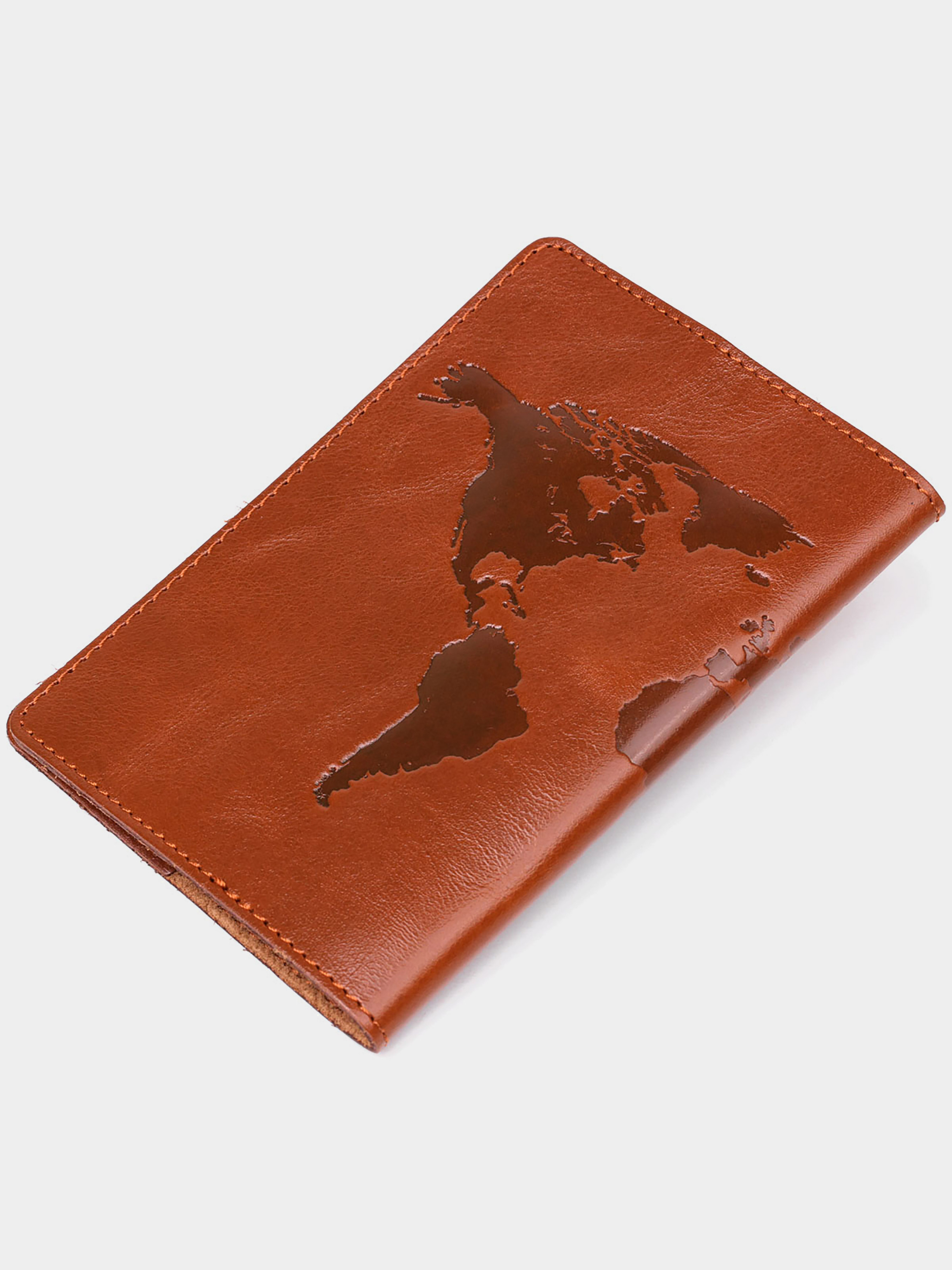 Матеріал: натуральна шкіра; Колір: коричневий; Розміри (ШхВ, см): 9,5х13; Країна виробник: Україна. Зручна і стильна обкладинка на паспорт, коричневого кольору із зображенням карти світу, виготовлена з високоякісної натуральної шкіри. Сучасний висококласний аксесуар, який стане незабутнім подарунком для Ваших коханих та близьких.
