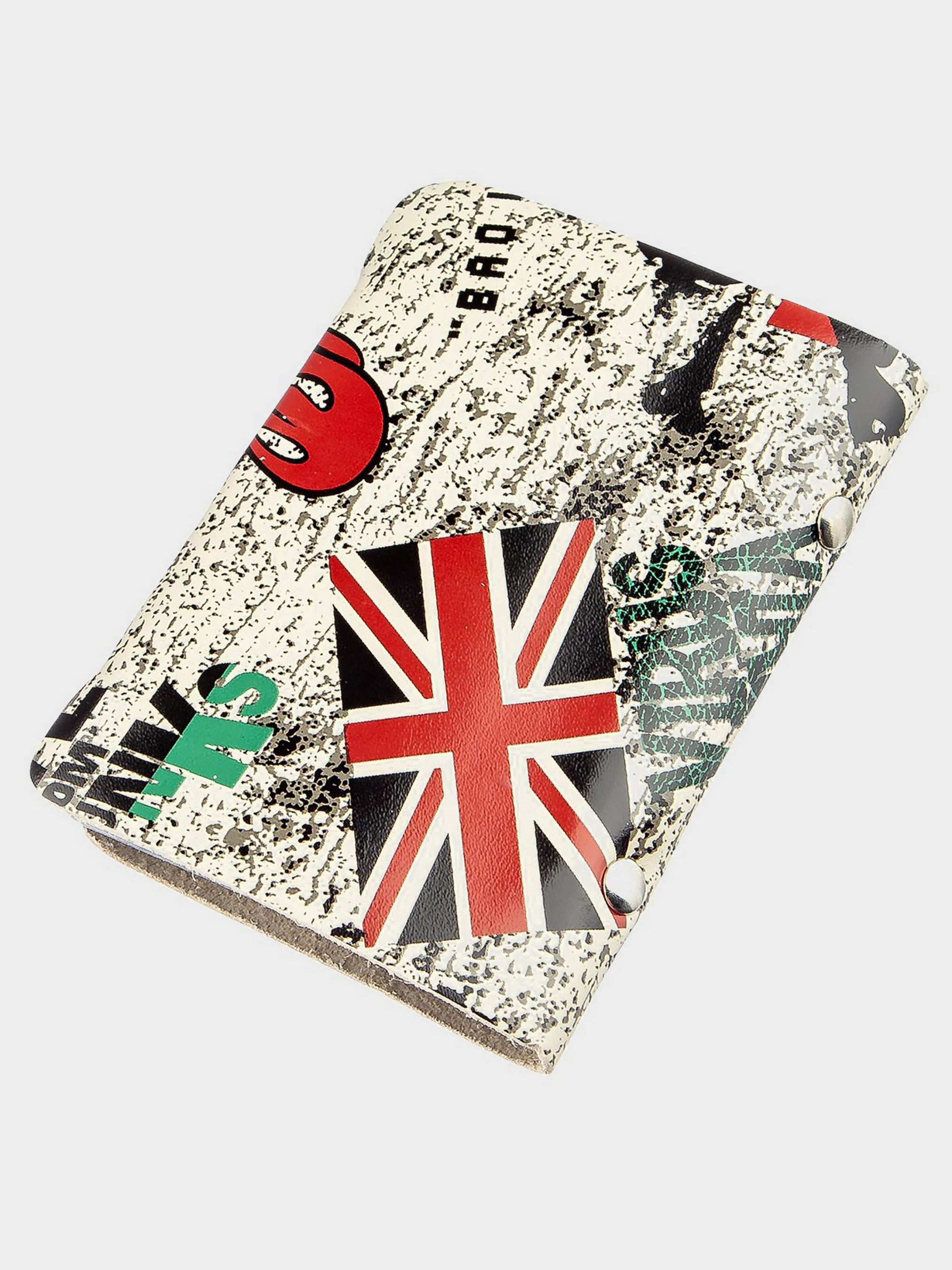 Матеріал: натуральна шкіра; Розміри (ШхВ, см): 7.5х10.5х0.5; Колір: сірий; Країна виробник: Україна. Особливості: - 20 листів для візиток і кредитних карт; - закривається хлястиком на кнопку. Візитниця з оригінальним принтом Rolling Stones з натуральної шкіри. Аксесуар просто необхідний для тих, хто носить із собою багато карток і хоче їх тримати в повному порядку. Візитницязакривається на хлястик з кнопкою і стане потрібним аксесуаром для будь-якої людини.