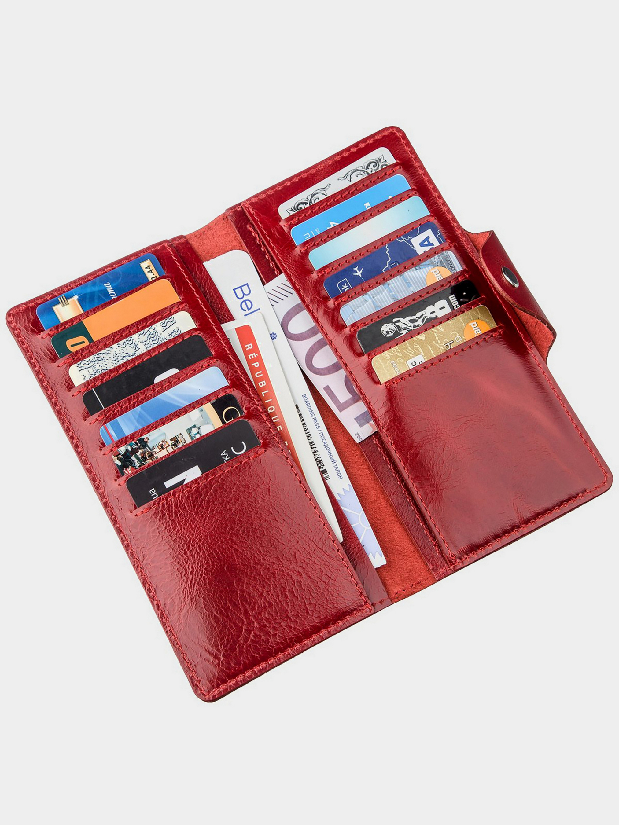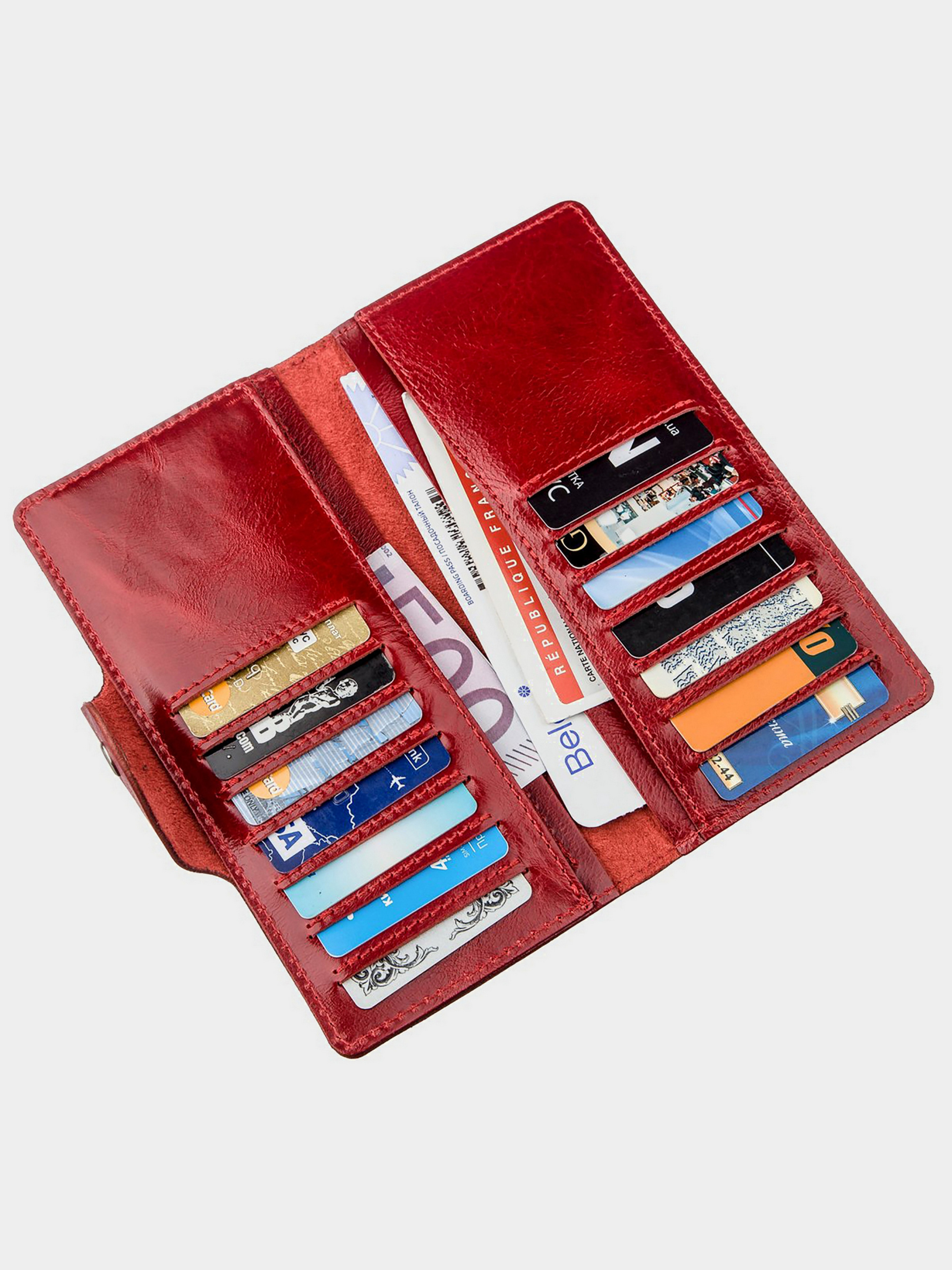 Колір червоний; Матеріал: натуральна шкіра високої якості; Розміри (ШхВ, см): 18х8,5х1; Країна виробник: Україна. Всередині: - 4 відділення для купюр; - 14 відділень для пластикових карток. - кишеня на блискавці на тильній стороні. Яскравий і тонкий вертикальний гаманець створений спеціально для дівчат, які люблять простоту і мінімалізм. Аксесуар з легкістю поміститься в вашу сумочку і збереже ваші купюри в цілісності. Закривається модель на хлястик з двома кнопками. При бажанні ви можете регулювати наповненість гаманця закривши його на ближню або дальню кнопку. Такий гаманець виділить вас з натовпу і підкреслить почуття стилю. Дизайн розроблений для яскравих дівчат.