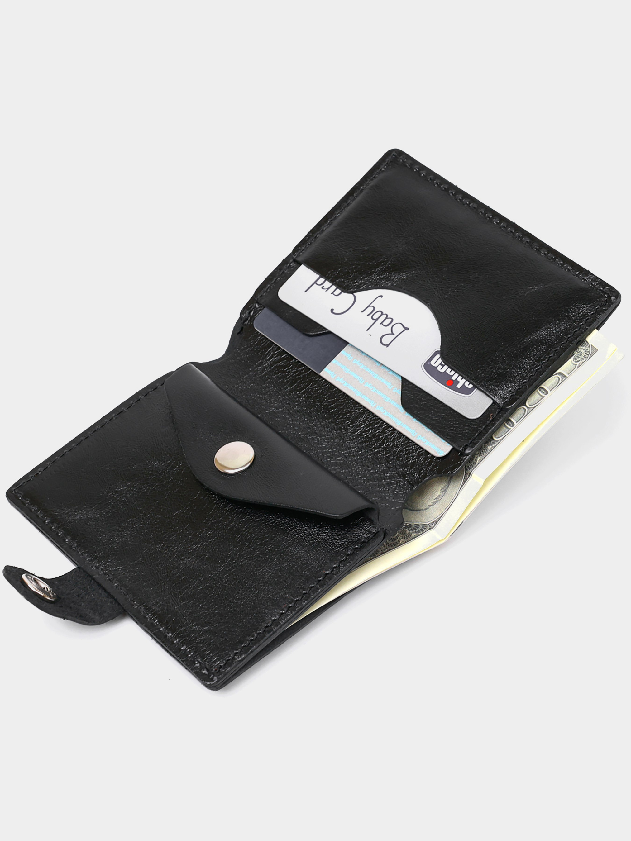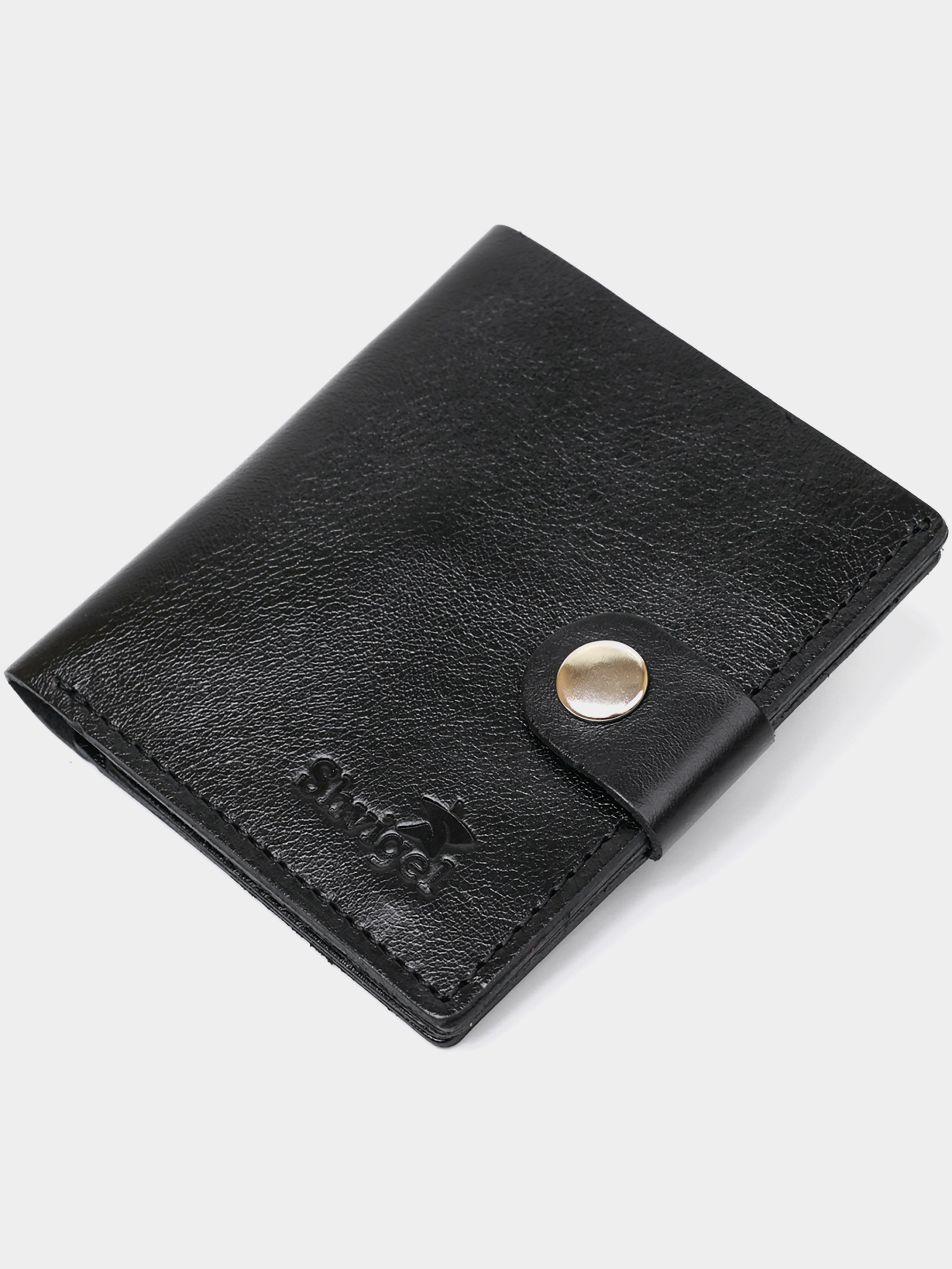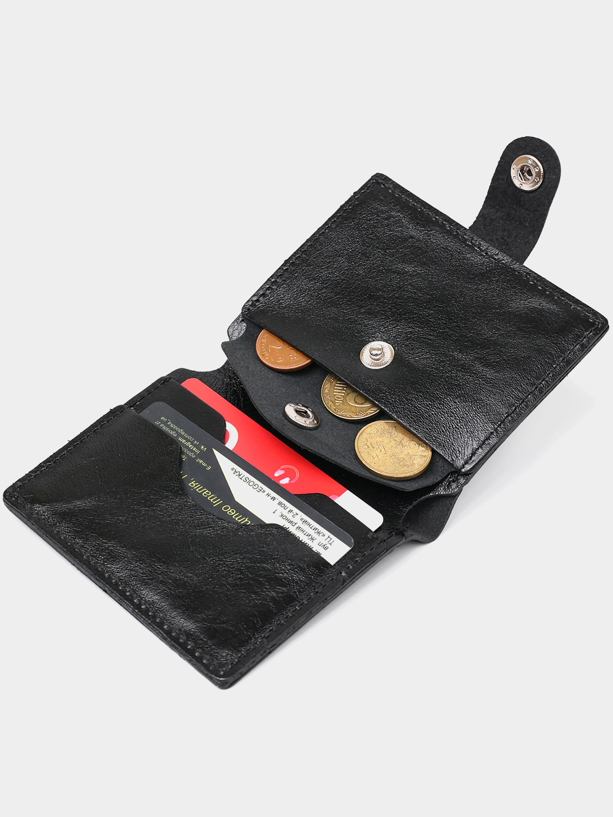 Матеріал: натуральна шкіра. Колір чорний. Розміри (ШхВхГ, см): 9х10х1 см. Країна виробник: Україна. Бренд: Shvigel. Опис: - закривається на хлястик із кнопкою; - 1 відділення на всю довжину; - 2 слоти для карток; - потайна кишеня; - монетниця на кнопці. Класичне чоловіче портмоне в універсальному чорному кольорі, яке легко поміститься у сумці будь-якого розміру або в кишені. Виконано виріб з натуральної шкіри високого класу та покращеної міцності. Усередині є відділення для купюр, слоти для кредитних та візитних карток та невелика монетниця на кнопці. Фактура – гладка з легким відливом.