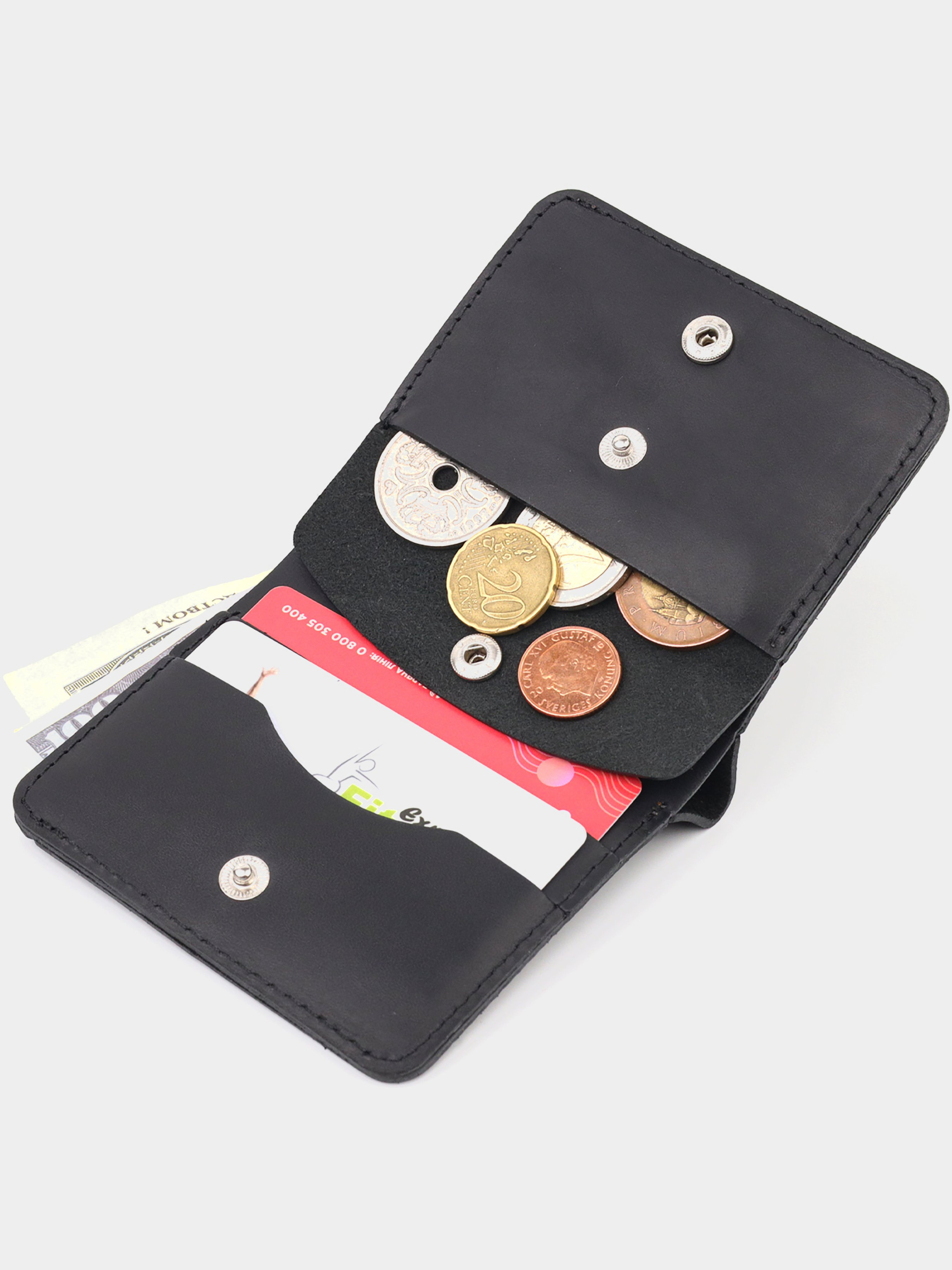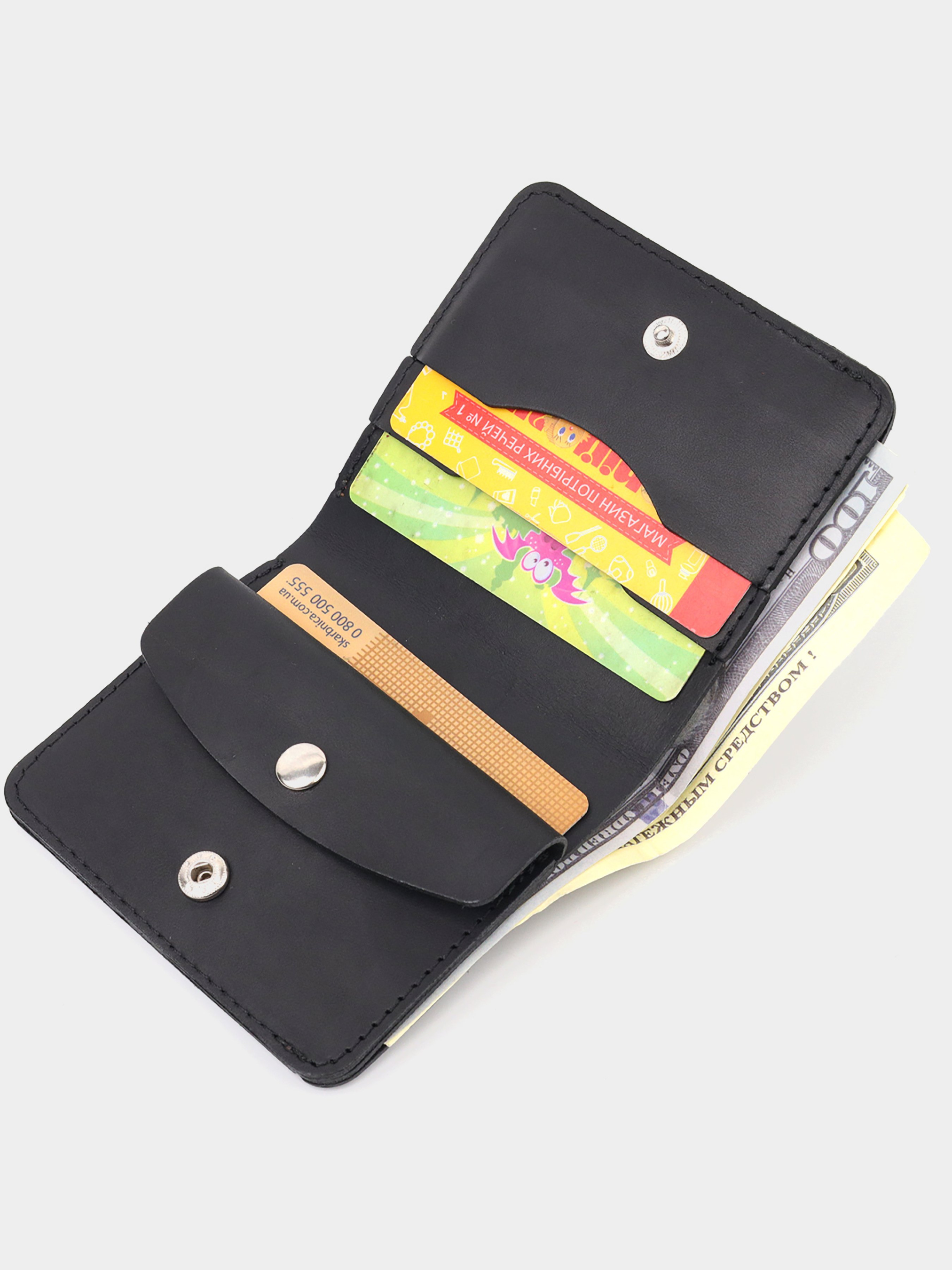 Матеріал: натуральна шкіра; Колір: чорний; Розміри (ШхВхГ, см): 9,3х9,5х1,3см; Країна виробник: Україна; Бренд: Shvigel. Опис: - закривається кнопкою усередині виробу; - 1 відділення на всю довжину; - 3 слоти для карток; - монетниця на кнопці. Класичний матовий портмоне в сучасному дизайні та трендовому чорному кольорі. Виконано виріб з натуральної шкіри високої якості та відмінної стійкості до зношування. Портмоне має містке відділення для купюр, слоти для пластикових карток та монетницю. Закривається аксесуар на кнопку. Якщо ви шукаєте подарунок для близької людини, то ця модель відмінно для цього підійде.