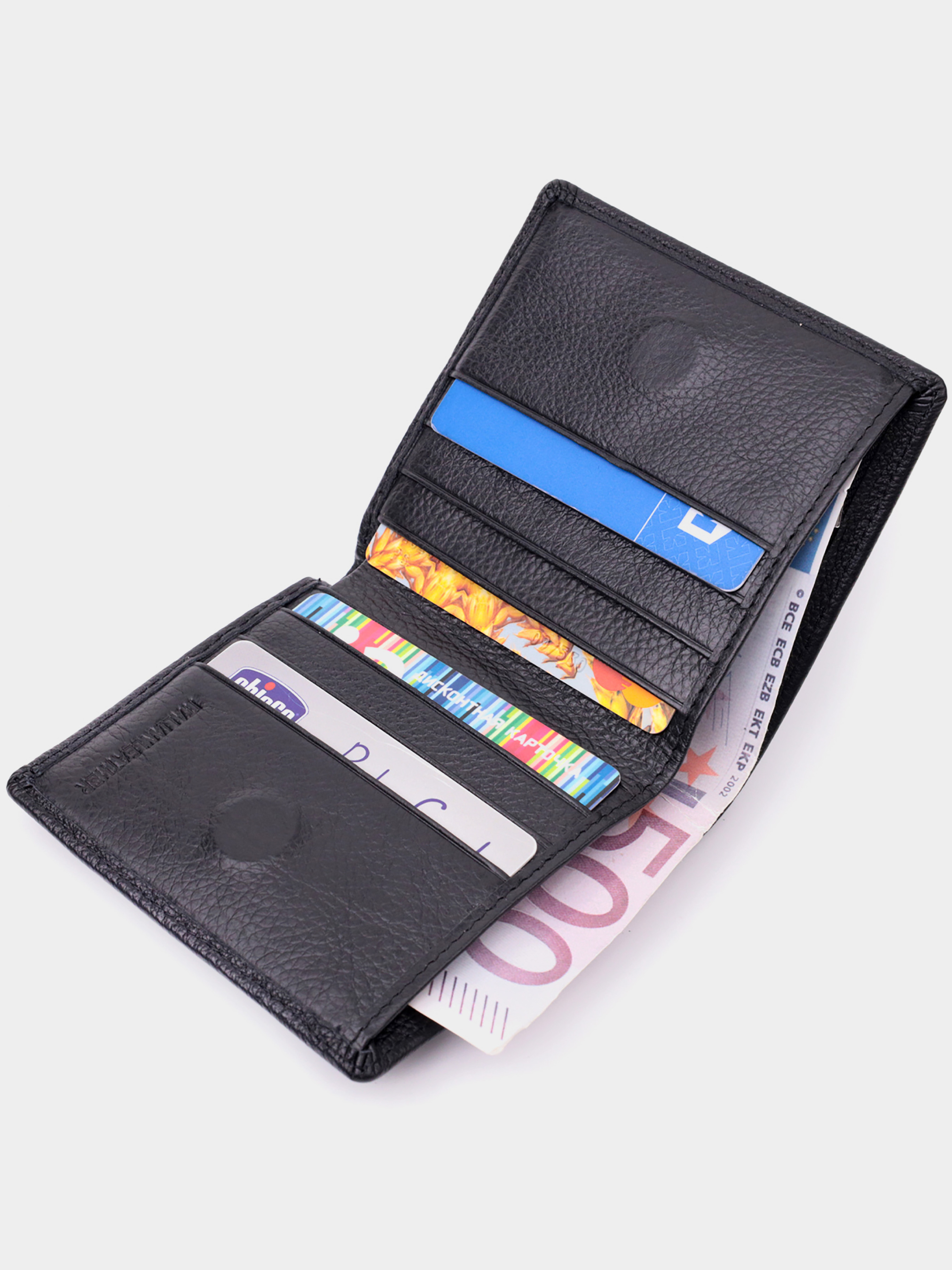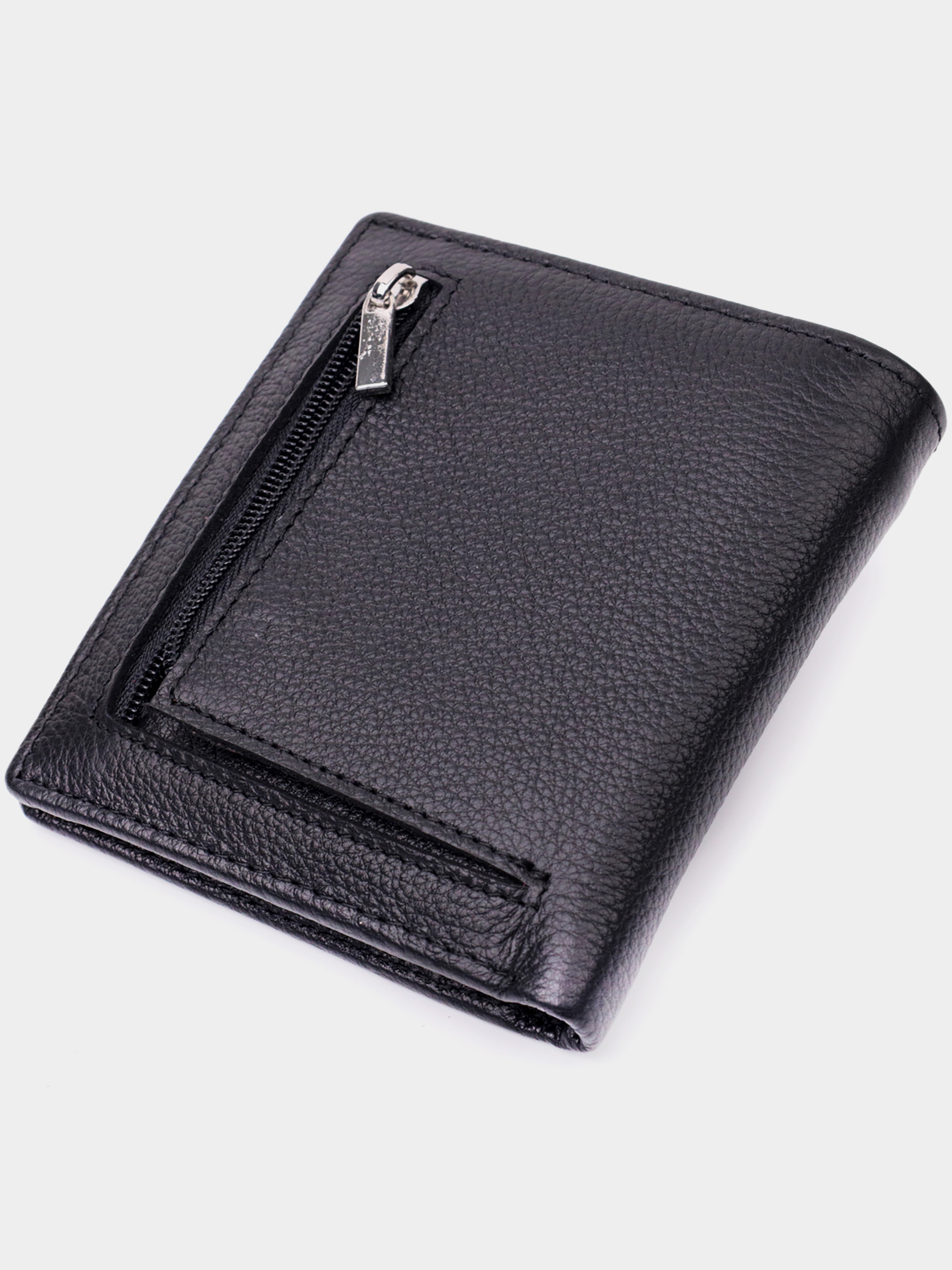 Матеріал: натуральна шкіра; Колір: чорний; Розміри (ШхВхГ)см: 9,5х10,5х1,5см; Країна виробництва: Китай. Особливості: - 1 основне відділення для купюр; - 1 відділення на блискавці на всю довжину; - 6 слотів для кредиток; - 2 приховані кишені; - 1 зовнішня кишеня для монет на блискавці; - закривається на магніт. Компактний і акуратний гаманець із натуральної шкіри найвищої якості. Аксесуар складається з одного місткого відділення для купюр, кишені на блискавці через всю довжину, шести осередків для карт, двох прихованих кишень та зовнішньої кишені на блискавці, що чудово прослужить для монет. Портмоне доповнено надійною фурнітурою та міцною підкладкою. Укомплектований гаманець у фірмову картонну коробку білого кольору. Виріб стане ідеальним подарунком для дівчини будь-якого віку.