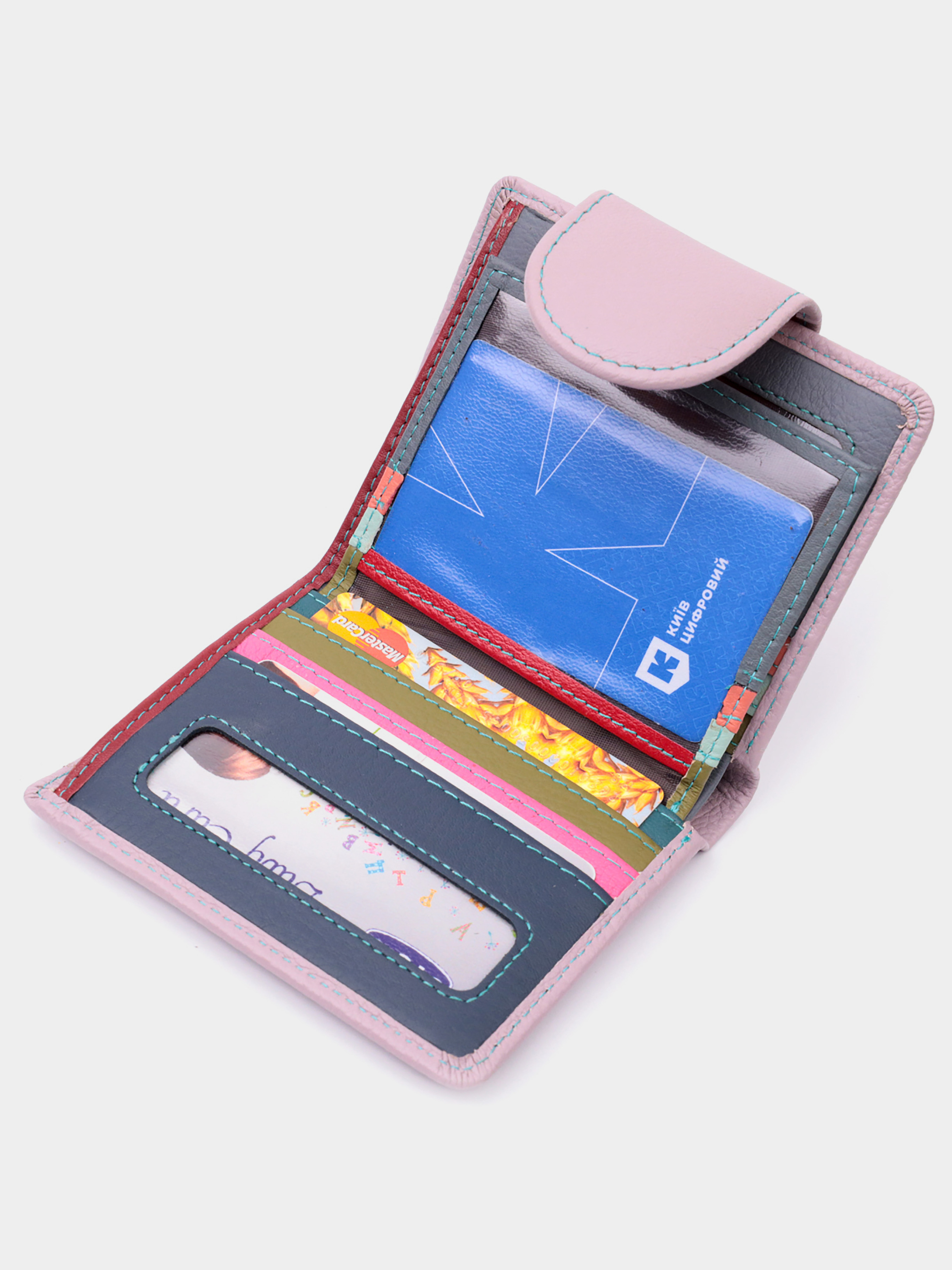 Матеріал: натуральна шкіра; Колір: бежевий; Розміри (ШхВхГ)см: 10х11,3х1,5см; Країна виробництва: Китай. Особливості: - 1 основне відділення зі шкіряною перегородкою для купюр; - 1 кишеня на блискавці через усю довжину; - 1 монетниця ззовні, що закривається клапаном на кнопку; - 3 приховані кишені; - 9 осередків для кредиток, три з них із прозорими віконцями; - 1 кишенька під плівкою; - закривається хлястиком на магніт. Цікаве вертикальне портмоне в два додавання зручного розміру з натуральної шкіри найвищої якості. Гаманець бежево-рожевого кольору зовні та різнобарвний усередині, що дуже стильно та сучасно. Шкіряне портмоне дуже практичне і служить досить довго. Аксесуар складається з основного відділення зі шкіряною перегородкою для купюр, кишені на блискавці через всю довжину, монетниці, дев'яти осередків для карт, прозорого віконця для пропуску та трьох прихованих кишень. Портмоне доповнено надійною фурнітурою і прошито по краю рівним рядком бірюзового кольору. Укомплектований гаманець у фірмову картонну коробку білого кольору. Виріб стане ідеальним подарунком для дівчини будь-якого віку.
