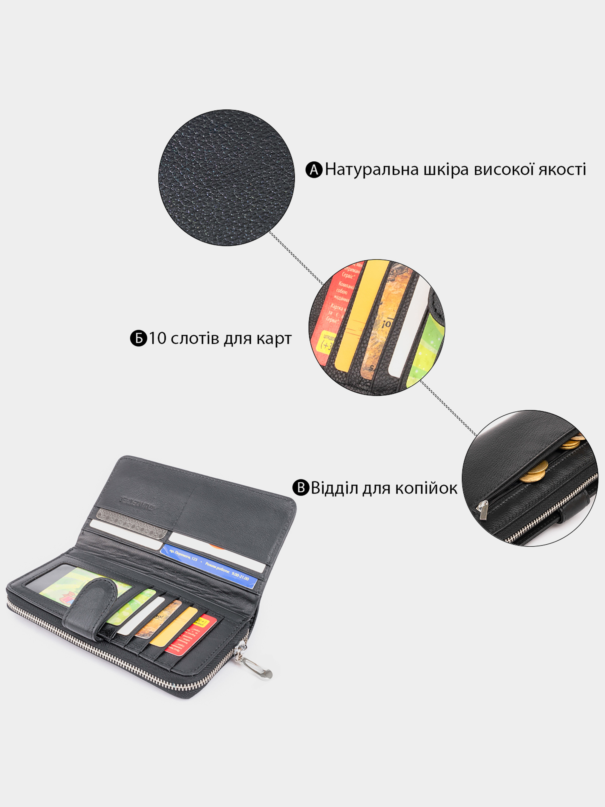 • Жіночі шкіряні гаманці
