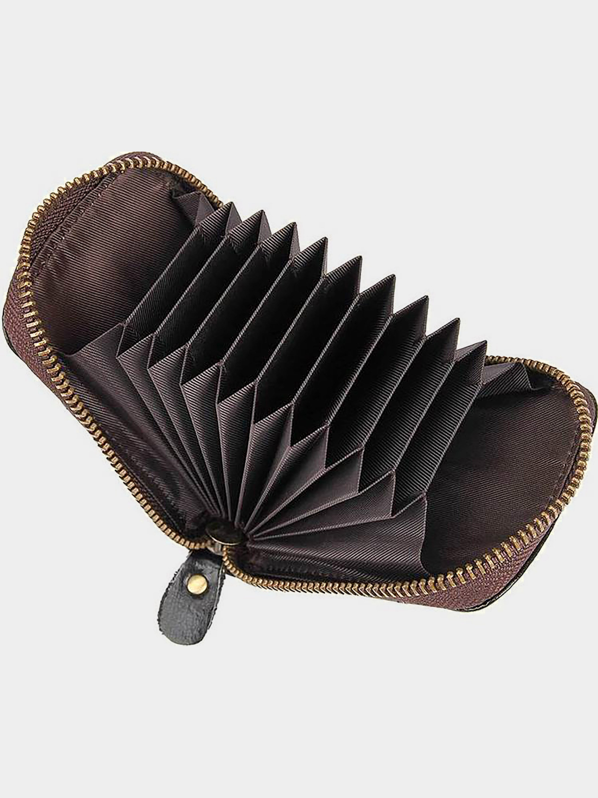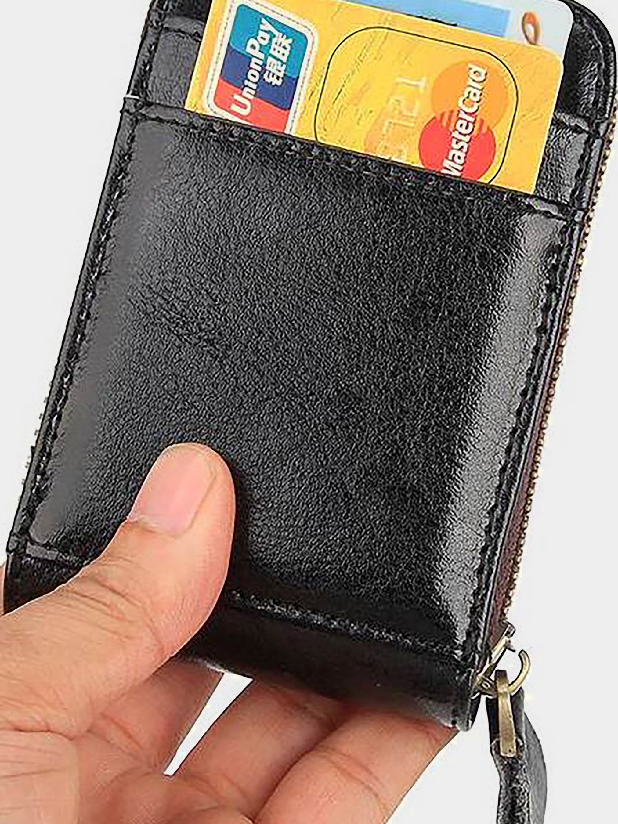 Колір: чорний. Розмір (ШхВ, см): 11х7cм Матеріал: натуральна шкіра. Особливості: - 15 горизонтальних відділень для кредиток або візиток (чотири з зовнішньої сторони); - надійно закривається на блискавку; - візитниця упакована в пилозахисний чохол. Компактна і вмістка візитниця з натуральної шкіри для Ваших документів. Відмінно підійде для подарунка.