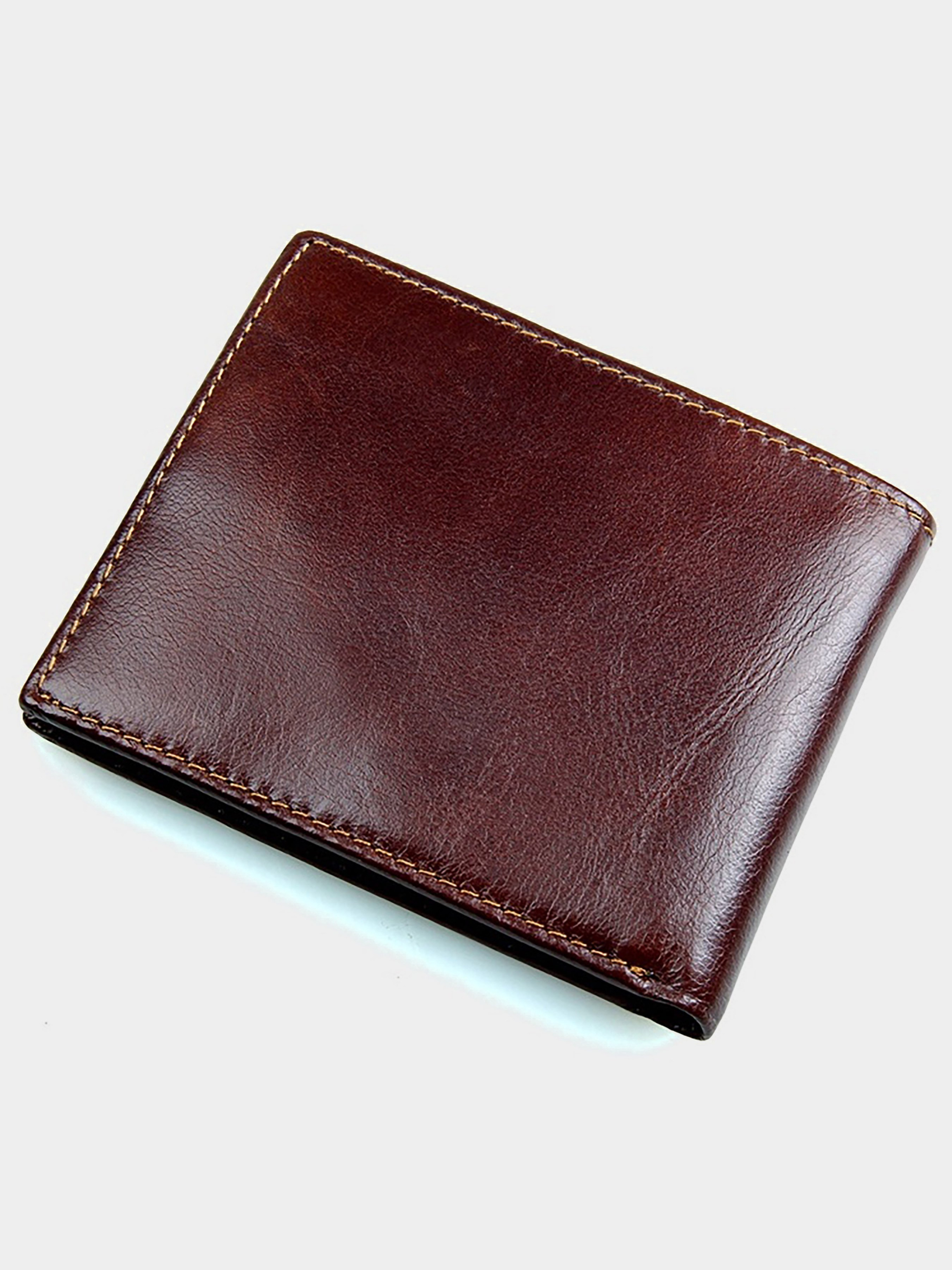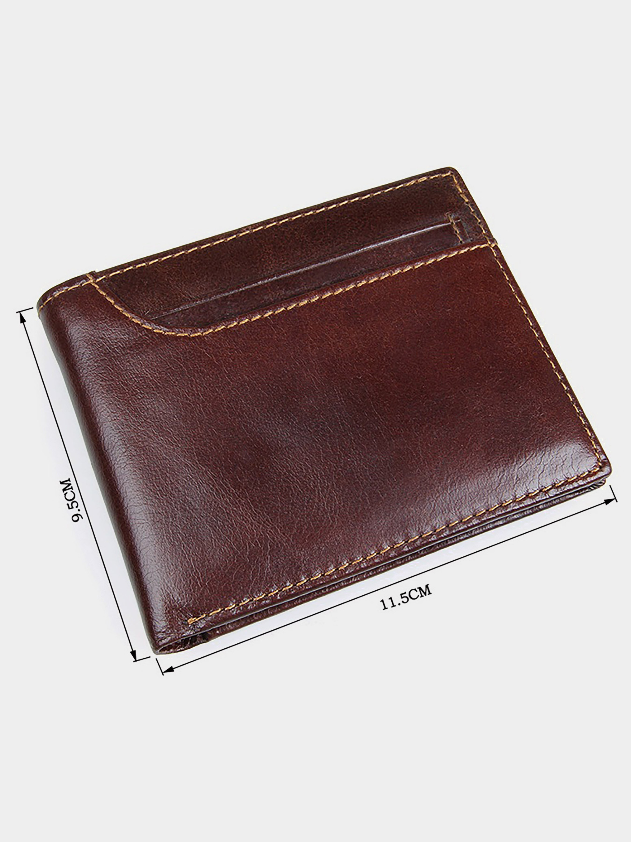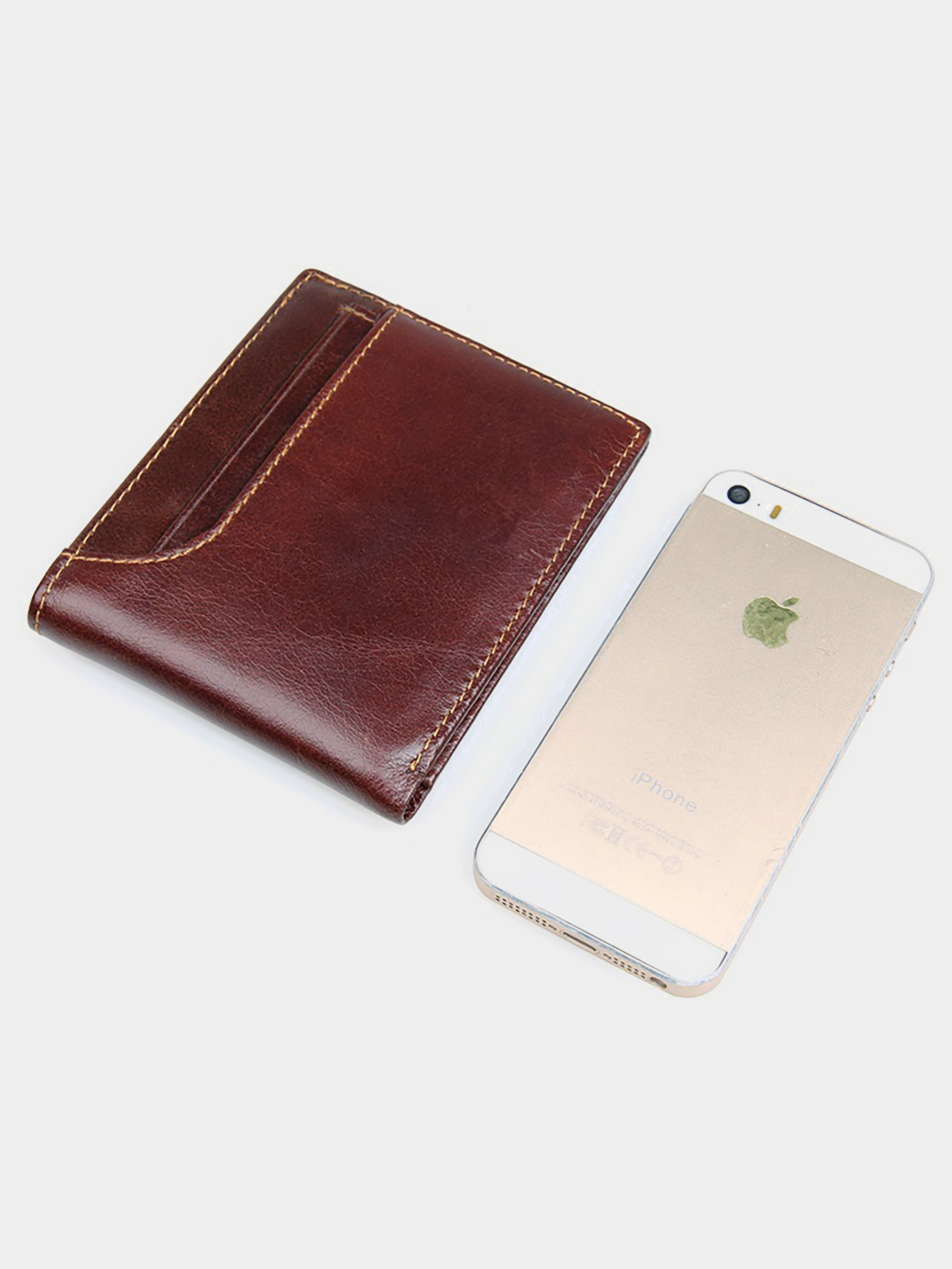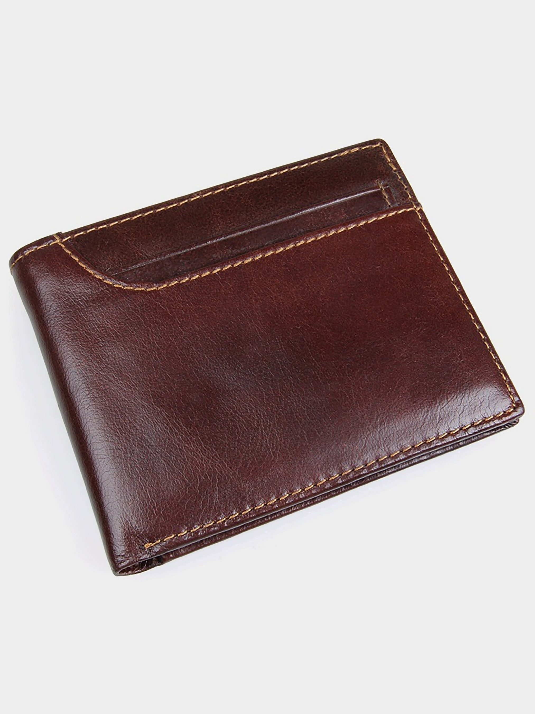 Колір: коричневий; Матеріал: натуральна високоякісна шкіра; Розмір: 11,5 на 9,5 см. Тонке чоловіче портмоне коричневого кольору. Аксесуар виготовлений з високоякісної натуральної шкіри. Прошито портмоне міцною ниткою світло-коричневого кольору. На зовнішній стороні виробу знаходиться накладна кишеня, в якій Ви знайдете 3 відділення для пластикових карток. Відділення для монет в цьому аксесуарі відсутні. Гаманець упакований в текстильний пилозахисний чохол. Всередині: - 2 відділення для купюр; - 10 відділень для пластикових карток.