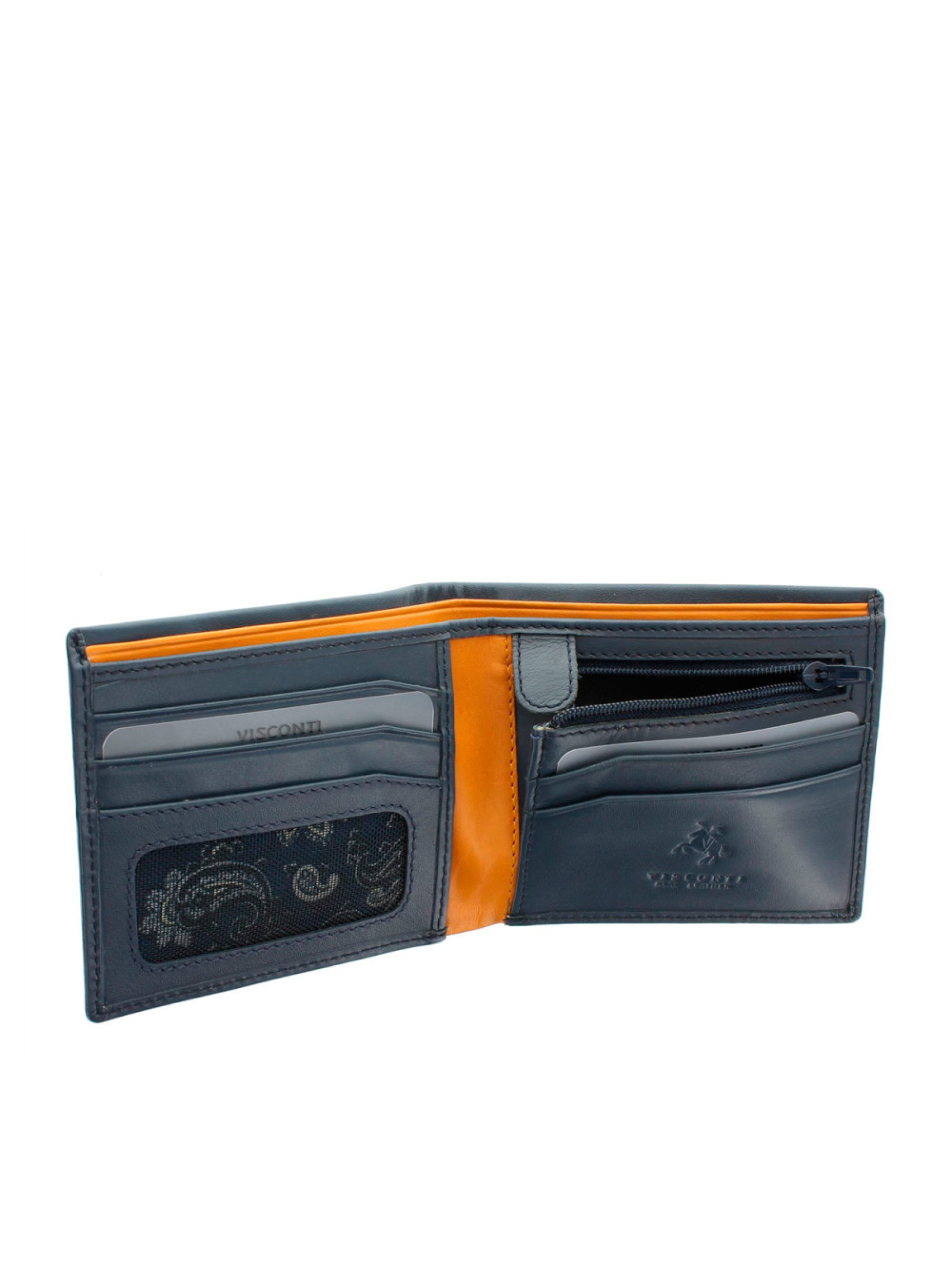 Чоловічий шкіряний гаманець Visconti PM101 Pablo Blue Mustard – це вишуканий аксесуар, створений для тих, хто цінує якість та стиль. Поєднання благородного синього та яскравого гірчичного кольору надає йому неповторного шарму і робить його помітним аксесуаром. Особливості гаманця Натуральна теляча шкіра найвищої якості забезпечує довговічність і м'якість на дотик. Ергономічний дизайн дозволяє зручно розмістити всі необхідні карти, купюри та дріб’язок. Два відділення для купюр різного розміру, чотири слоти для карт, монетниця на блискавці та приховані кишені роблять гаманець неймовірно функціональним. Монетниця на надійній блискавці легко відкривається і закривається однією рукою, а завдяки яскравій підкладці ви завжди знайдете потрібну монету. Приховані кишені ідеально підходять для зберігання візиток, посвідчень водія або невеликих купюр. Віконце для фото дозволить завжди носити з собою пам’ятні фотографії близьких людей. Захист від RFID-сканування забезпечує додаткову безпеку для банківських карток. Подарункова упаковка робить цей гаманець ідеальним варіантом для подарунка дорогій людині.
